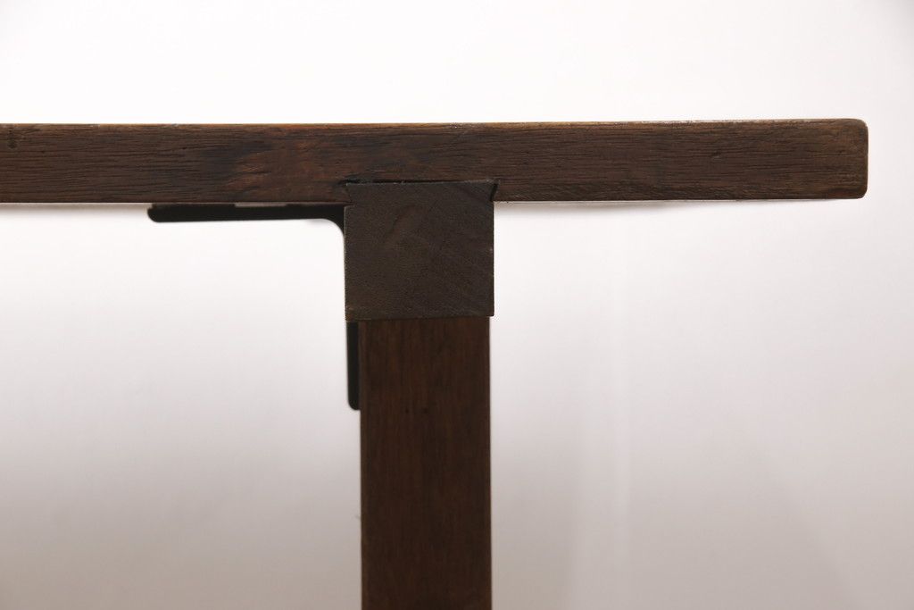 テーブル> 作業台 > 和製アンティークの棚付き作業台をリペア&カスタム!天板下の棚を取り外し。色の濃い部分に合わせて全体を着色し仕上げ。(ダイニングテーブル)