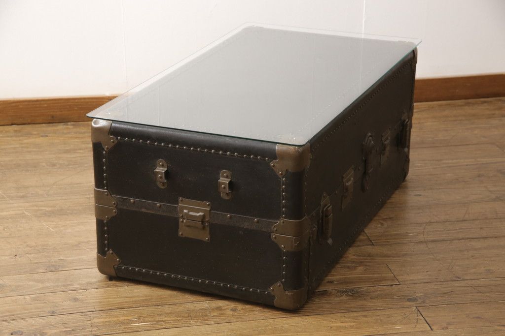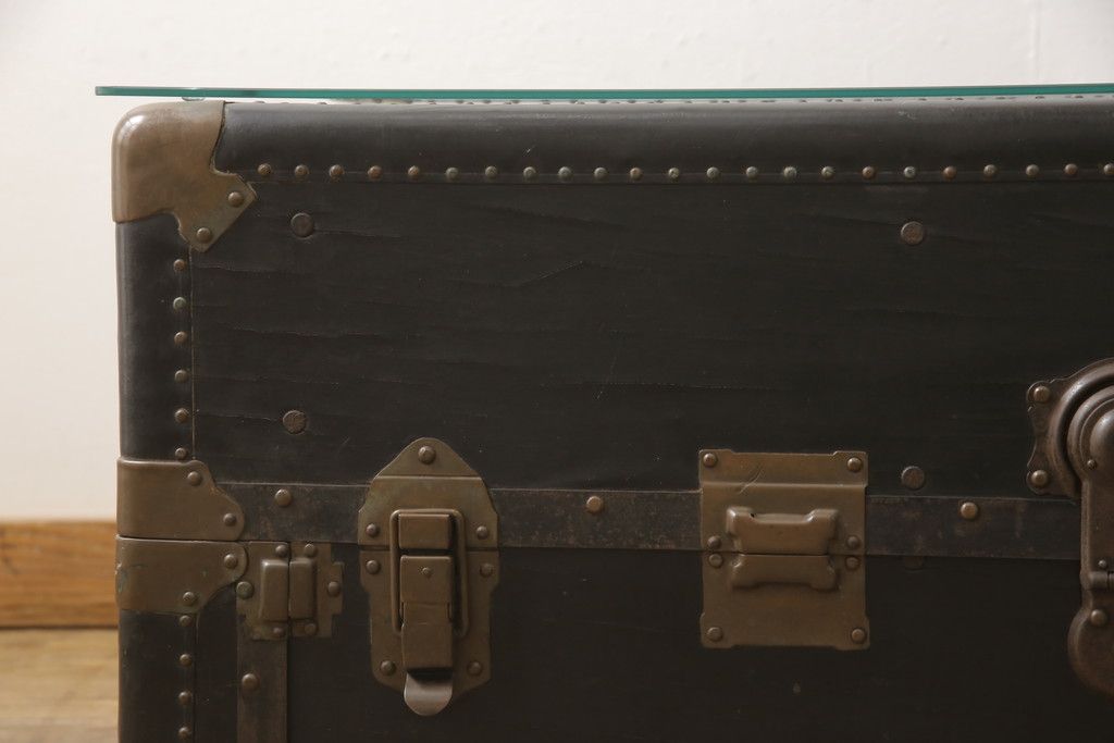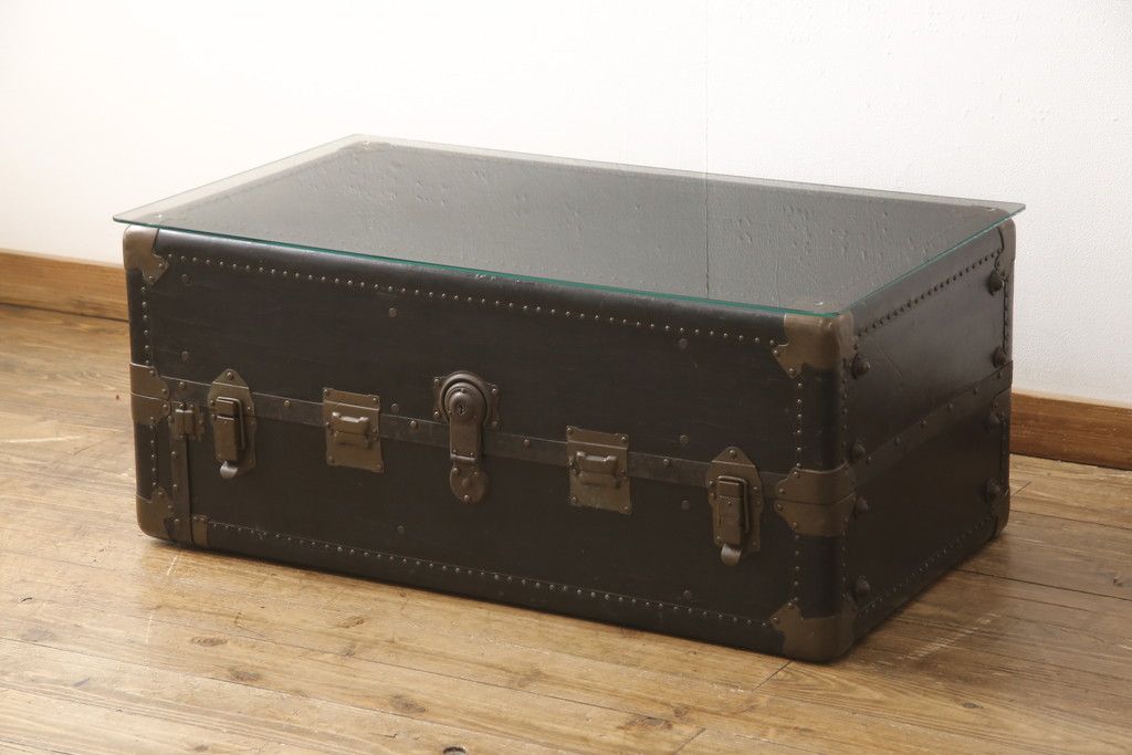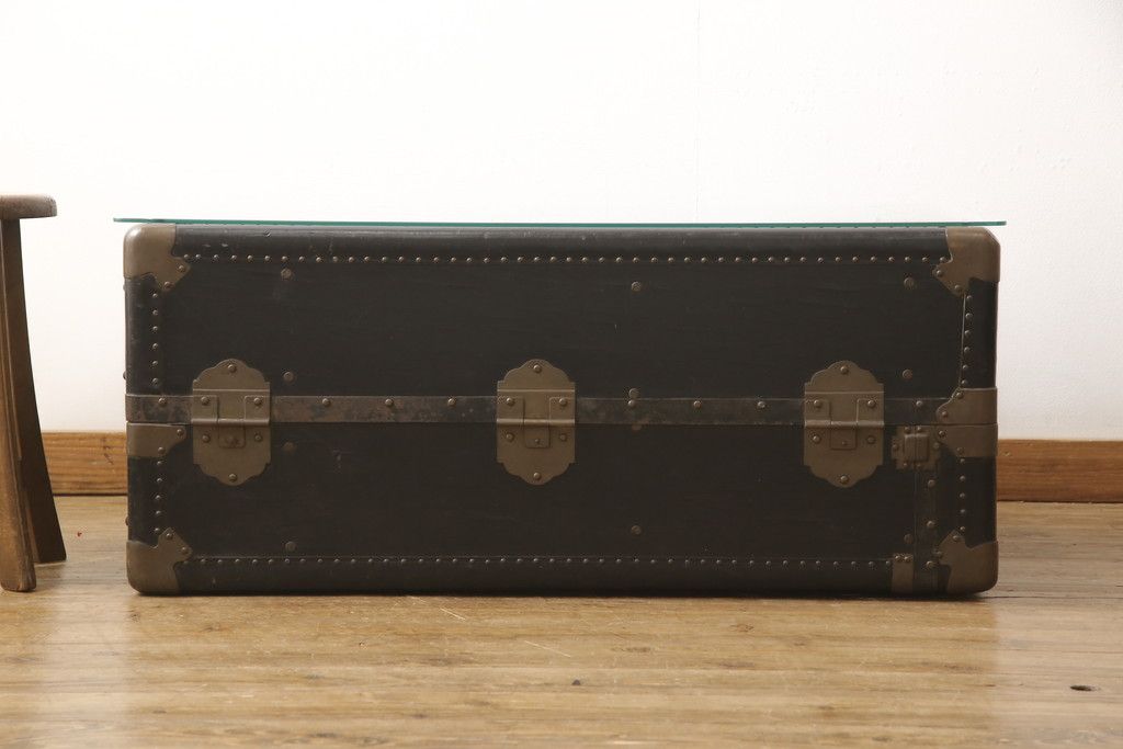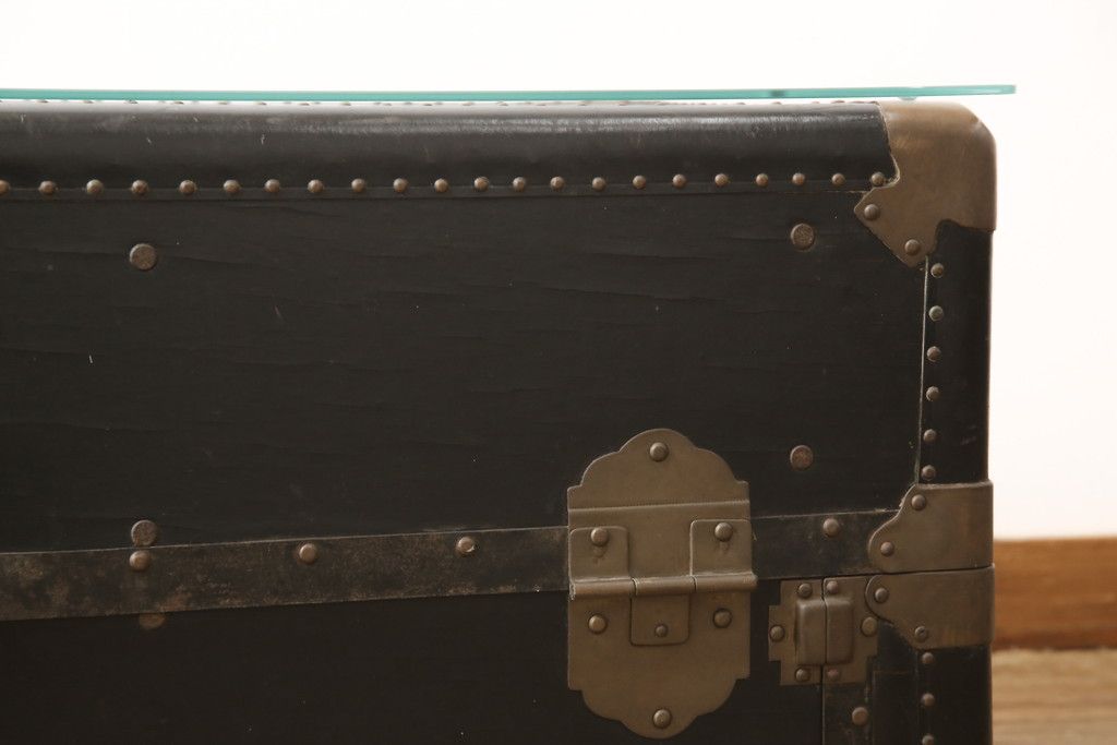 テーブル> センターテーブル・ローテーブル > 和製アンティークのトランクをリペア&カスタム!縁を面取りしたガラス天板を取り付けローテーブルに。(ローテーブル、センターテーブル、収納)