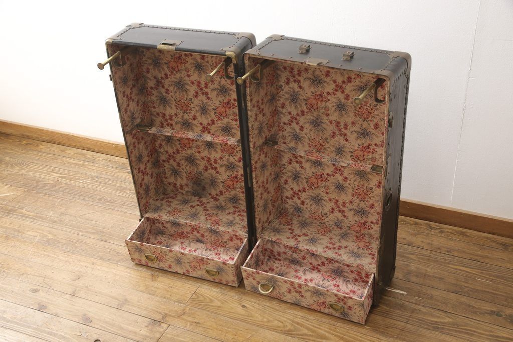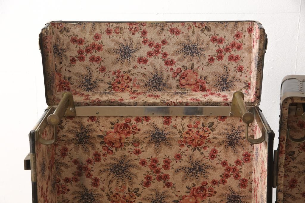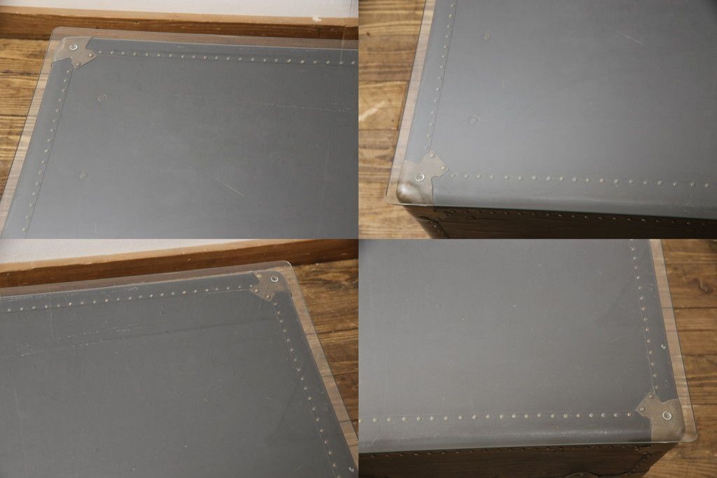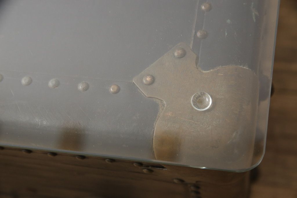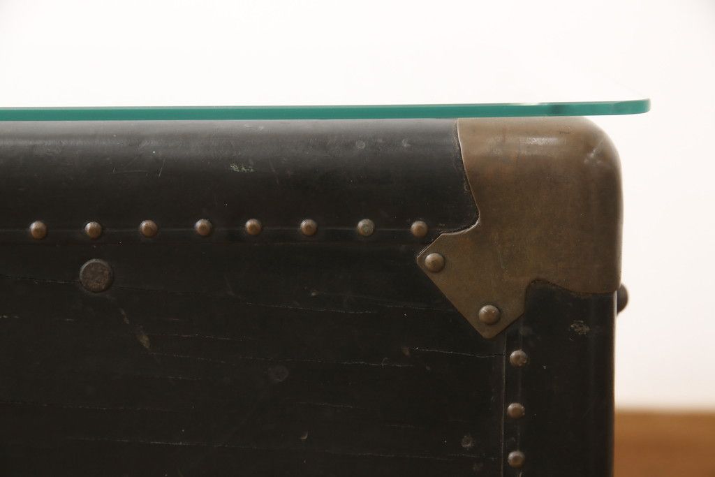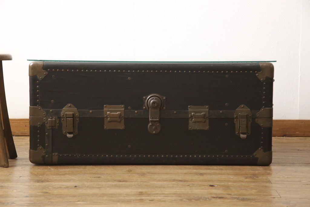 テーブル> センターテーブル・ローテーブル > 和製アンティークのトランクをリペア&カスタム!縁を面取りしたガラス天板を取り付けローテーブルに。(ローテーブル、センターテーブル、収納)