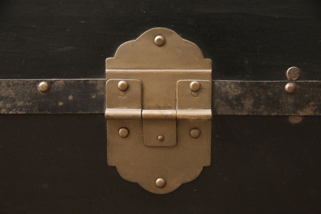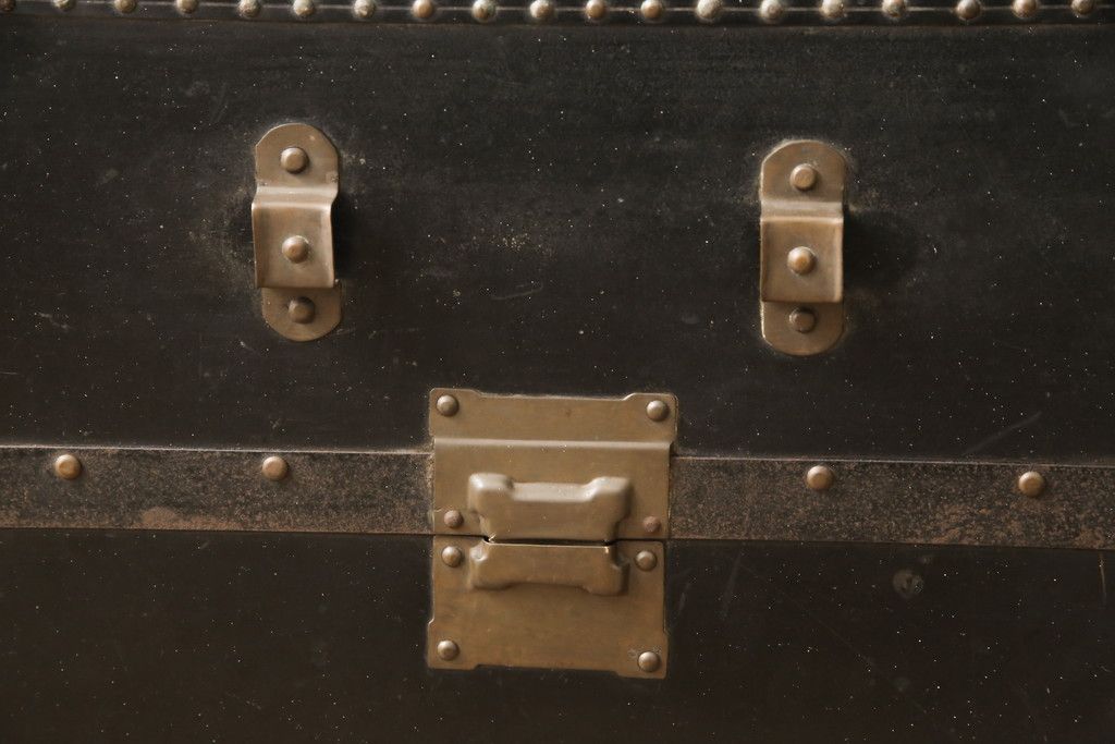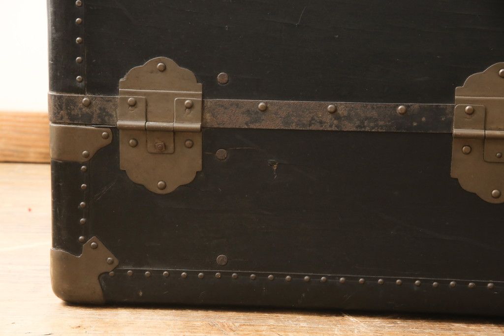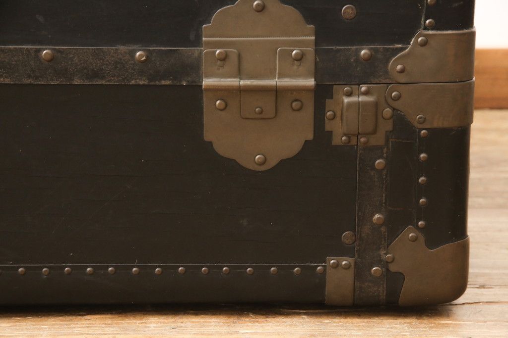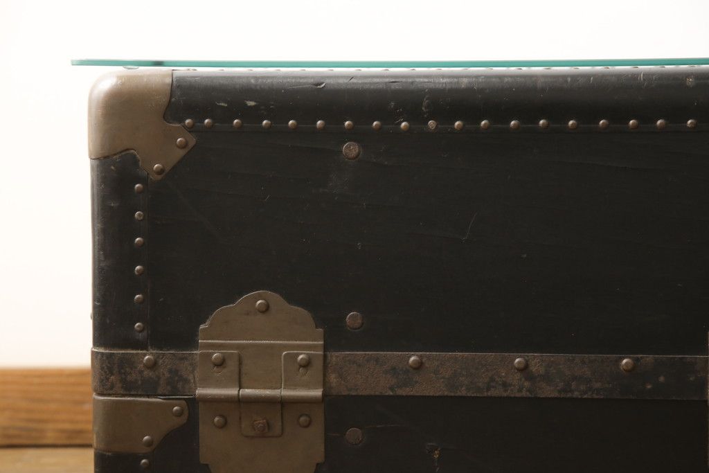 小物収納・トランク> トランク > 和製アンティークのトランクをリペア&カスタム!縁を面取りしたガラス天板を取り付けローテーブルに。(ローテーブル、センターテーブル、収納)