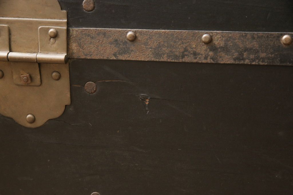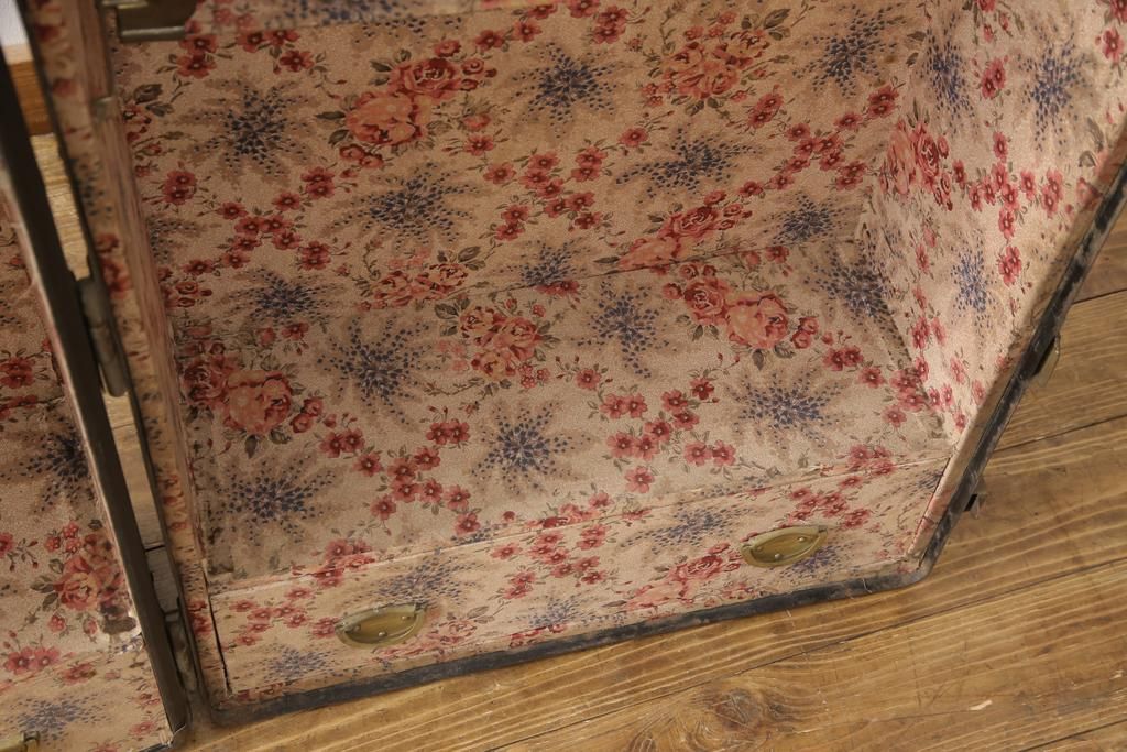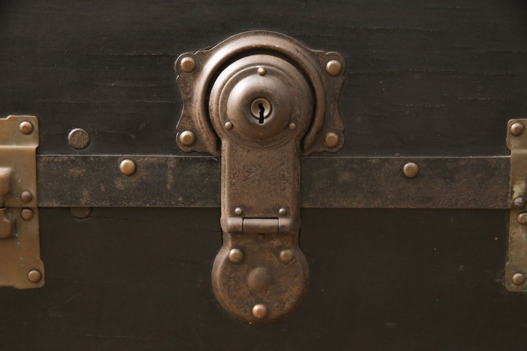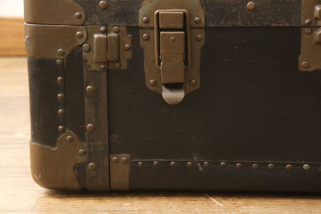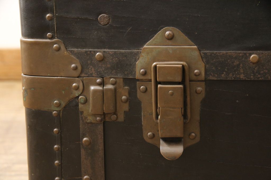 小物収納・トランク> トランク > 和製アンティークのトランクをリペア&カスタム!縁を面取りしたガラス天板を取り付けローテーブルに。(ローテーブル、センターテーブル、収納)