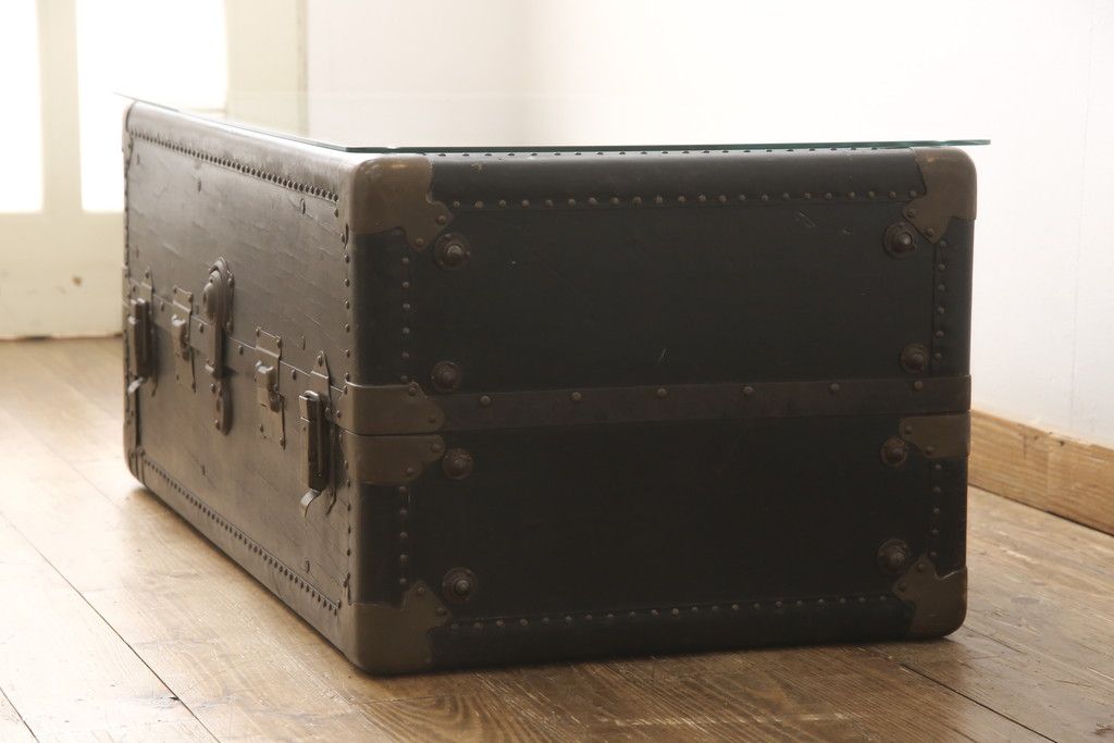 雑貨 > 和製アンティークのトランクをリペア&カスタム!縁を面取りしたガラス天板を取り付けローテーブルに。(ローテーブル、センターテーブル、収納)