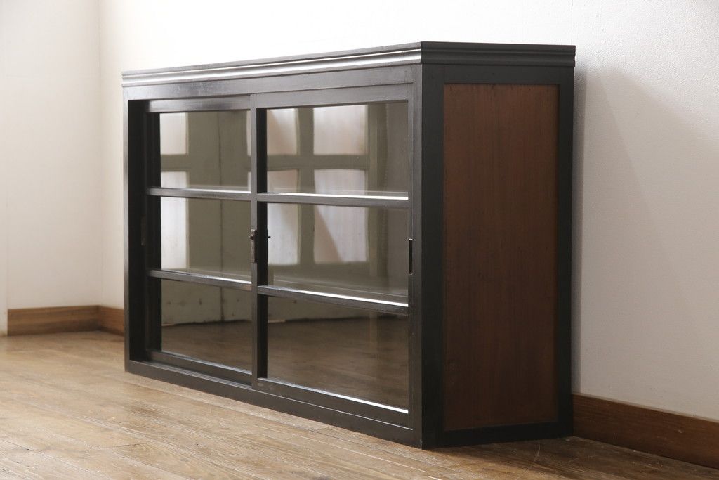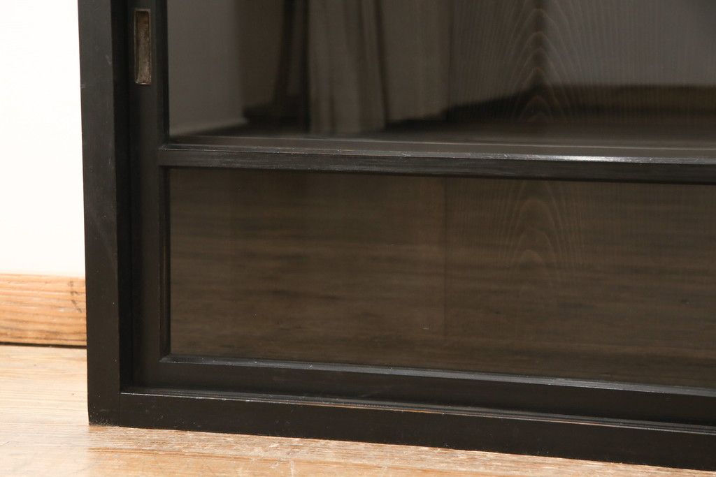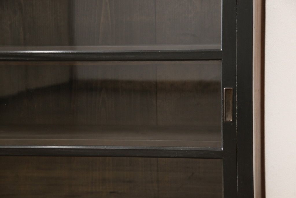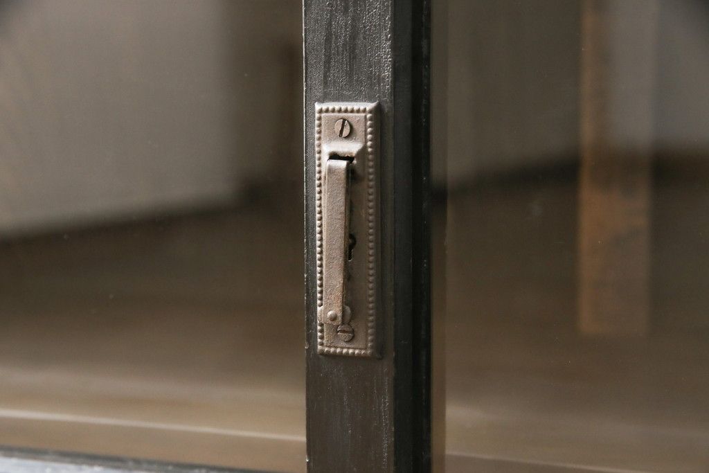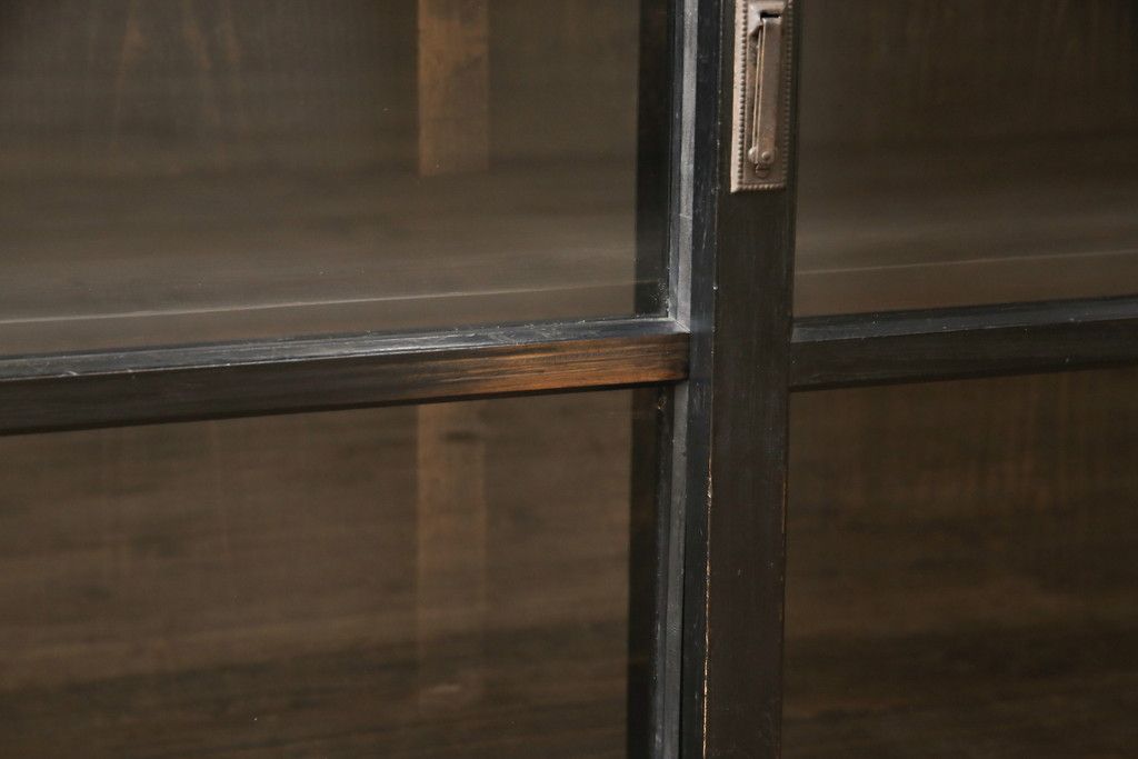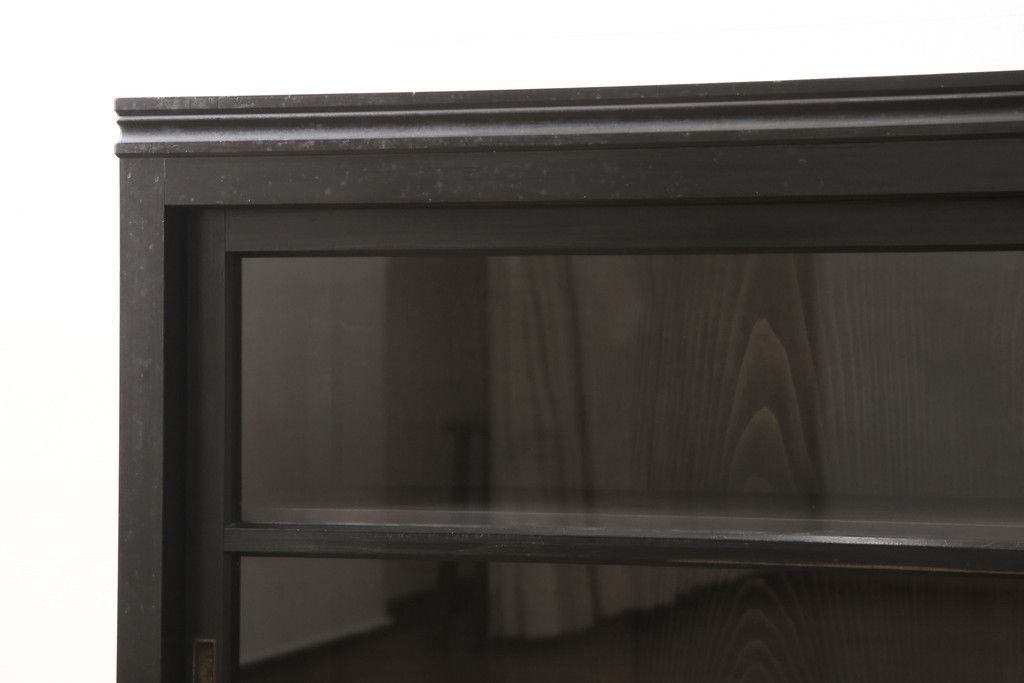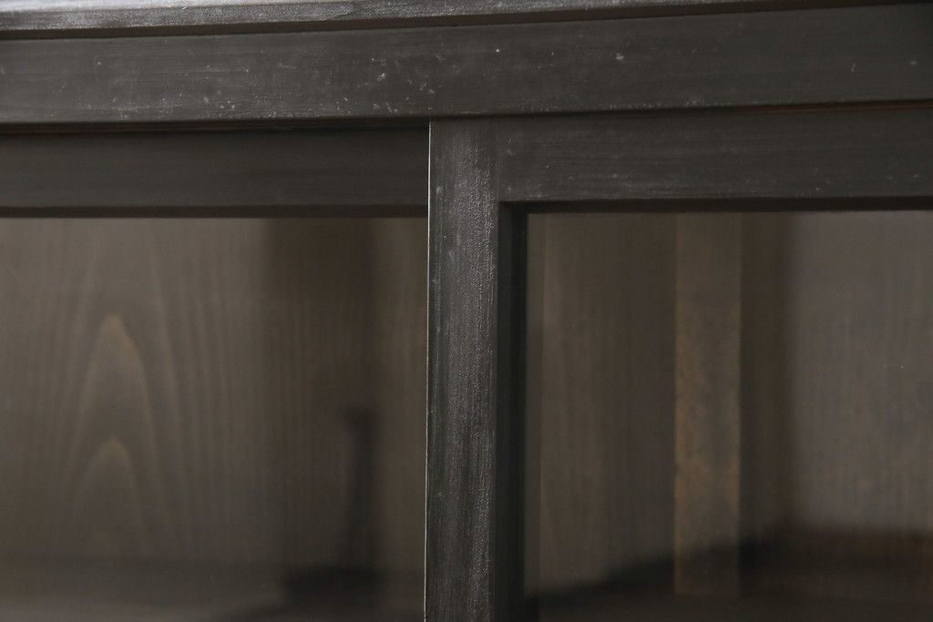 キャビネット・戸棚> サイドキャビネット > 大正期のガラス戸棚をリペア&カスタム!天板を設置し、棚板は新しいものに交換。欠損したガラスは交換。全体を1トーン落ち着いた色味に着色仕上げ。(収納棚、戸棚、キャビネット)