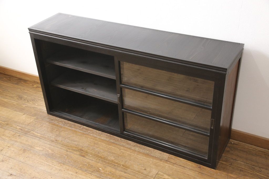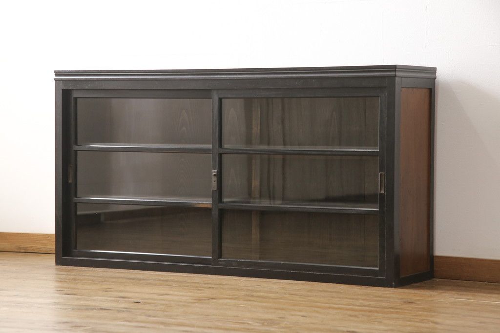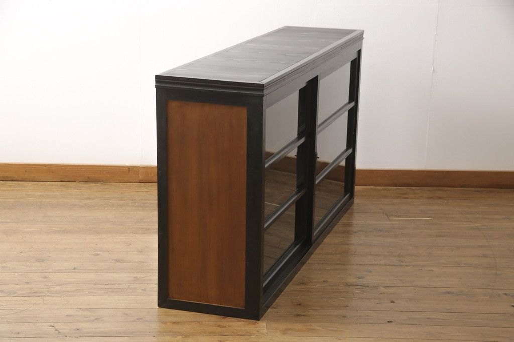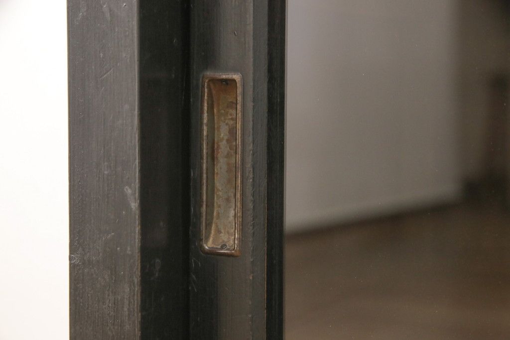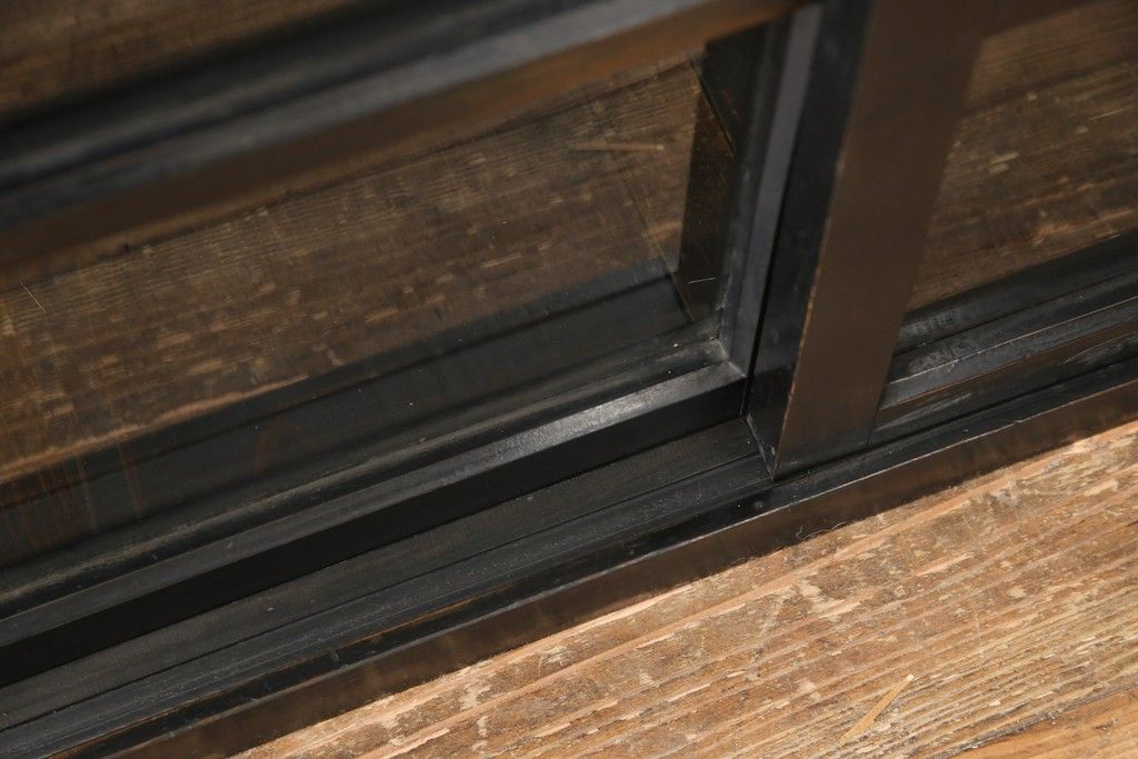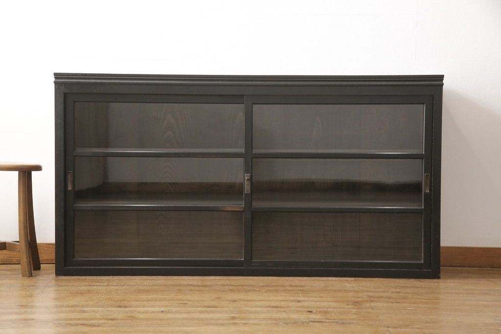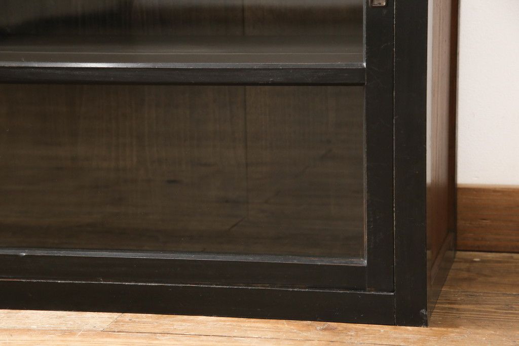 キャビネット・戸棚> サイドキャビネット > 大正期のガラス戸棚をリペア&カスタム!天板を設置し、棚板は新しいものに交換。欠損したガラスは交換。全体を1トーン落ち着いた色味に着色仕上げ。(収納棚、戸棚、キャビネット)