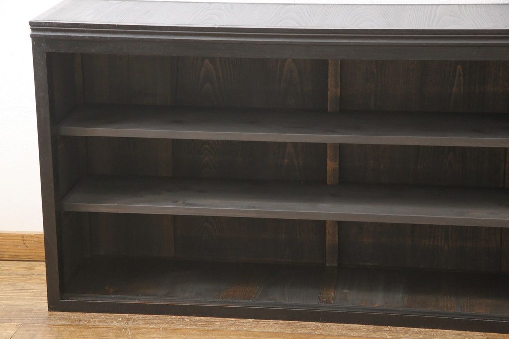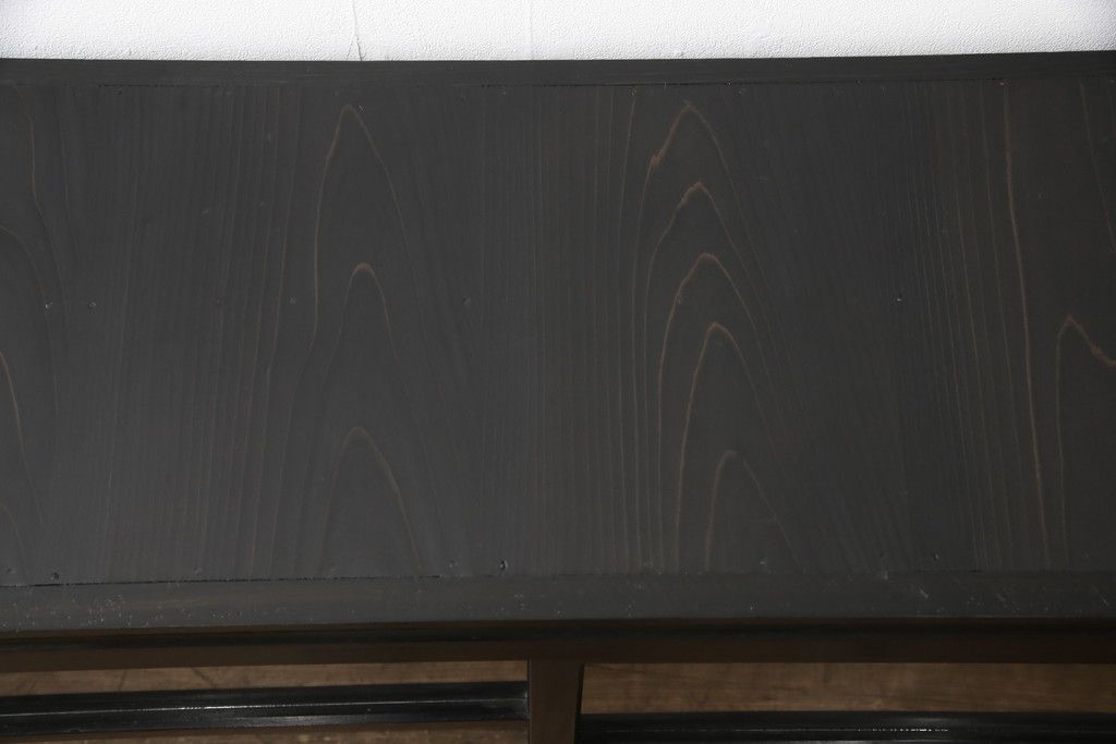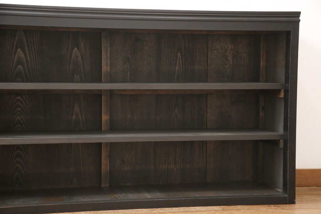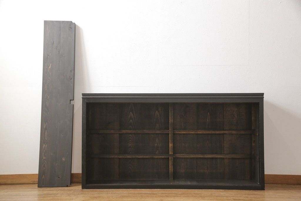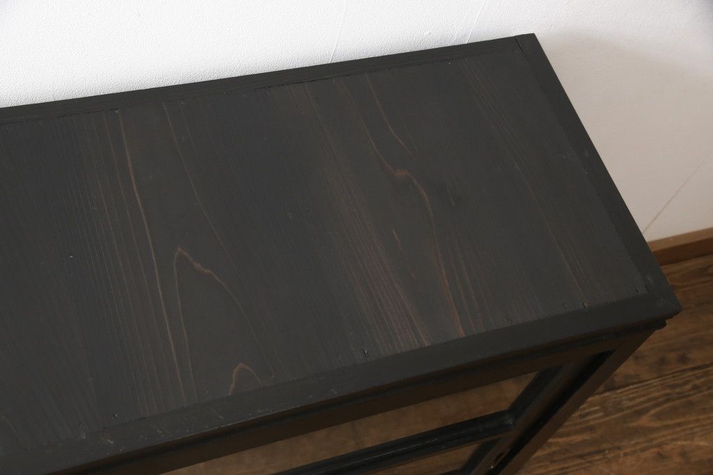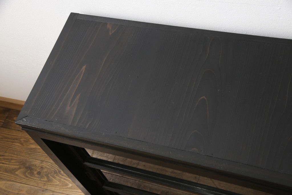 大正期のガラス戸棚をリペア&カスタム!天板を設置し、棚板は新しいものに交換。欠損したガラスは交換。全体を1トーン落ち着いた色味に着色仕上げ。(収納棚、戸棚、キャビネット)