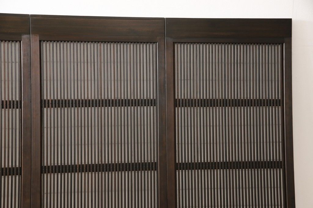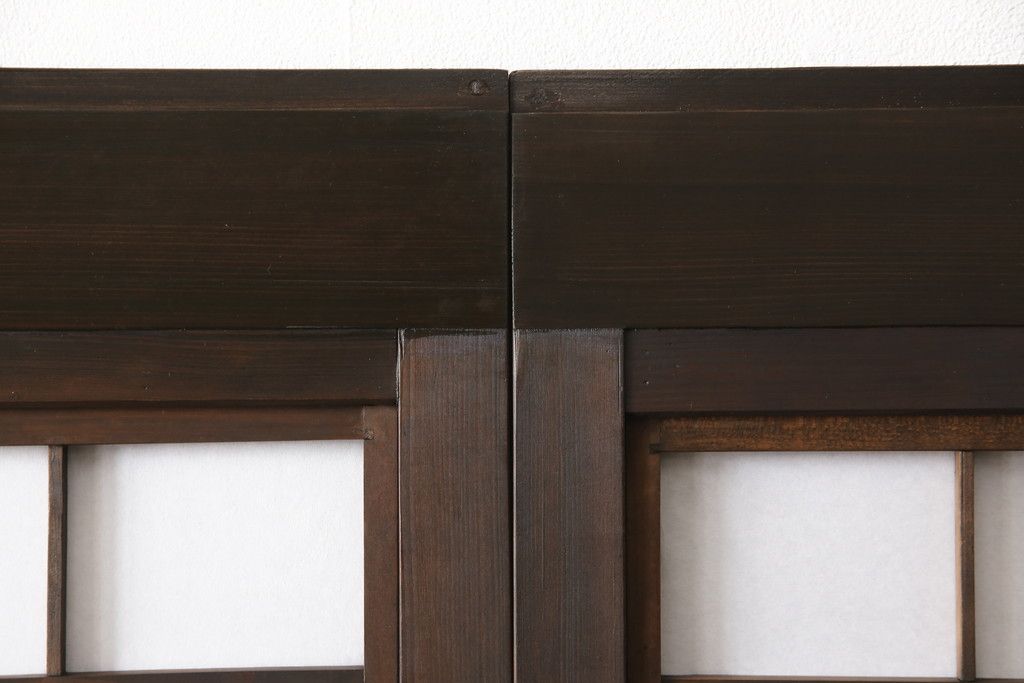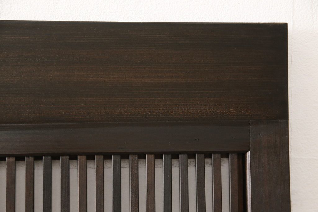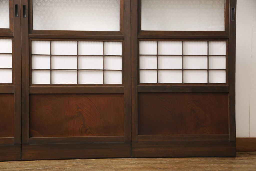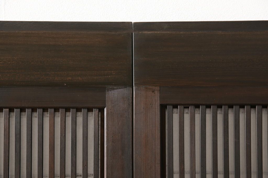 ドア・建具> 4枚〜セット > 格子戸4枚セットをリペア&カスタム!リサイズし、新たに引手を取り付け。ガラスは麻の葉模様のガラスに交換。自然な茶色に着色仕上げ。(障子戸、引き戸、建具)
