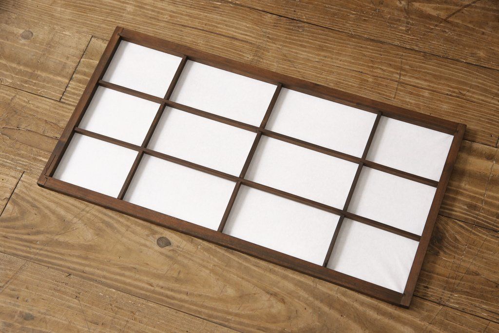格子戸4枚セットをリペア&カスタム!リサイズし、新たに引手を取り付け。ガラスは麻の葉模様のガラスに交換。自然な茶色に着色仕上げ。(障子戸、引き戸、建具)