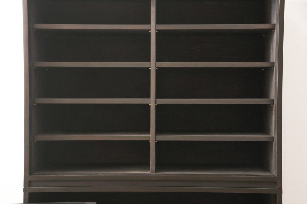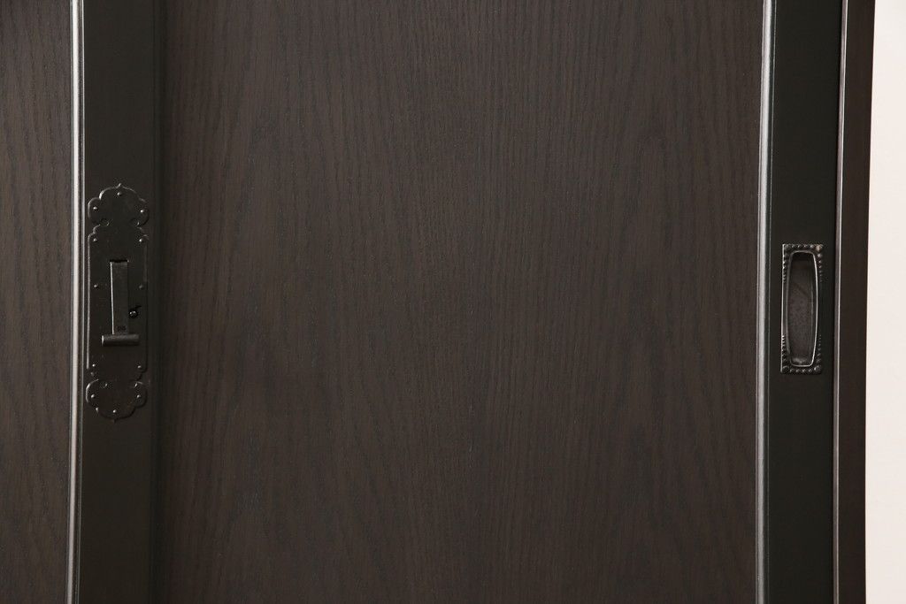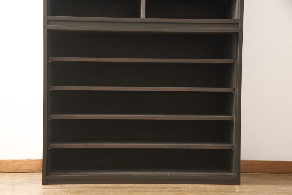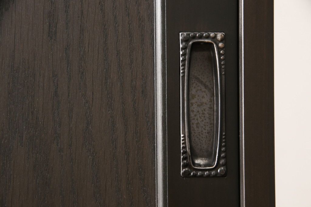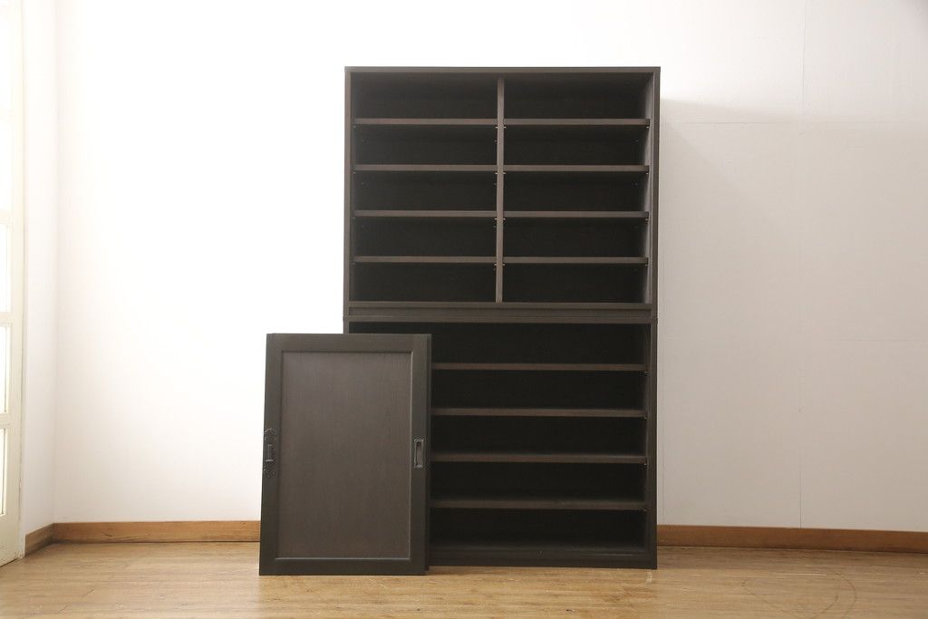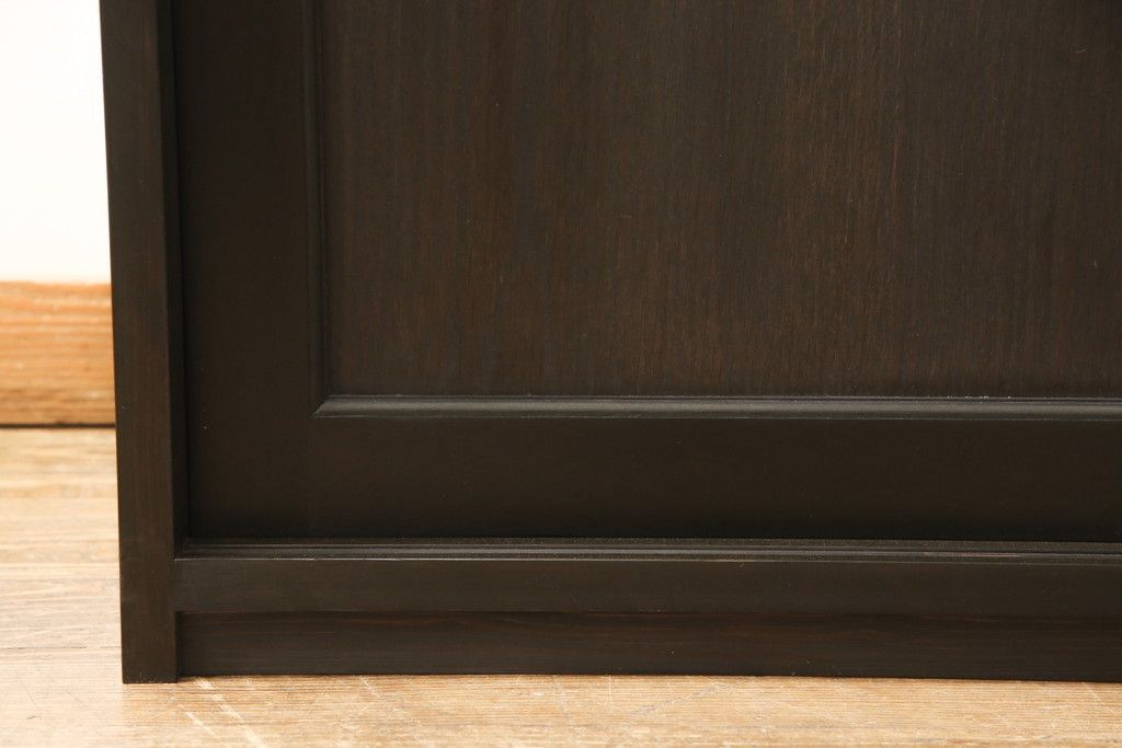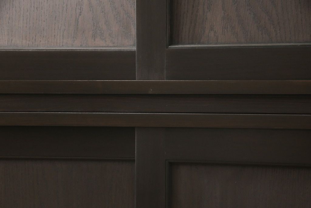 フルオーダー家具実績 > 飾り棚を新規製作!上下段ともに棚板4枚を設け、引き違い戸は戸板を製作。取っ手にはアンティーク金具を使用。(キャビネット、食器棚、戸棚、収納棚、重ね戸棚)