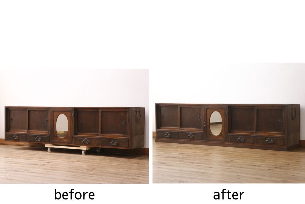 テレビ台をリペア&カスタム!台輪を製作し取付け。元の風合いを残した仕上げ。