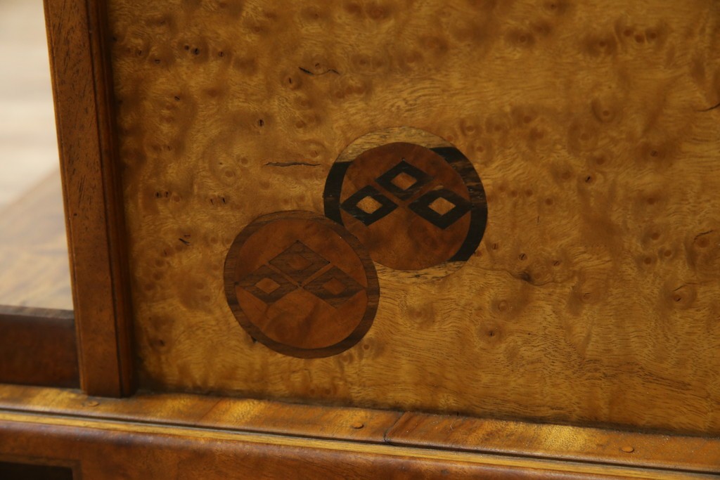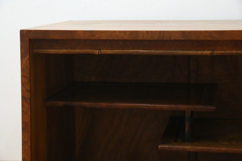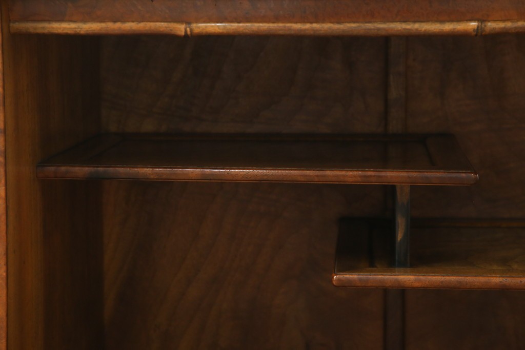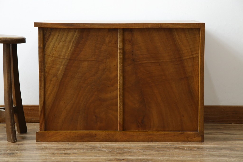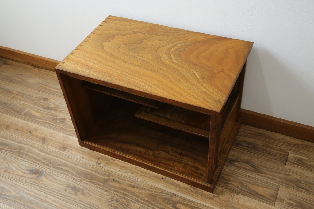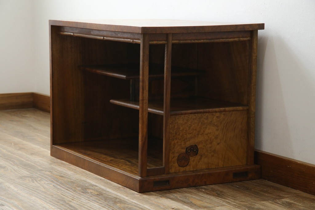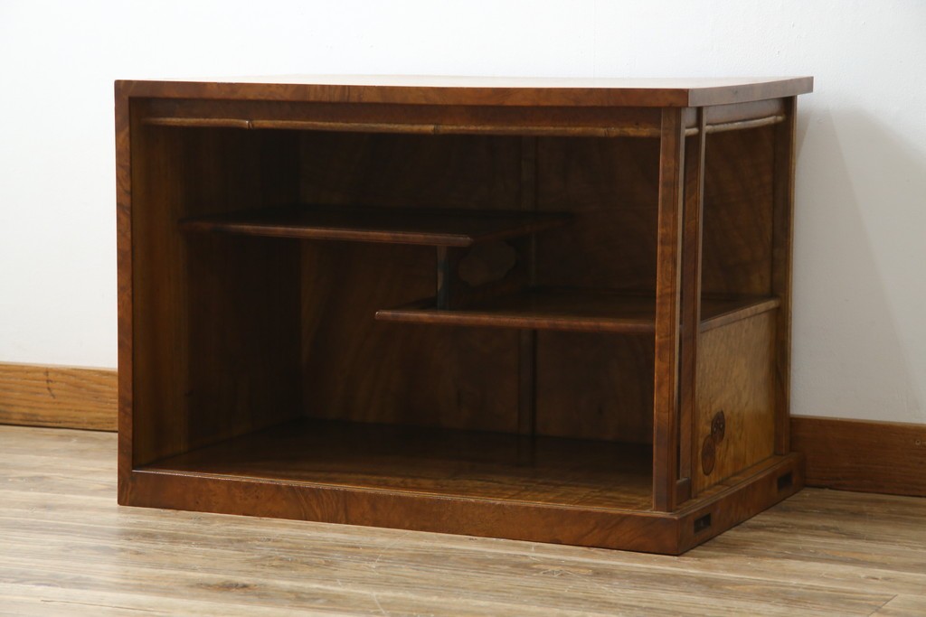 和製アンティーク 最高級!! 指物工芸家具 漆塗り 総楠(クス)材 前面玉杢 内部楠材 背面も上質な作り込みの飾り棚 (R-071070)