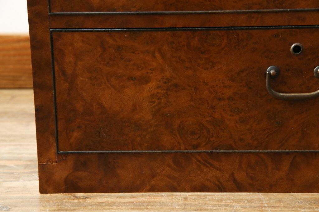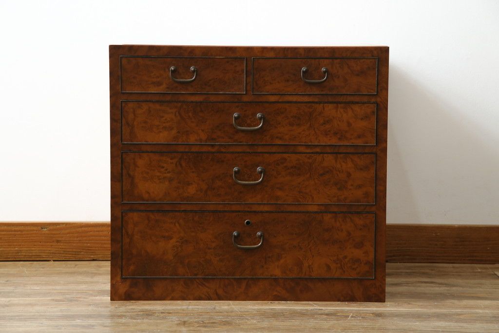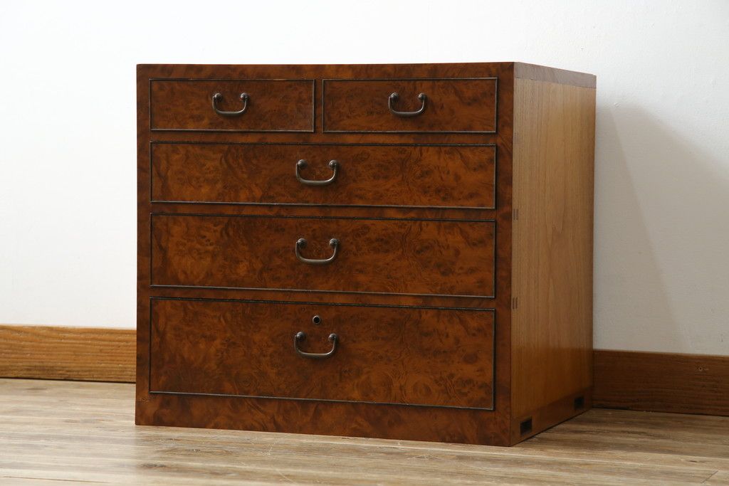和箪笥 > 和製アンティーク 最高級!! 指物工芸家具 漆塗り 総楠(クス)材 前面玉杢 内部楠材 黒柿縁がアクセントの時代小箪笥(チェスト、和タンス、衣装箪笥、収納箪笥、時代箪笥)(R-071071)