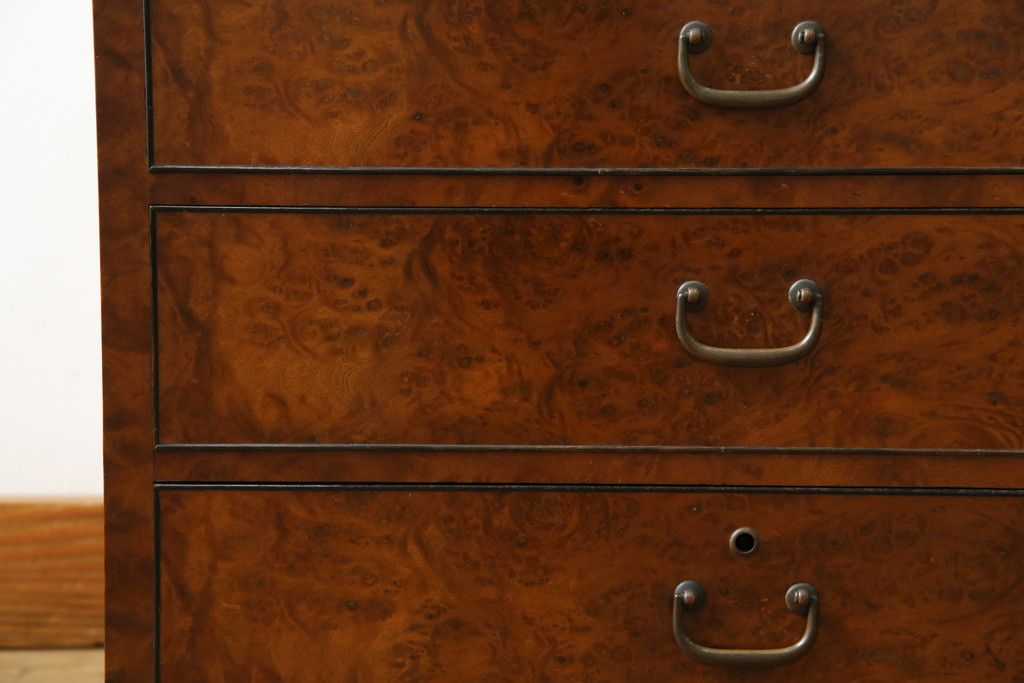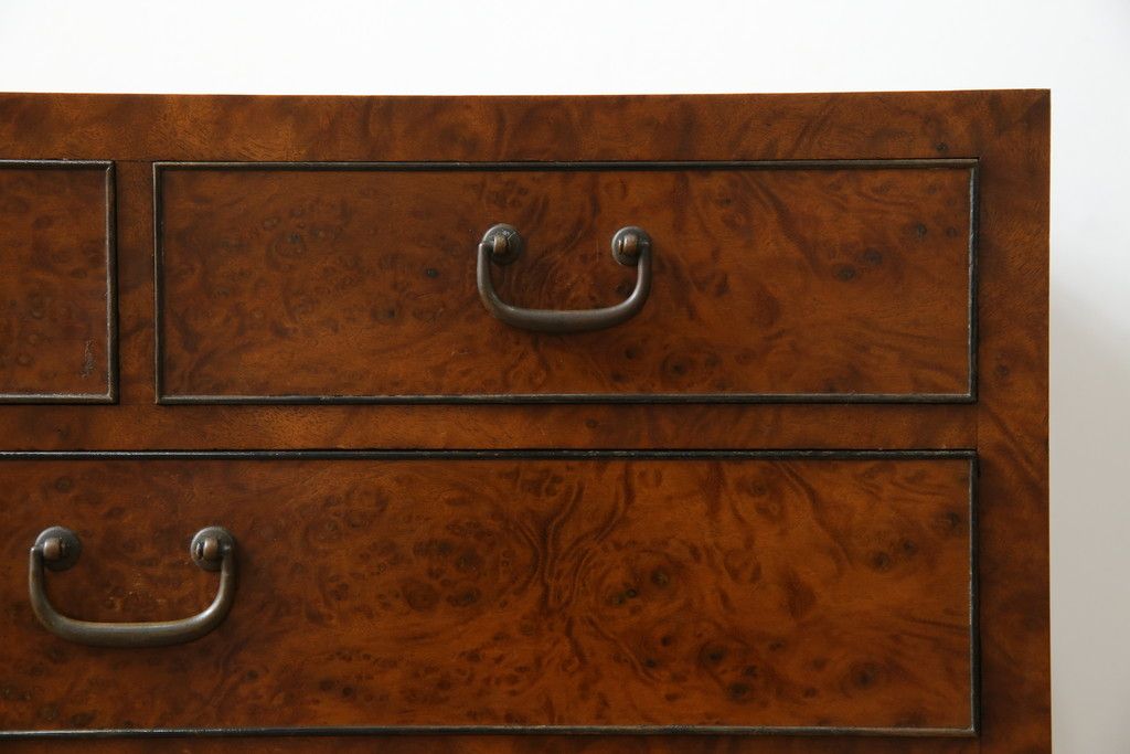 和箪笥> 衣装箪笥 > 和製アンティーク 最高級!! 指物工芸家具 漆塗り 総楠(クス)材 前面玉杢 内部楠材 黒柿縁がアクセントの時代小箪笥(チェスト、和タンス、衣装箪笥、収納箪笥、時代箪笥)(R-071071)
