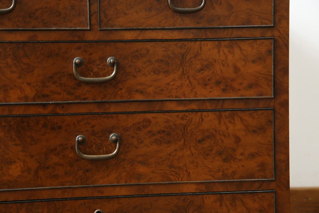 和製アンティーク 最高級!! 指物工芸家具 漆塗り 総楠(クス)材 前面玉杢 内部楠材 黒柿縁がアクセントの時代小箪笥(チェスト、和タンス、衣装箪笥、収納箪笥、時代箪笥)(R-071071)