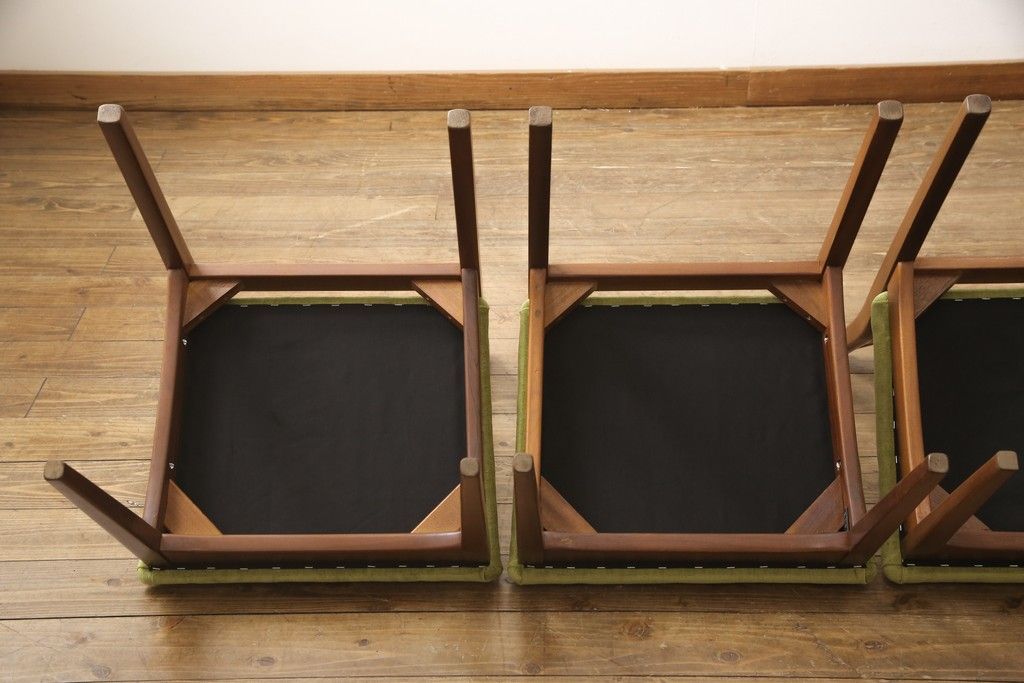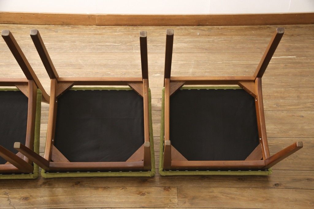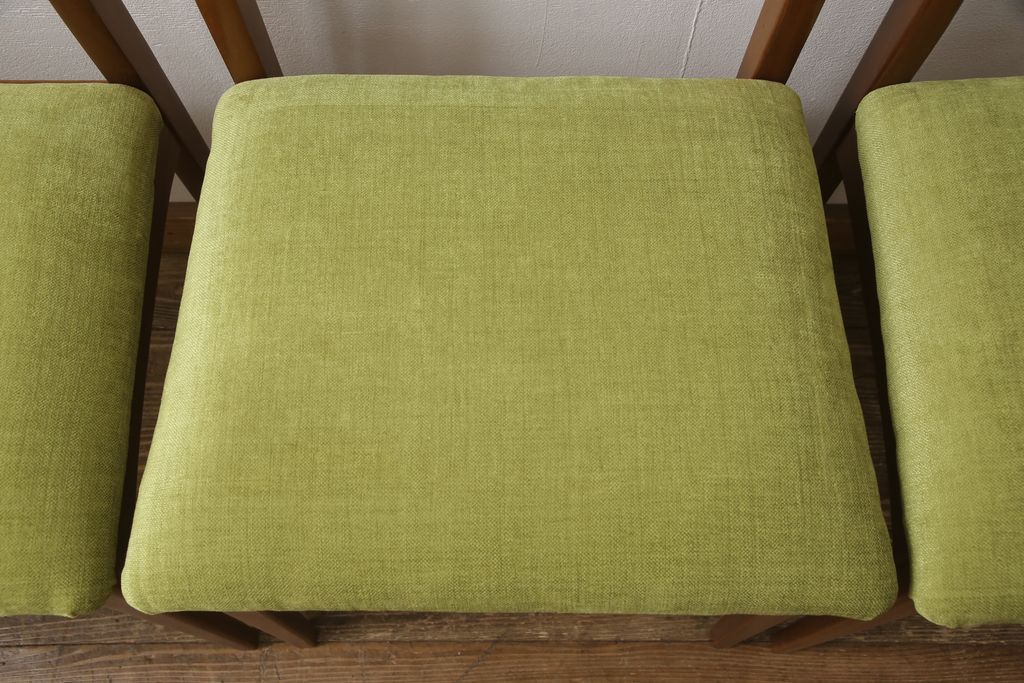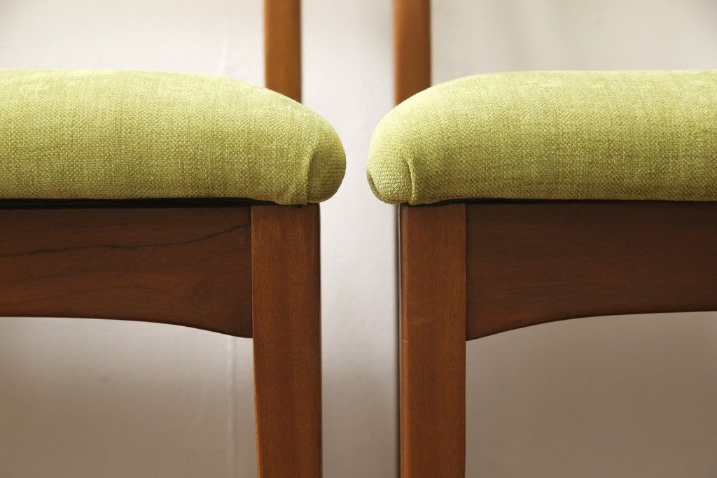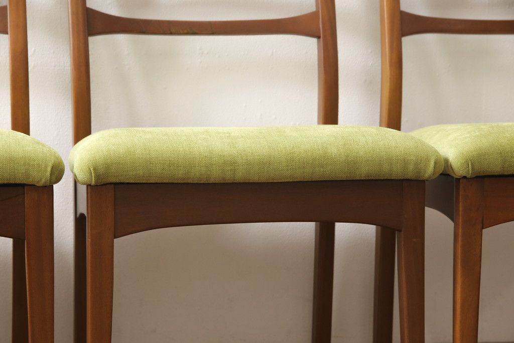 ビンテージのチェア4脚セットをリペア&カスタム!座面を張り替え、木部は1トーン落ち着いた色味に着色仕上げ。(ダイニングチェア、椅子、ヴィンテージ、北欧)