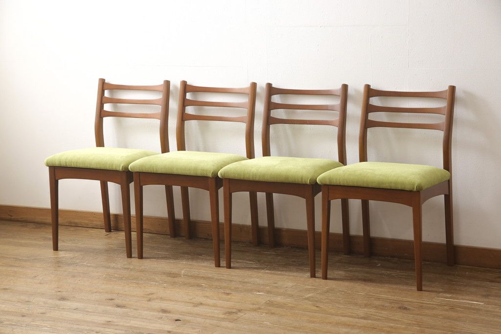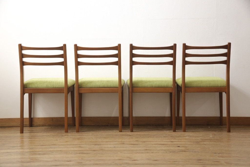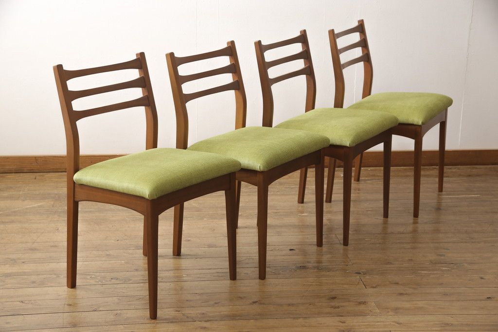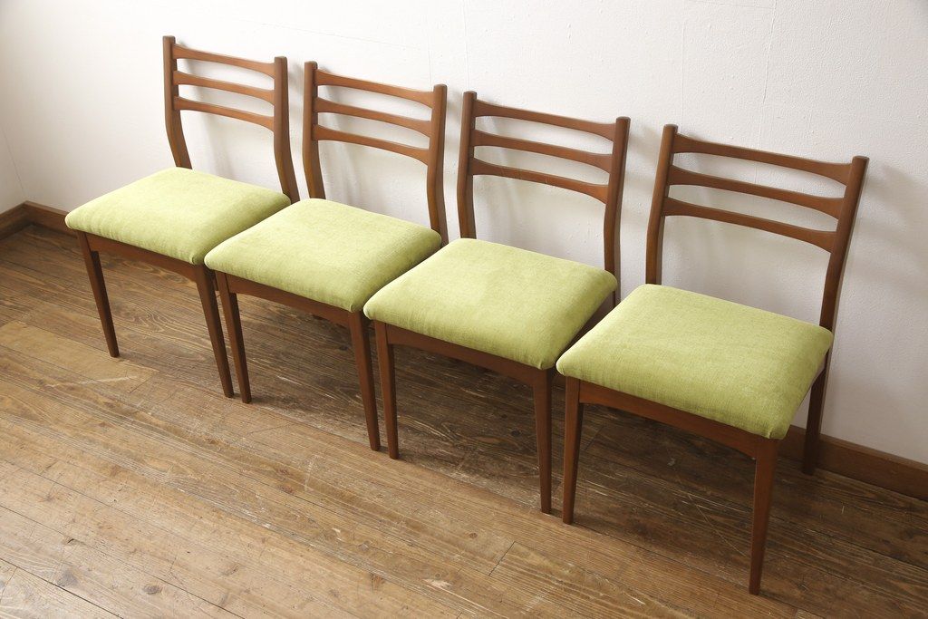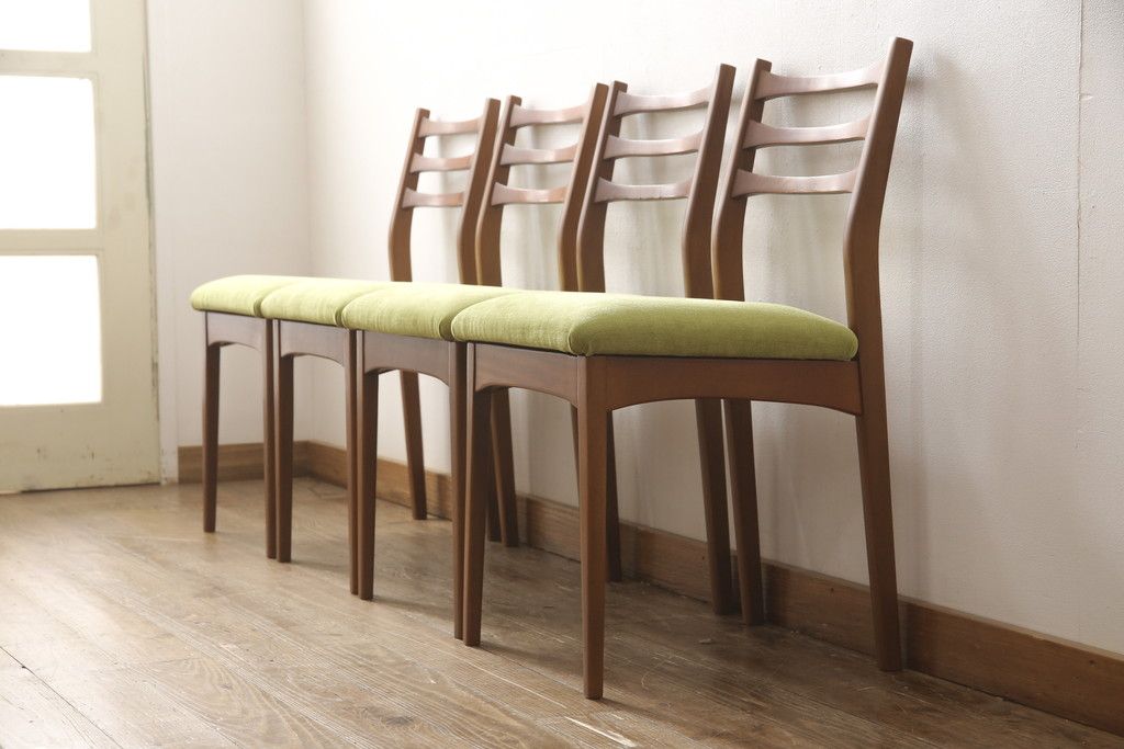 ビンテージのチェア4脚セットをリペア&カスタム!座面を張り替え、木部は1トーン落ち着いた色味に着色仕上げ。(ダイニングチェア、椅子、ヴィンテージ、北欧)