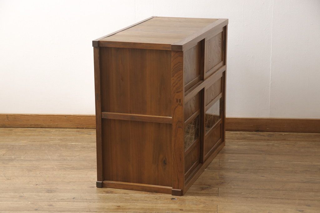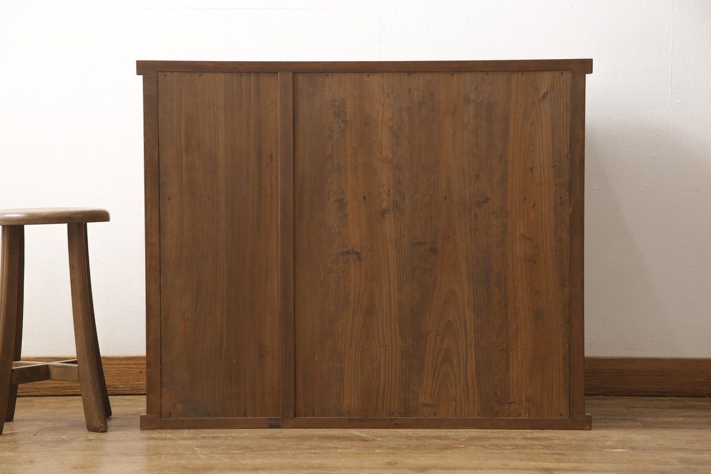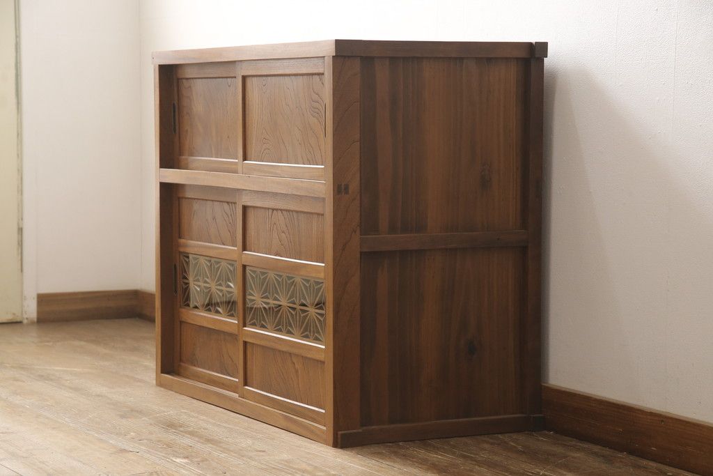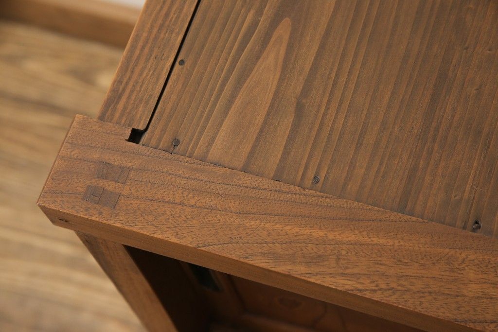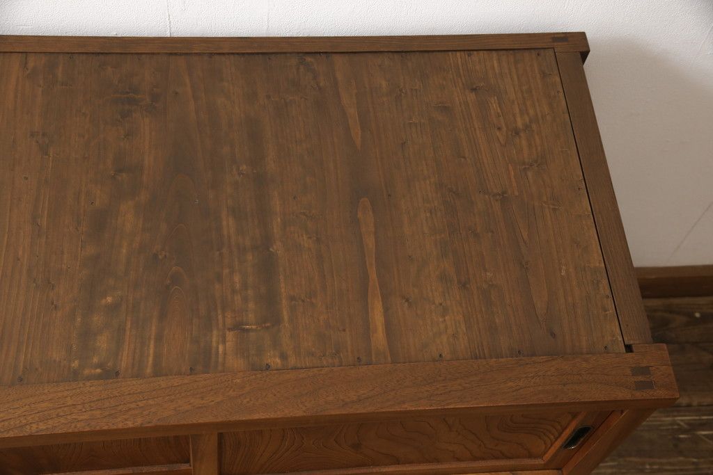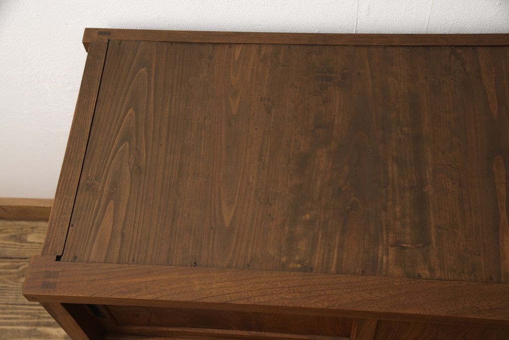 和箪笥> 水屋箪笥 > 戸棚をリペア&カスタム!戸棚内部に補強材を張り付け天板補強。内部は本体のお色味に合わせて着色、本体は現状をベースにして1トーン程落ち着いた色味に着色。(関東水屋箪笥、キャビネット、収納棚)