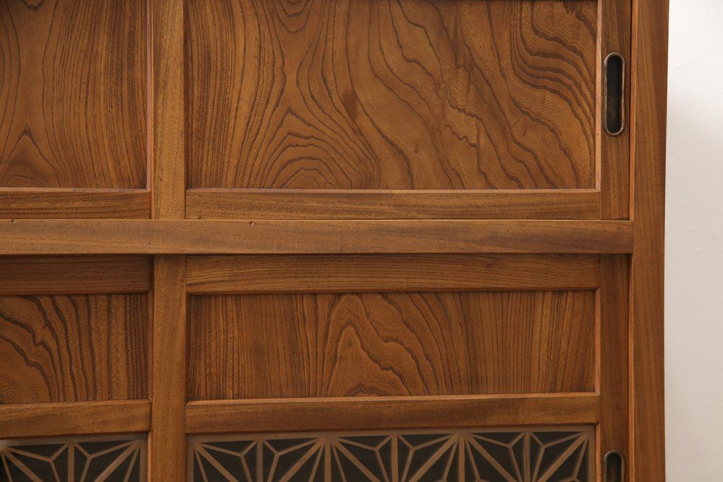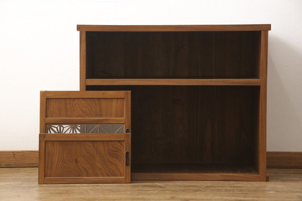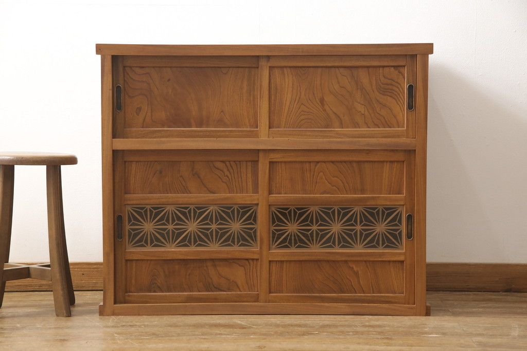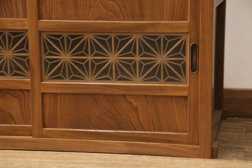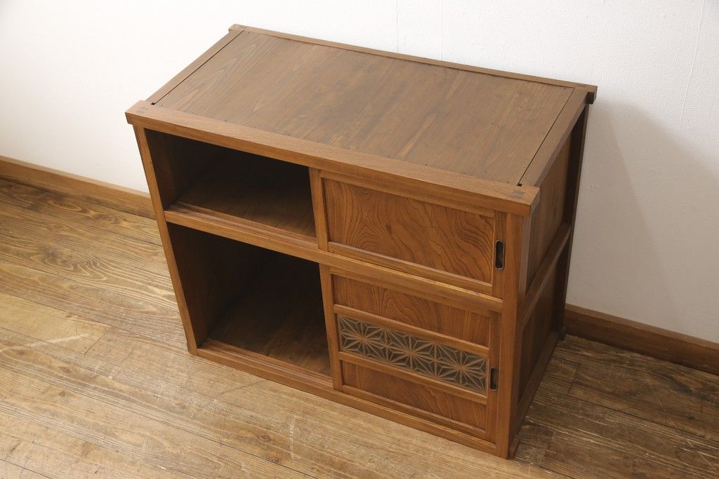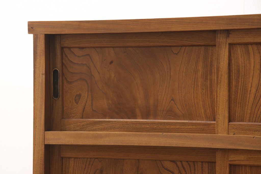 和箪笥> 水屋箪笥 > 戸棚をリペア&カスタム!戸棚内部に補強材を張り付け天板補強。内部は本体のお色味に合わせて着色、本体は現状をベースにして1トーン程落ち着いた色味に着色。(関東水屋箪笥、キャビネット、収納棚)