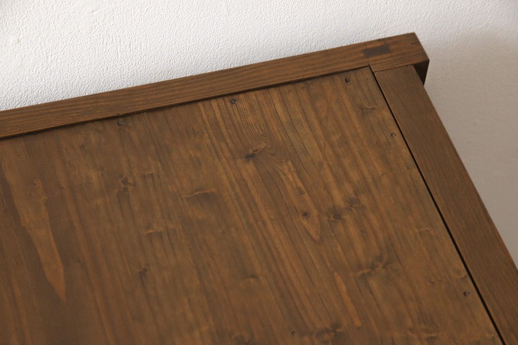 戸棚をリペア&カスタム!戸棚内部に補強材を張り付け天板補強。内部は本体のお色味に合わせて着色、本体は現状をベースにして1トーン程落ち着いた色味に着色。(関東水屋箪笥、キャビネット、収納棚)