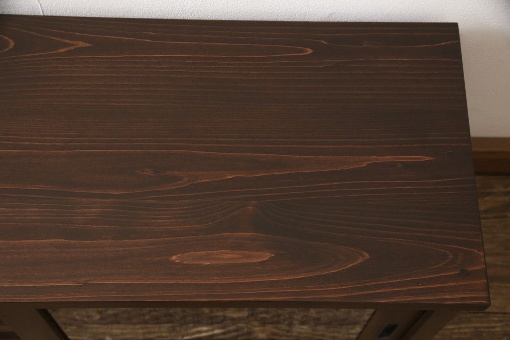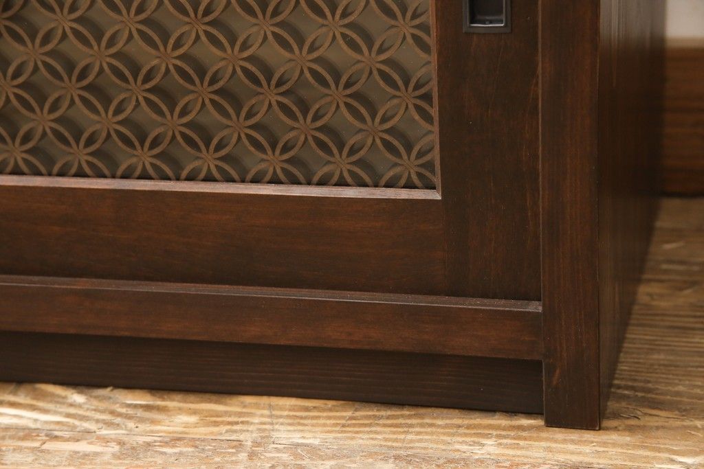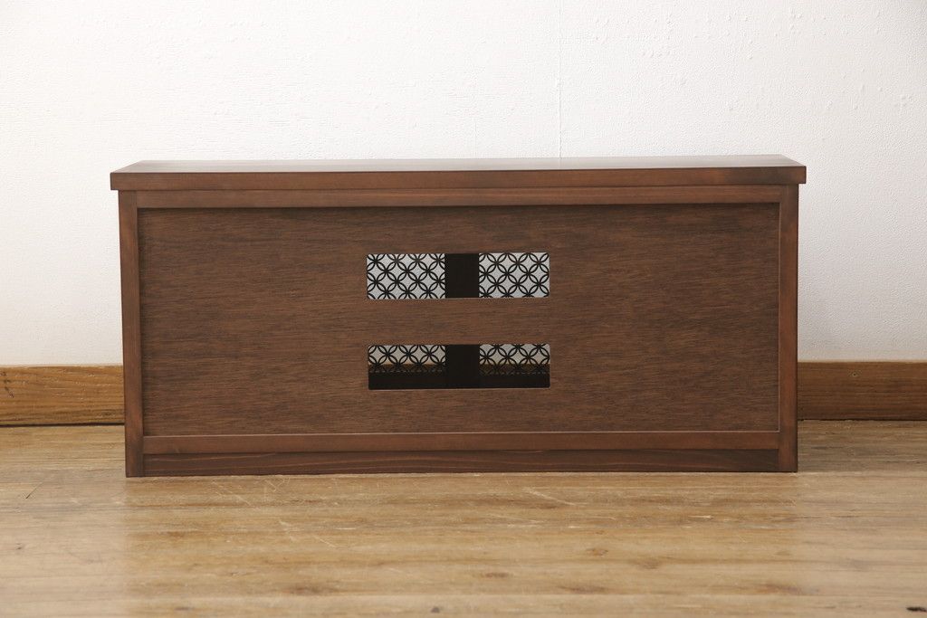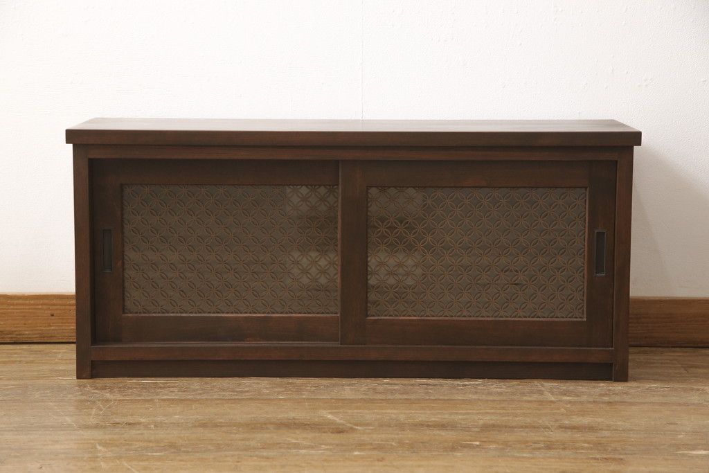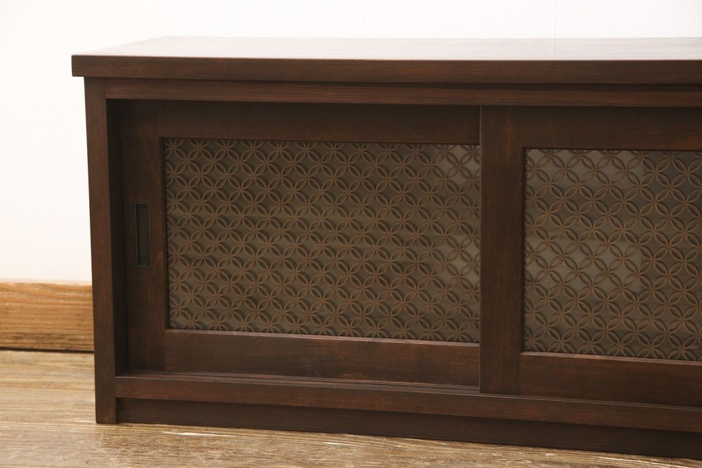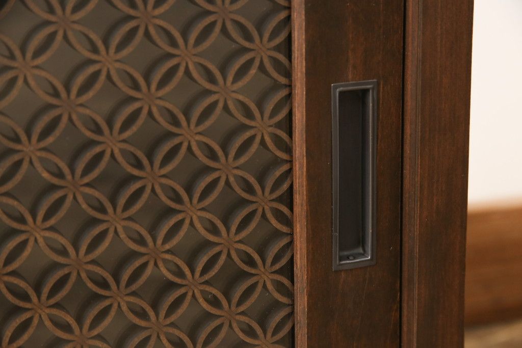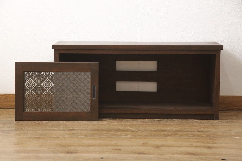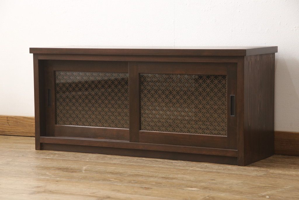 テレビ台を新規製作!建具に七宝模様の組子レーザー加工をし、背面には穴あけ加工。色味は当店商品を参考に着色。(収納棚、キャビネット、テレビ台、テレビボード)