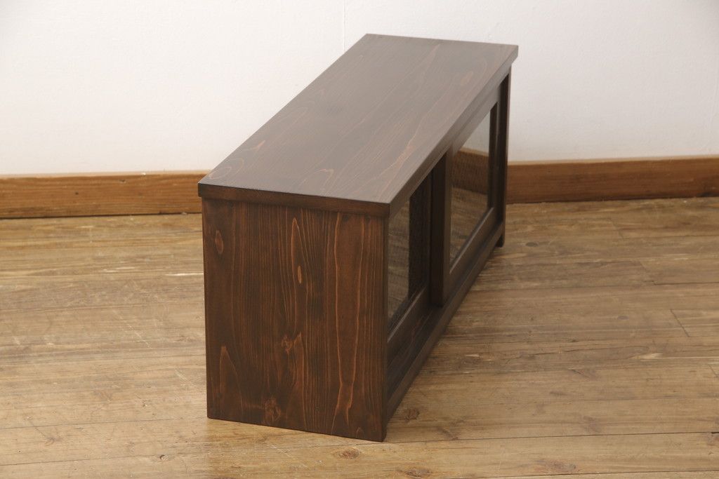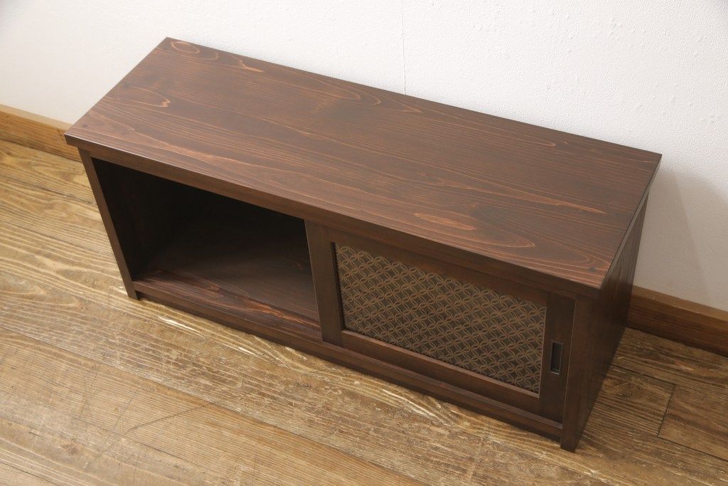 ラフジュ工房> キャビネット・戸棚> テレビ台・ローボード > テレビ台を新規製作!建具に七宝模様の組子レーザー加工をし、背面には穴あけ加工。色味は当店商品を参考に着色。(収納棚、キャビネット、テレビ台、テレビボード)