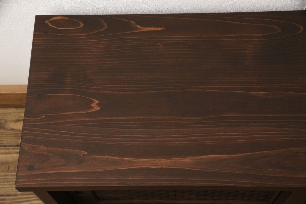 ラフジュ工房> フルオーダー家具実績 > テレビ台を新規製作!建具に七宝模様の組子レーザー加工をし、背面には穴あけ加工。色味は当店商品を参考に着色。(収納棚、キャビネット、テレビ台、テレビボード)
