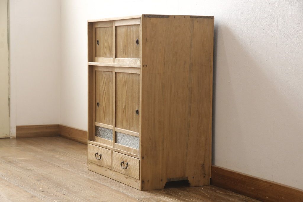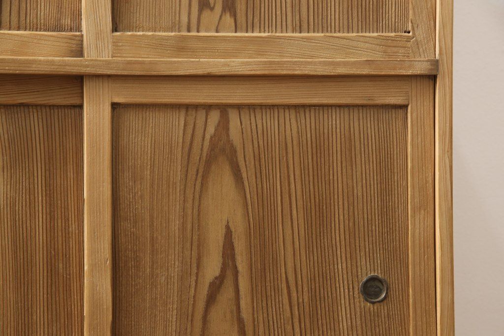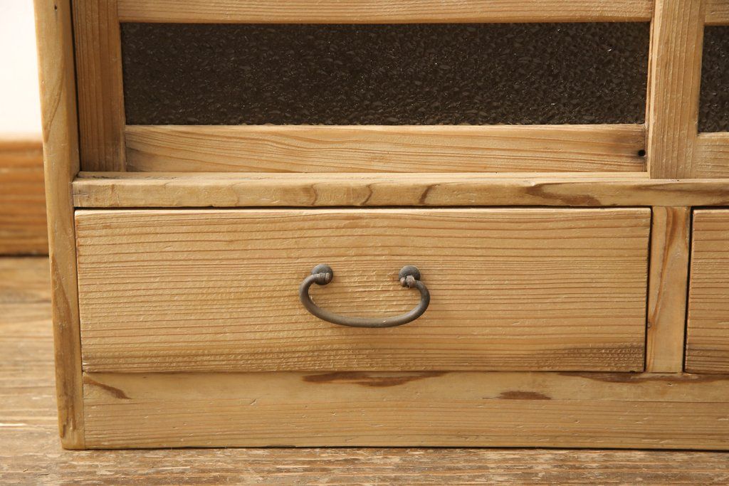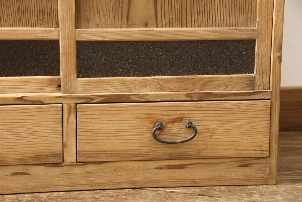 昭和初期の戸棚をリペア&カスタム!引き戸にダイヤガラスを入れ、クリアワックス仕上げ。(収納棚、キャビネット)