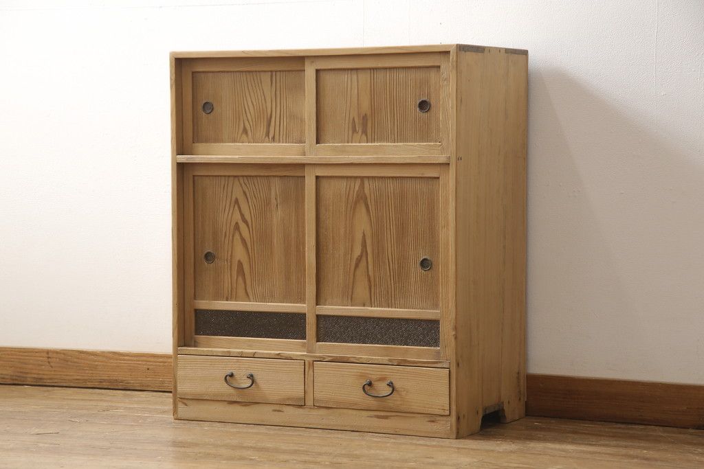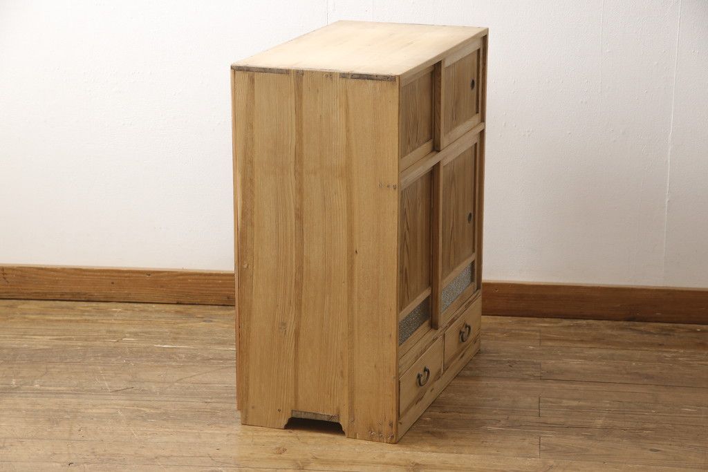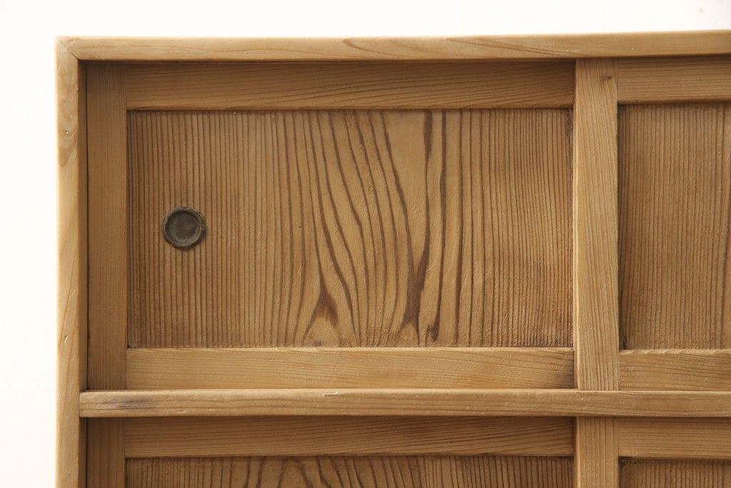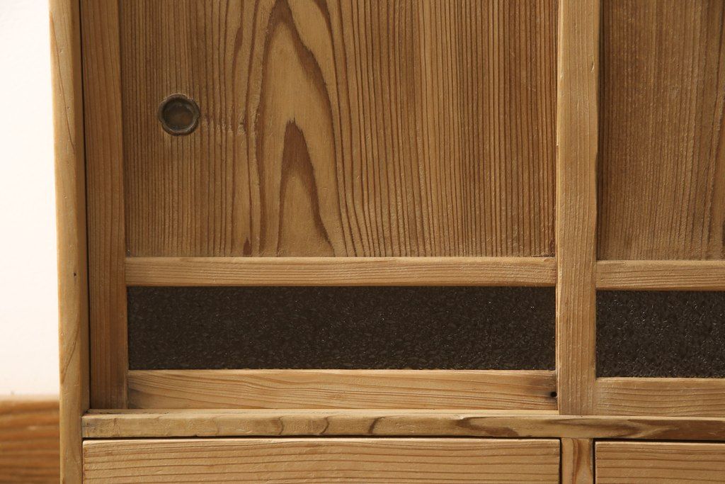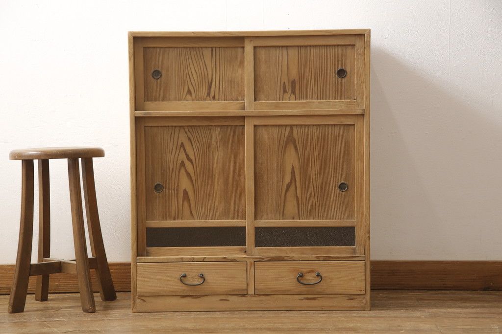 昭和初期の戸棚をリペア&カスタム!引き戸にダイヤガラスを入れ、クリアワックス仕上げ。(収納棚、キャビネット)