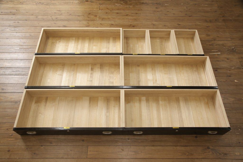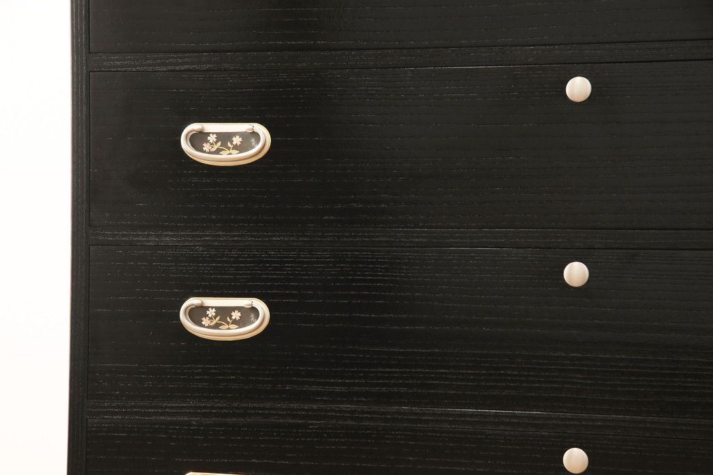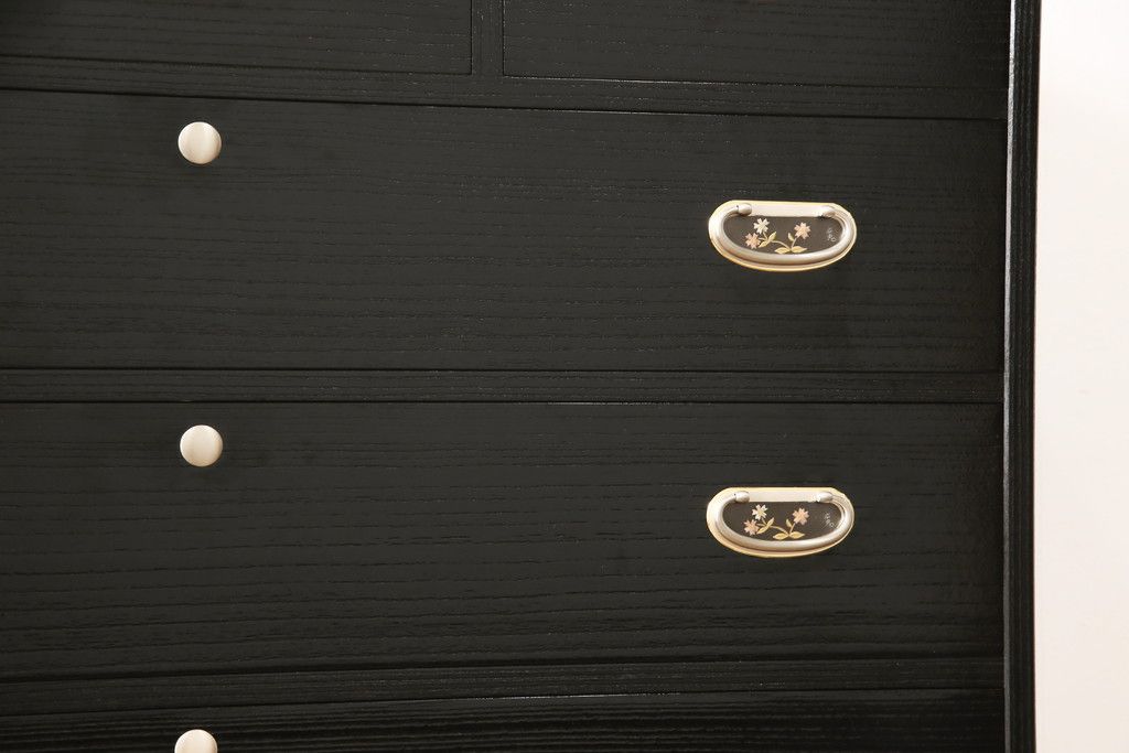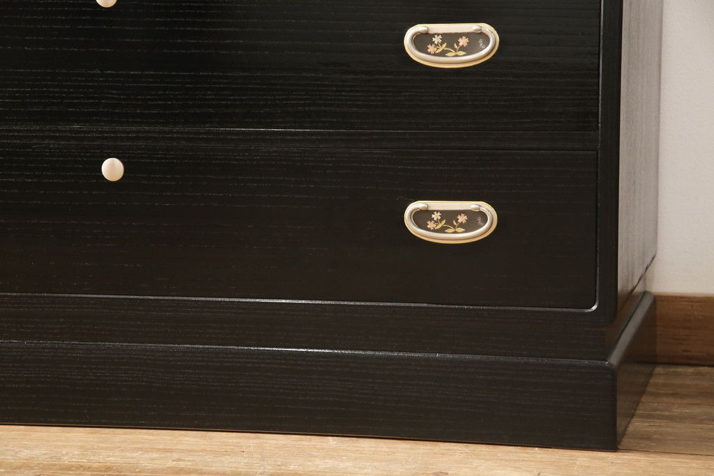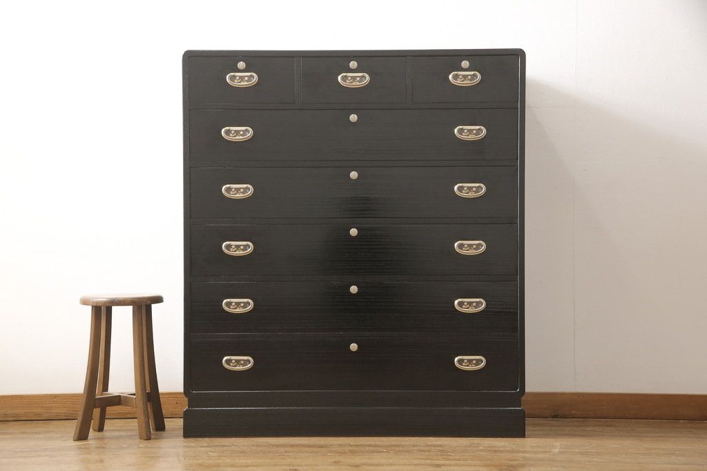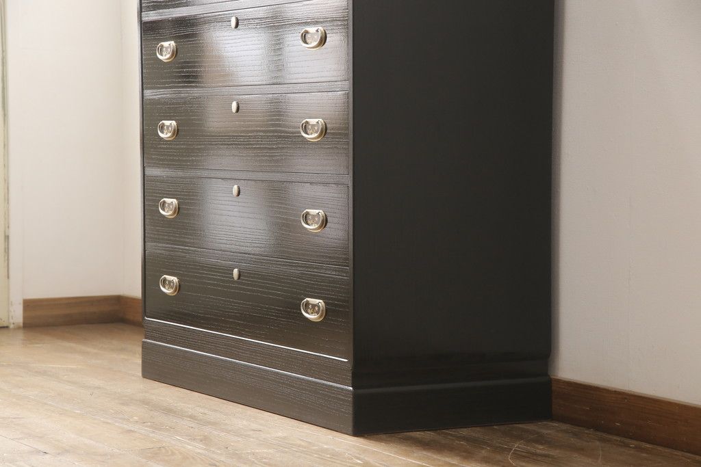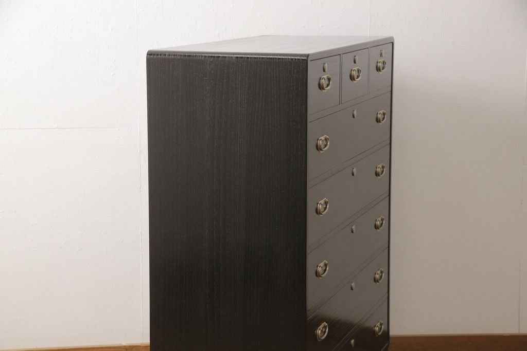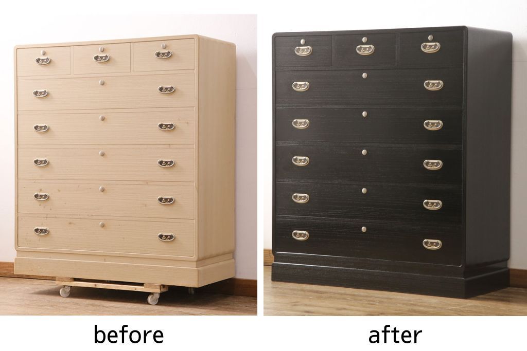 和箪笥> 衣装箪笥 > 総桐箪笥をリペア&カスタム!本体は当店商品を参考にカシュー塗装の黒色に着色。引き出し内部は現状のままのお色味で仕上げ。(並厚、四方丸、桐たんす、引き出し、チェスト、衣装箪笥、整理タンス、小抽タンス、小箪笥、桐たんす、和箪笥)