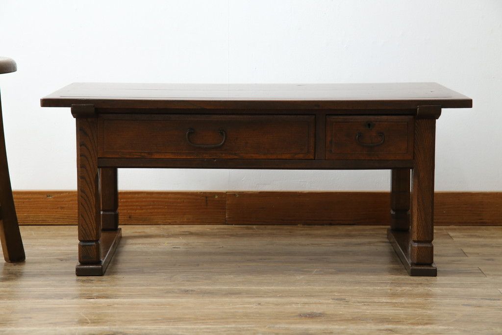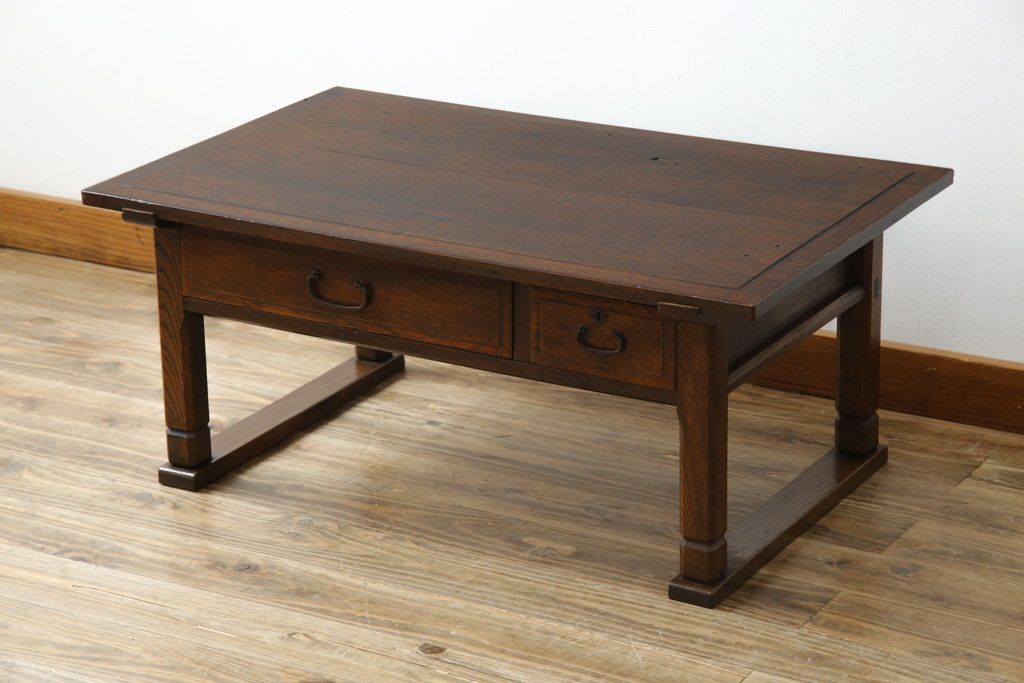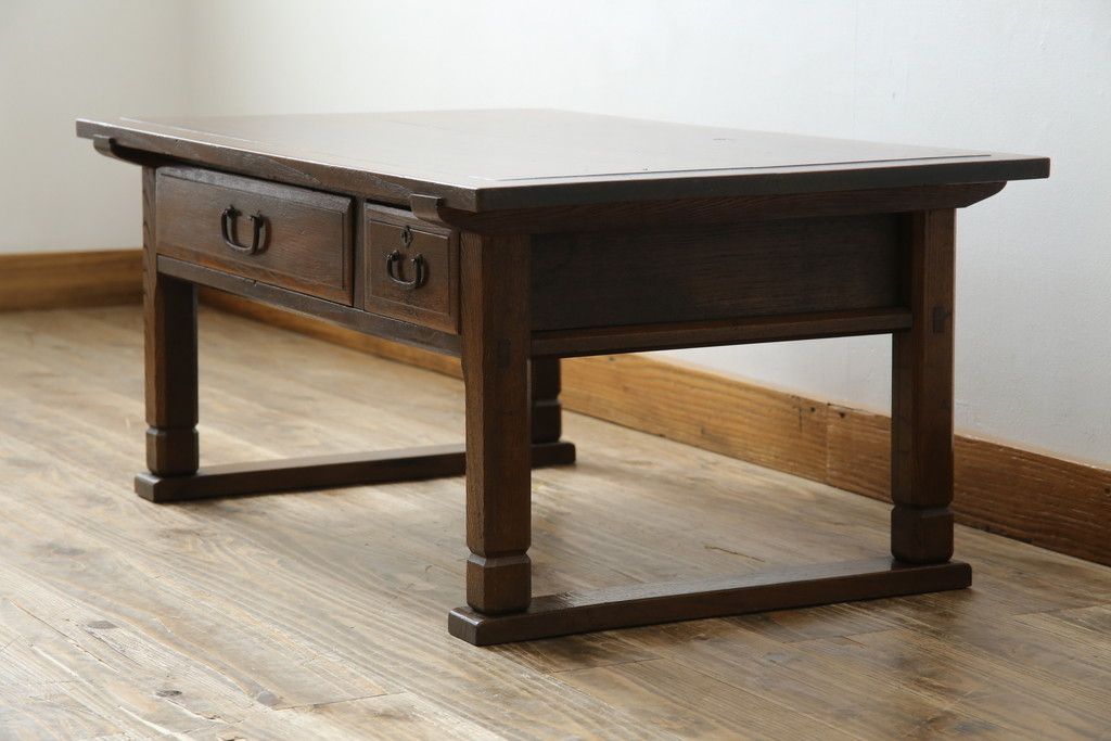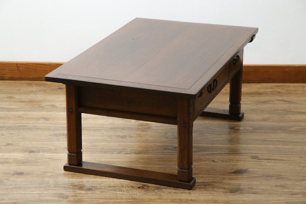テーブル> センターテーブル・ローテーブル > 和製アンティーク 栗材と欅(ケヤキ)材の上質な文机(座卓、ローテーブル、センターテーブル、平机、在宅ワーク、在宅用)(R-071174)