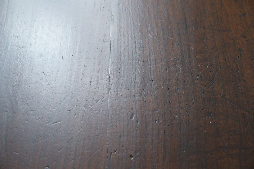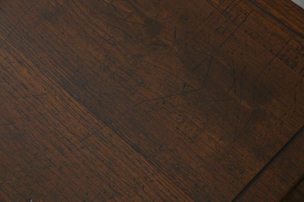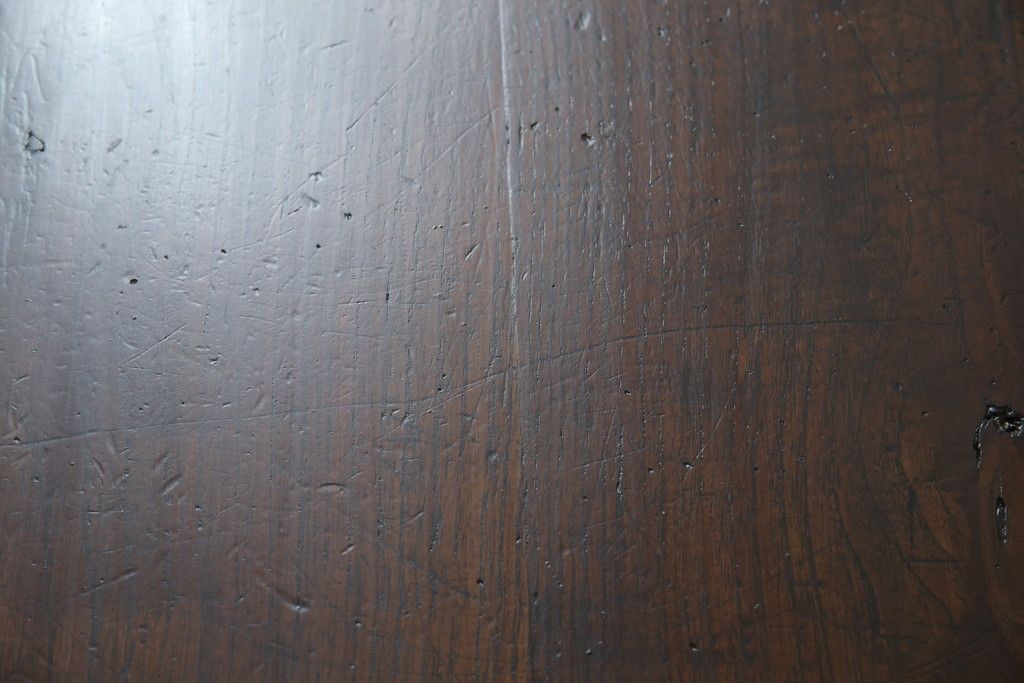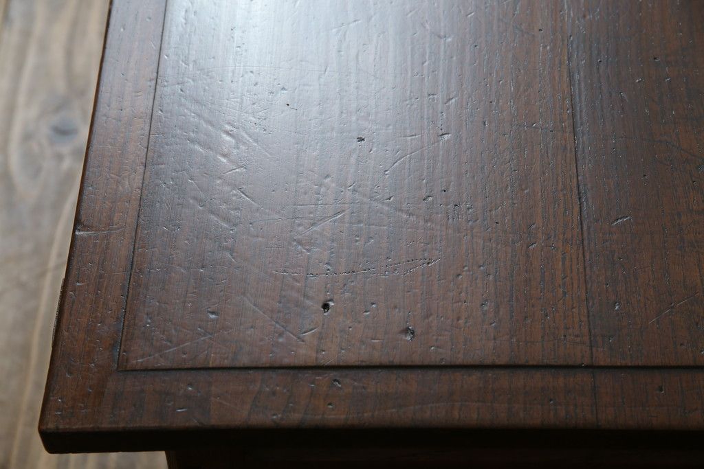 天板は当店でクリア塗装を施しております。小キズ等が目立ちにくく、耐水性と耐久性に優れたお手入れがしやすい仕上げです。