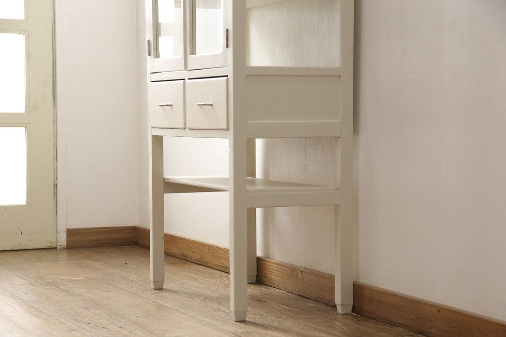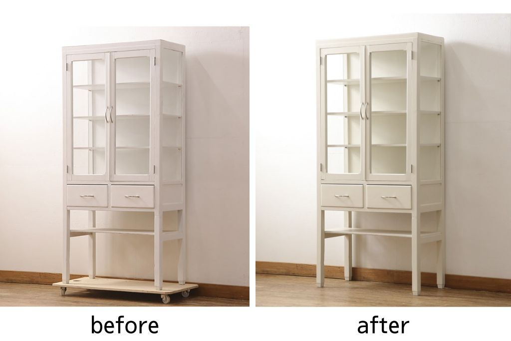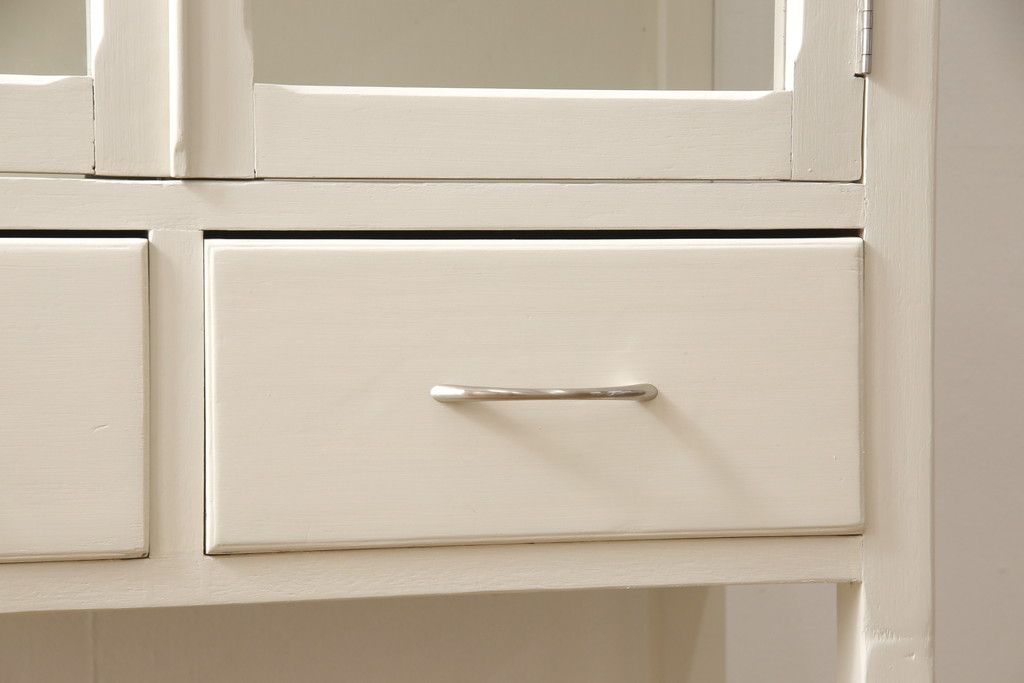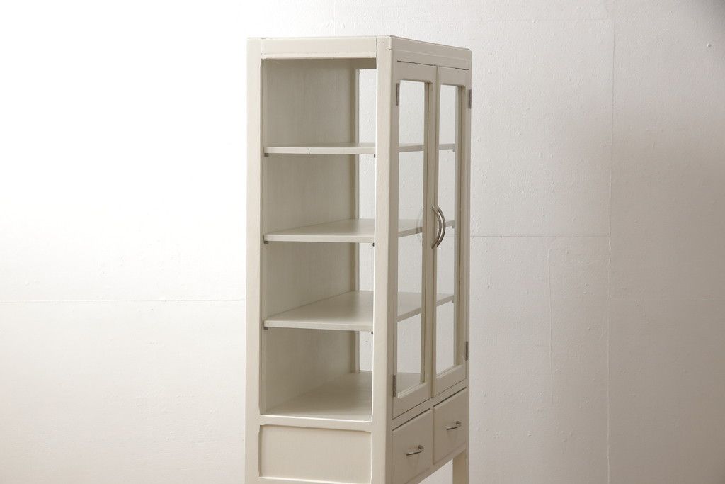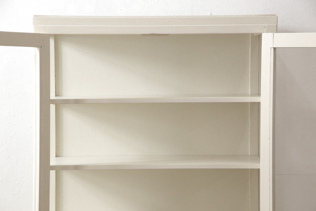 ケビントガラスケースをリペア&カスタム!本体はアンティークホワイトにペイント。(飾り棚、収納棚、陳列棚、キャビネット)