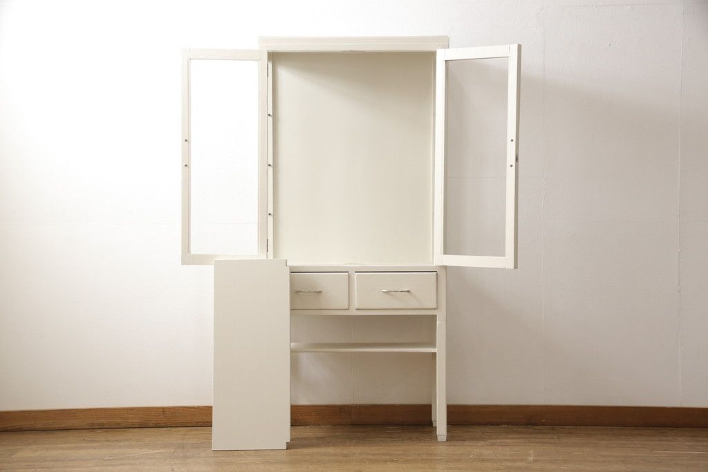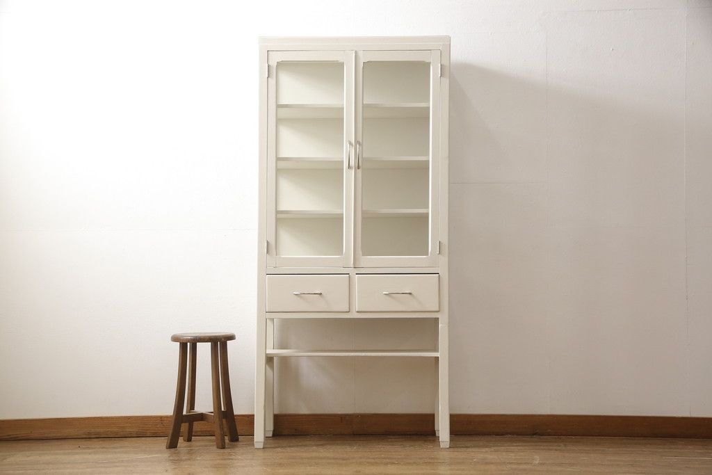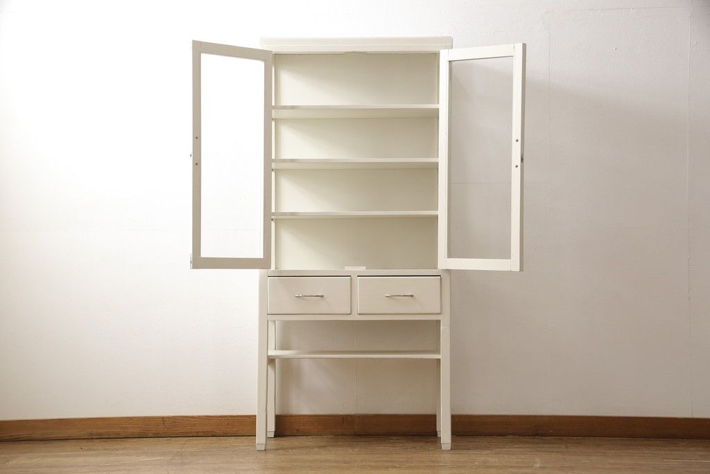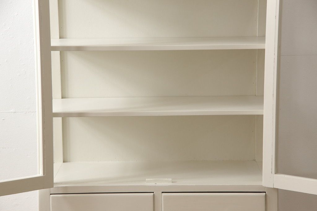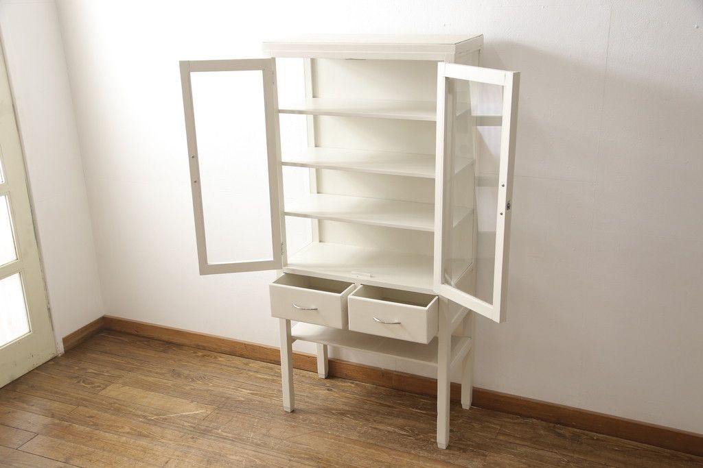 ケビントガラスケースをリペア&カスタム!本体はアンティークホワイトにペイント。(飾り棚、収納棚、陳列棚、キャビネット)