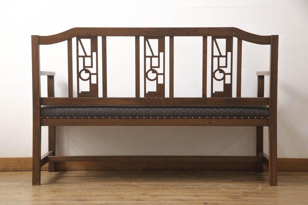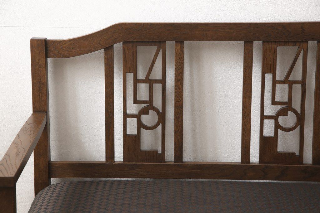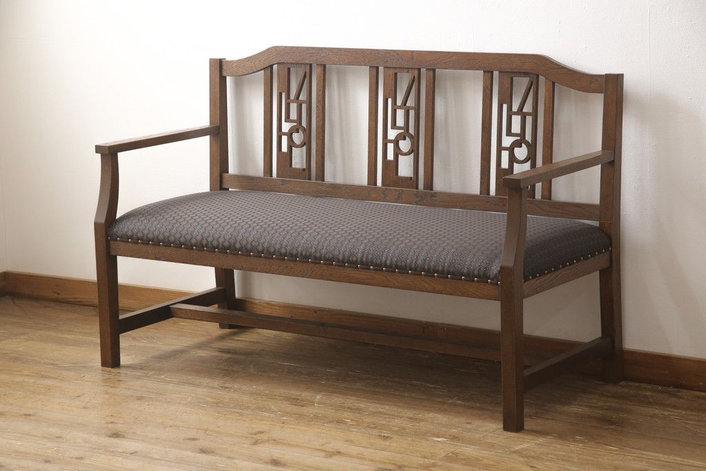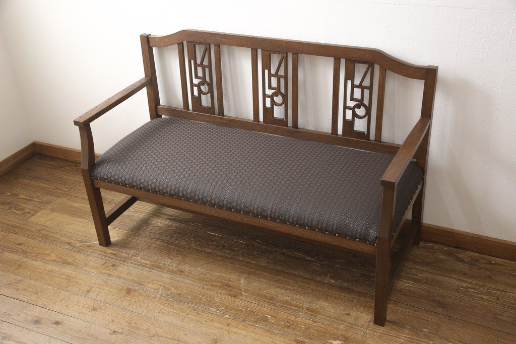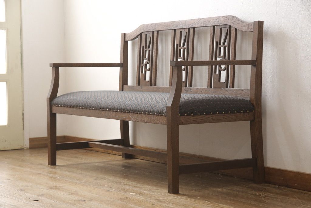 ソファ> ダイニングソファ > 2人掛けソファを新規製作!ラフジュ工房オリジナルのソファを参考に製作。ご希望の生地を張り、鋲、ブレードを取り付け。(ベンチ、ダイニングソファ)