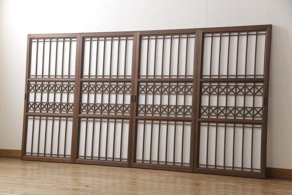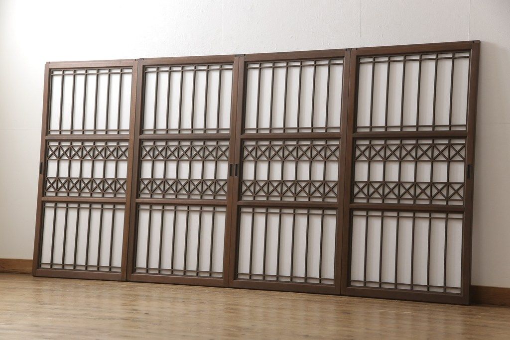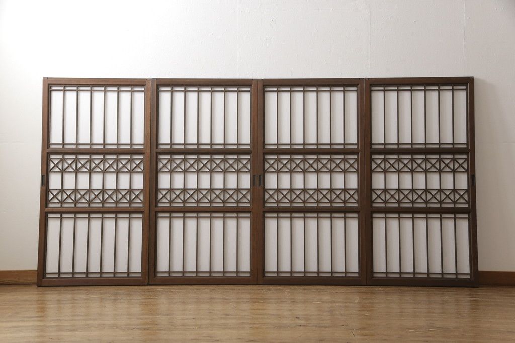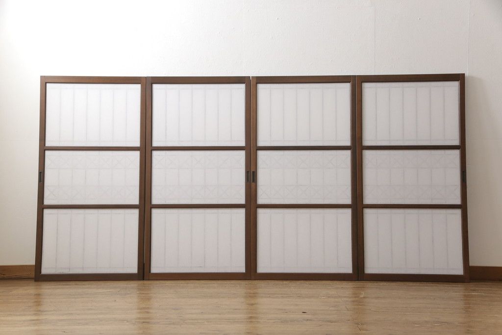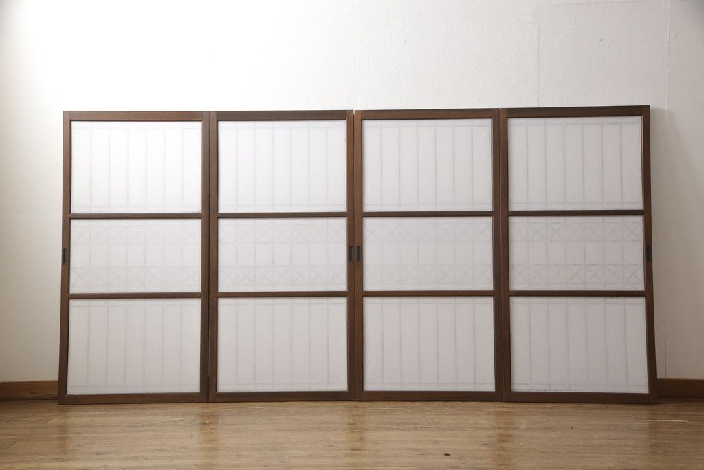ドア・建具> 4枚〜セット > 組子障子戸4枚×2セットを新規製作!当店のオーダー建具を参考にご希望のサイズで障子戸を製作。引手を取り付け、プラスチック障子紙を新たに張り、当店商品を参考に着色。(引き戸、建具)