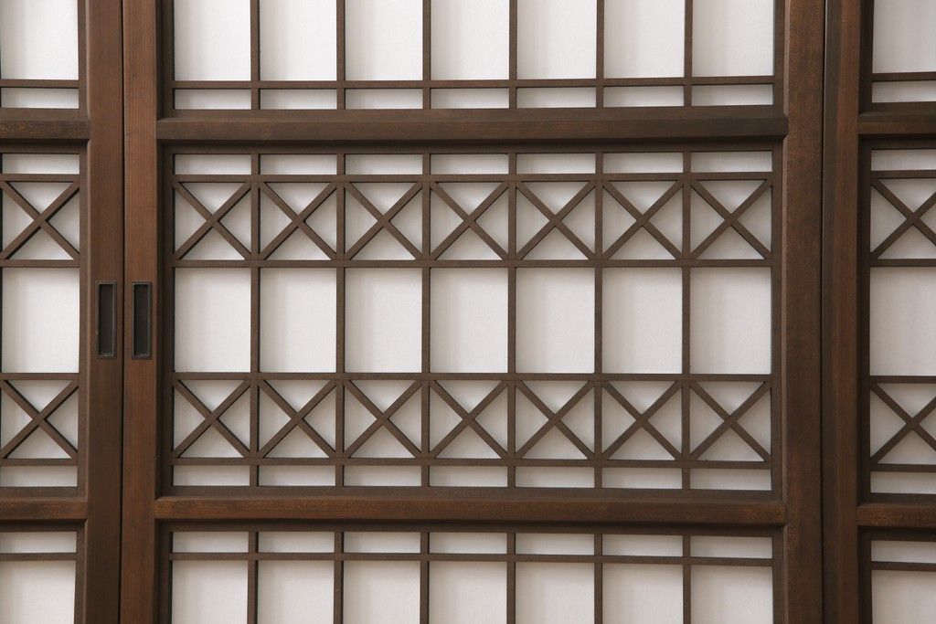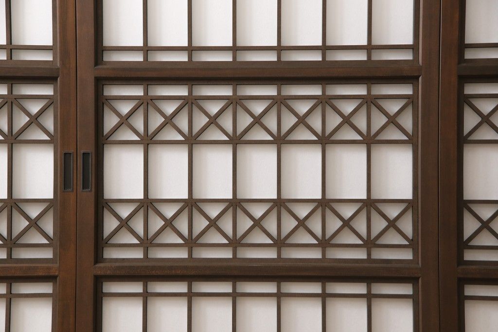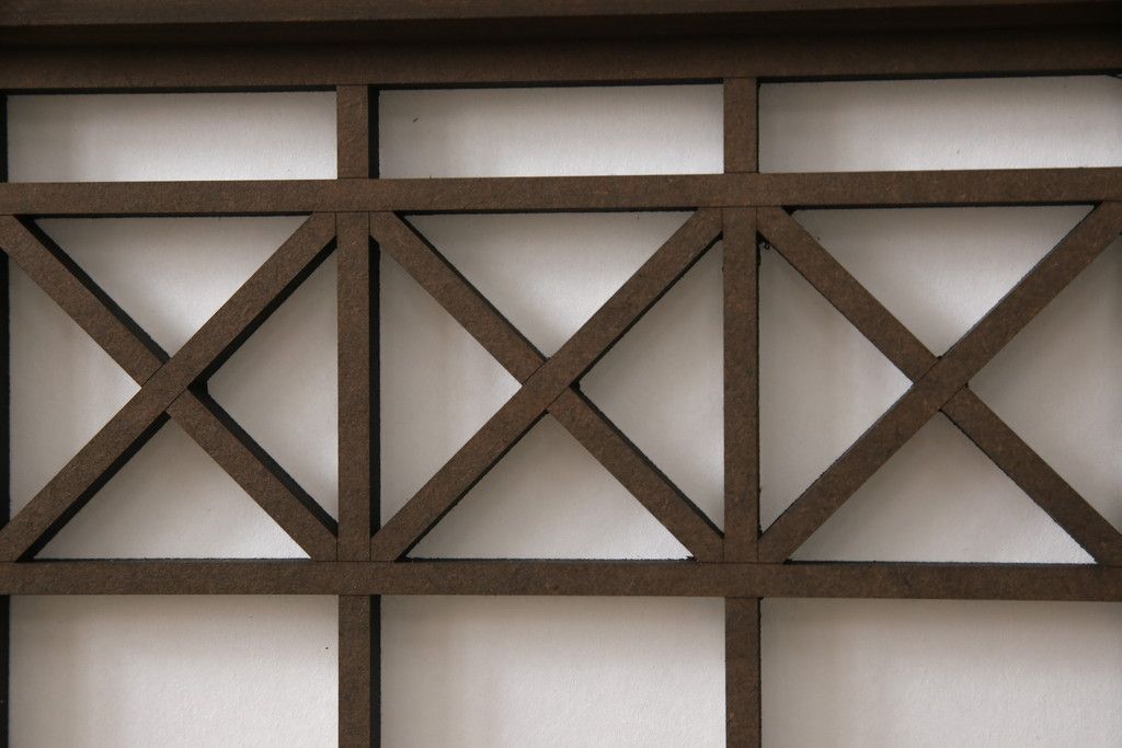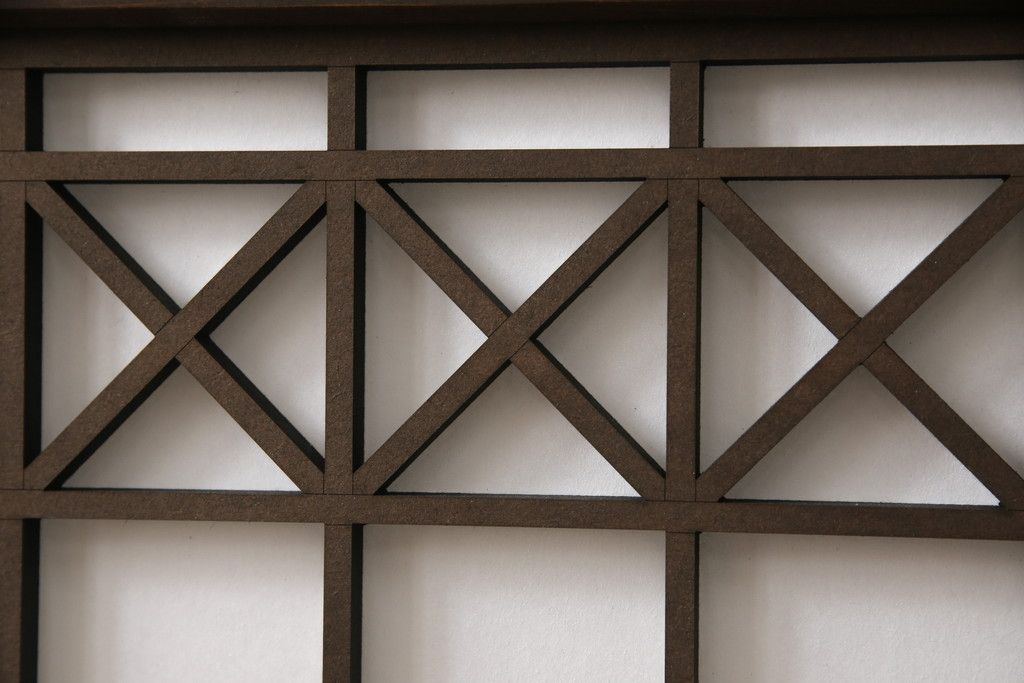 組子障子戸4枚×2セットを新規製作!当店のオーダー建具を参考にご希望のサイズで障子戸を製作。引手を取り付け、プラスチック障子紙を新たに張り、当店商品を参考に着色。(引き戸、建具)
