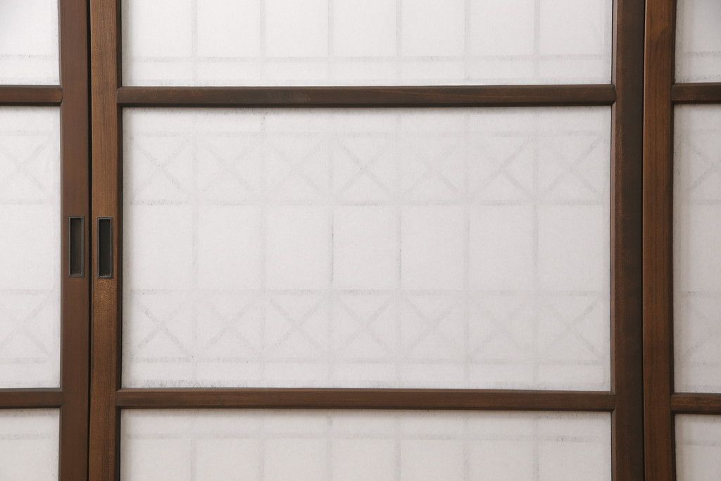 フルオーダー家具実績 > 組子障子戸4枚×2セットを新規製作!当店のオーダー建具を参考にご希望のサイズで障子戸を製作。引手を取り付け、プラスチック障子紙を新たに張り、当店商品を参考に着色。(引き戸、建具)