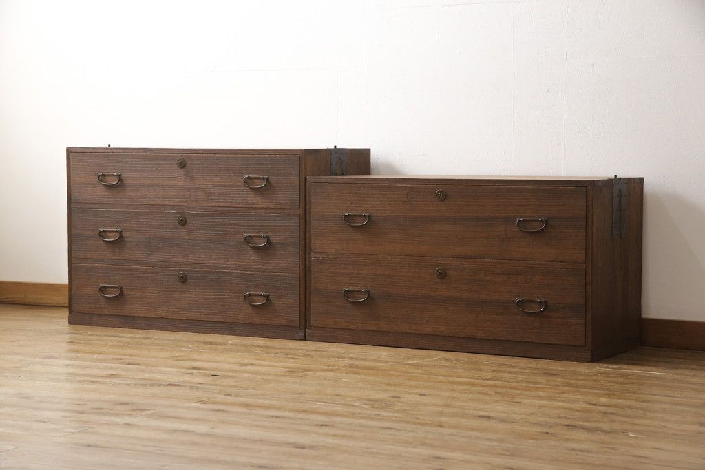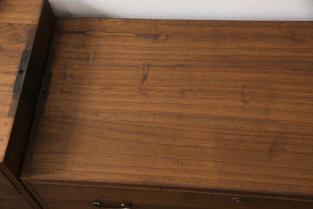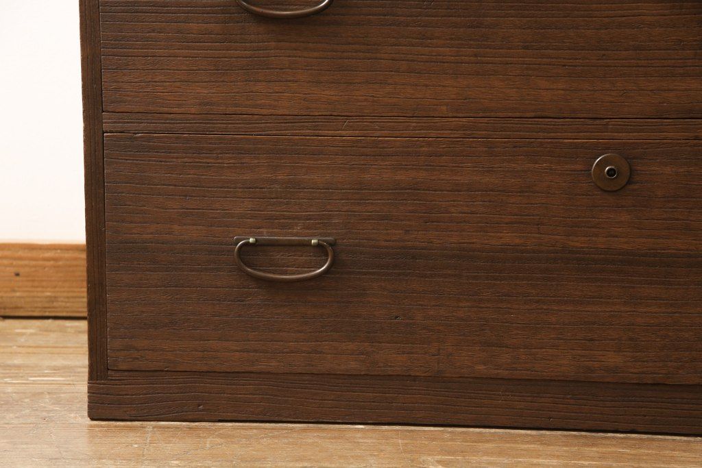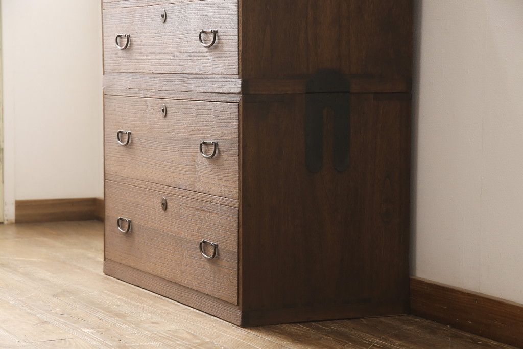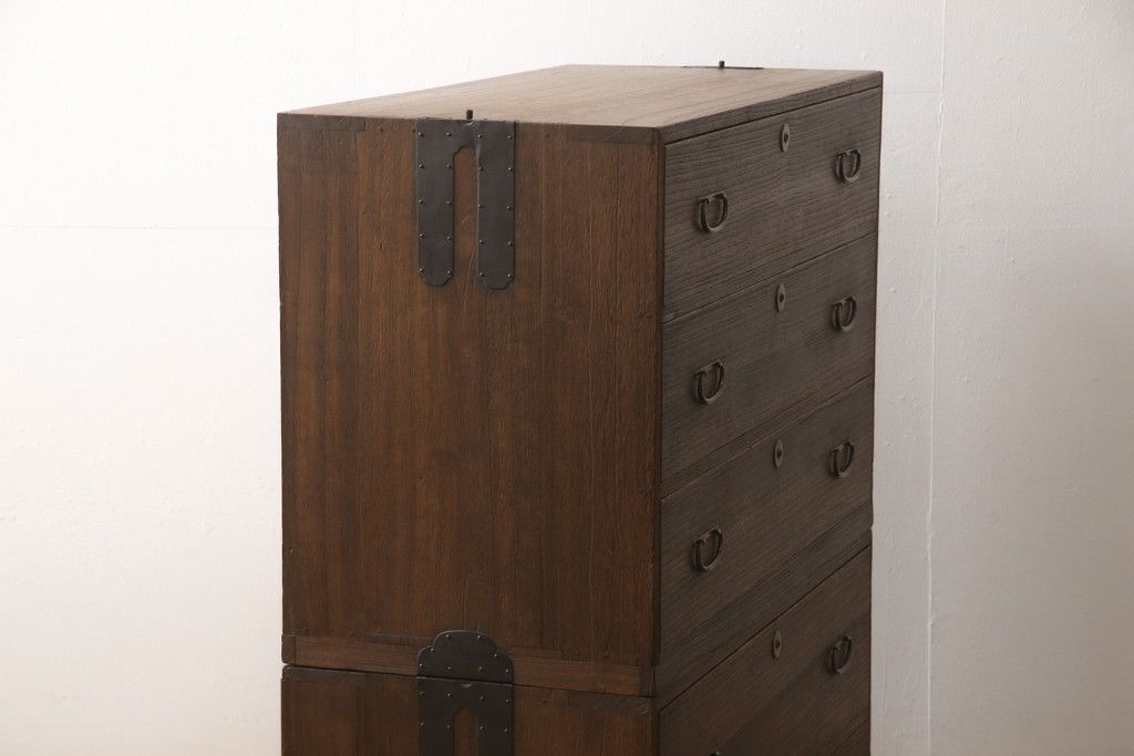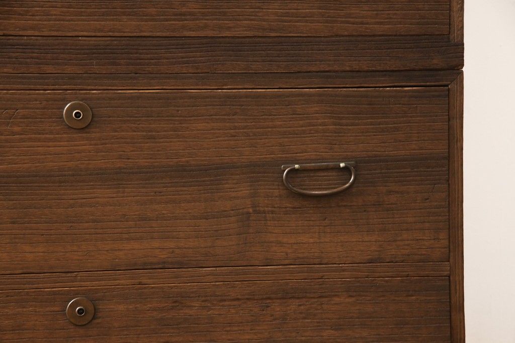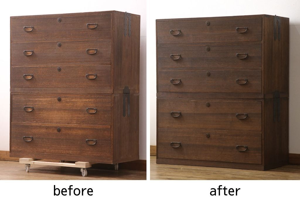 和箪笥> 衣装箪笥 > 二段重ねチェストの見た目を変えずに綺麗にリペア!色味は当店商品を参考にオーク系に着色。(サイドチェスト、引き出し、桐箪笥、桐たんす)