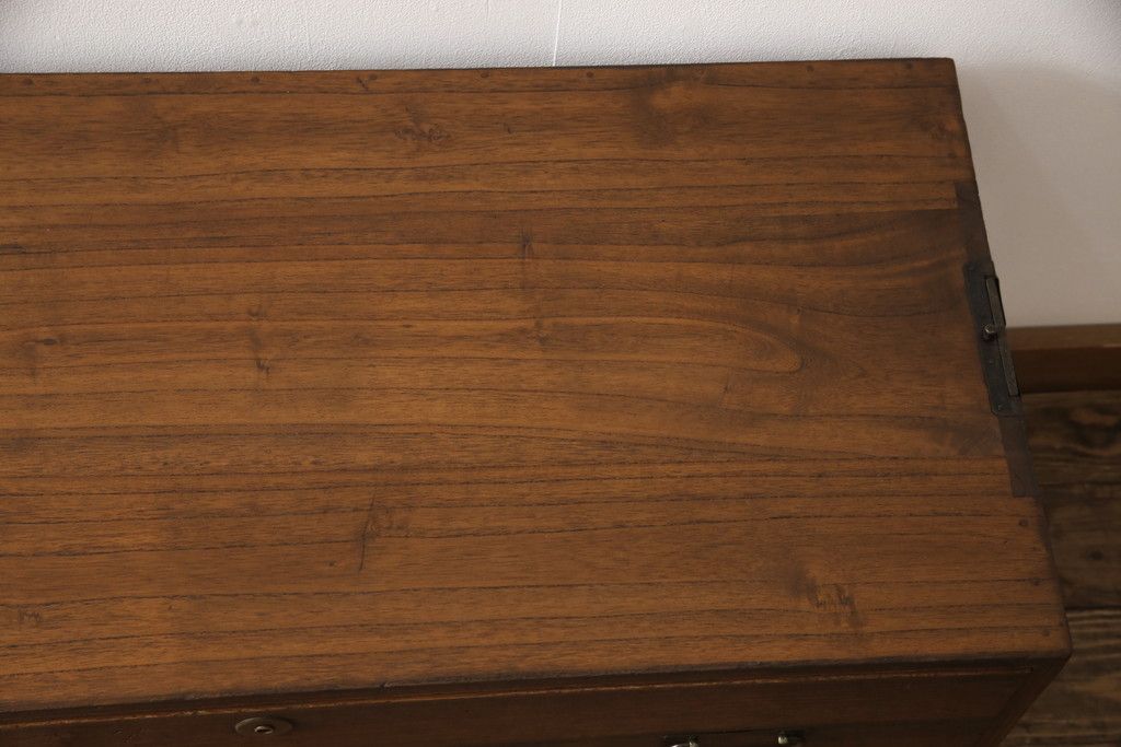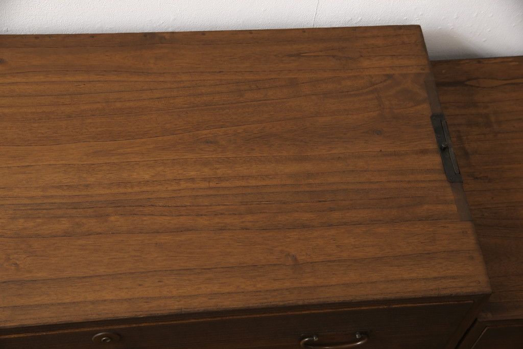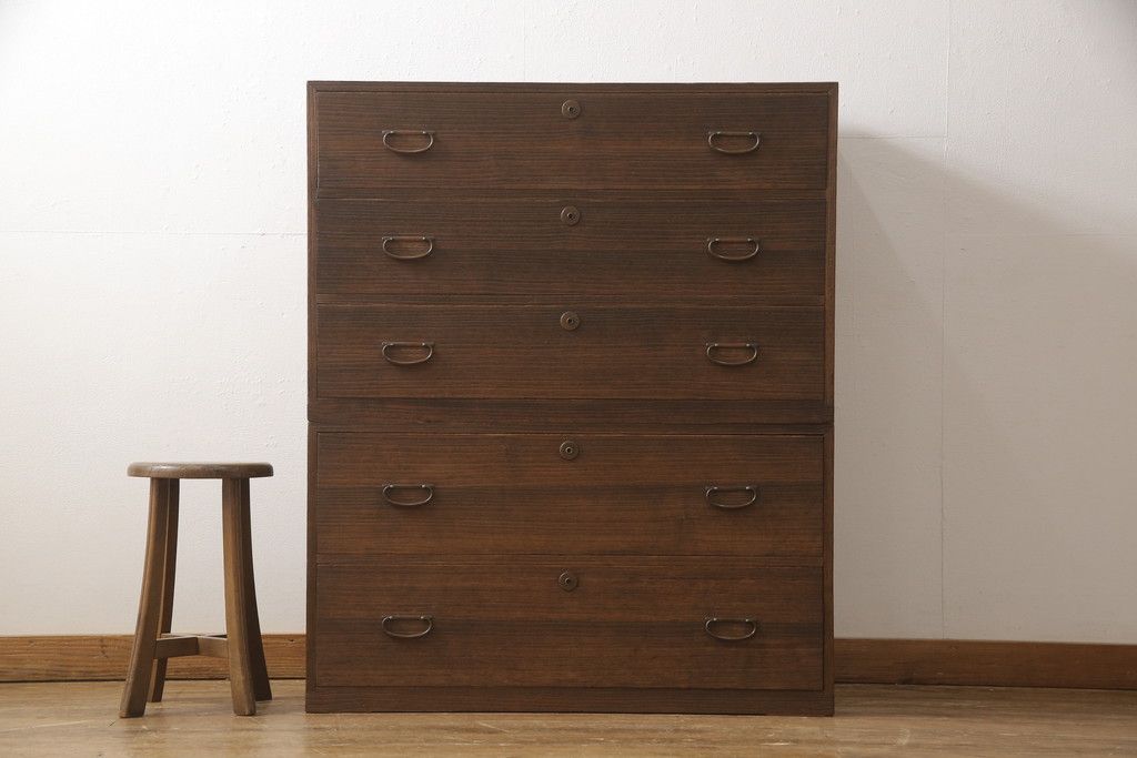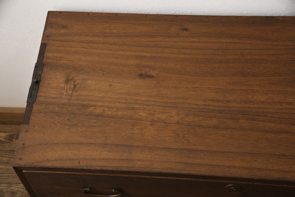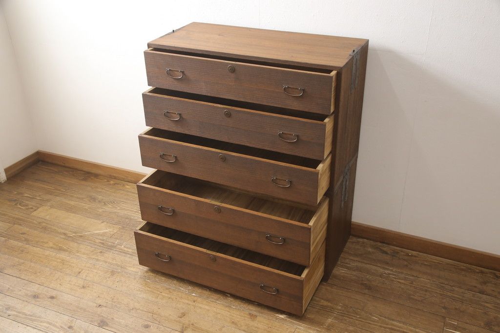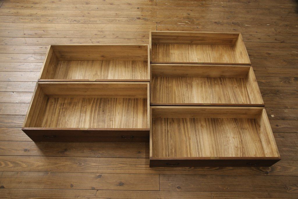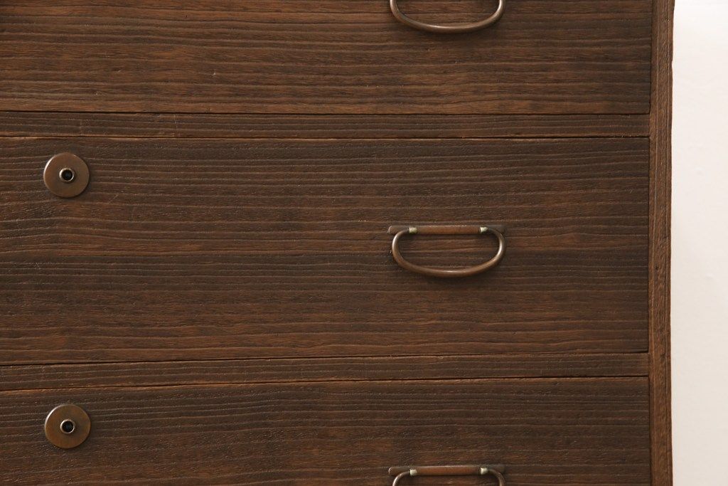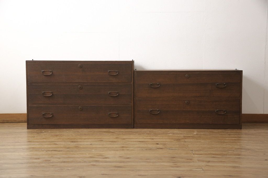 和箪笥> 衣装箪笥 > 二段重ねチェストの見た目を変えずに綺麗にリペア!色味は当店商品を参考にオーク系に着色。(サイドチェスト、引き出し、桐箪笥、桐たんす)