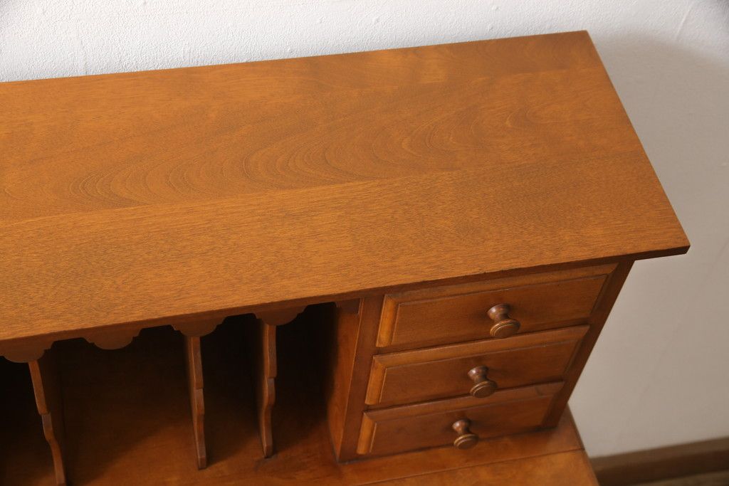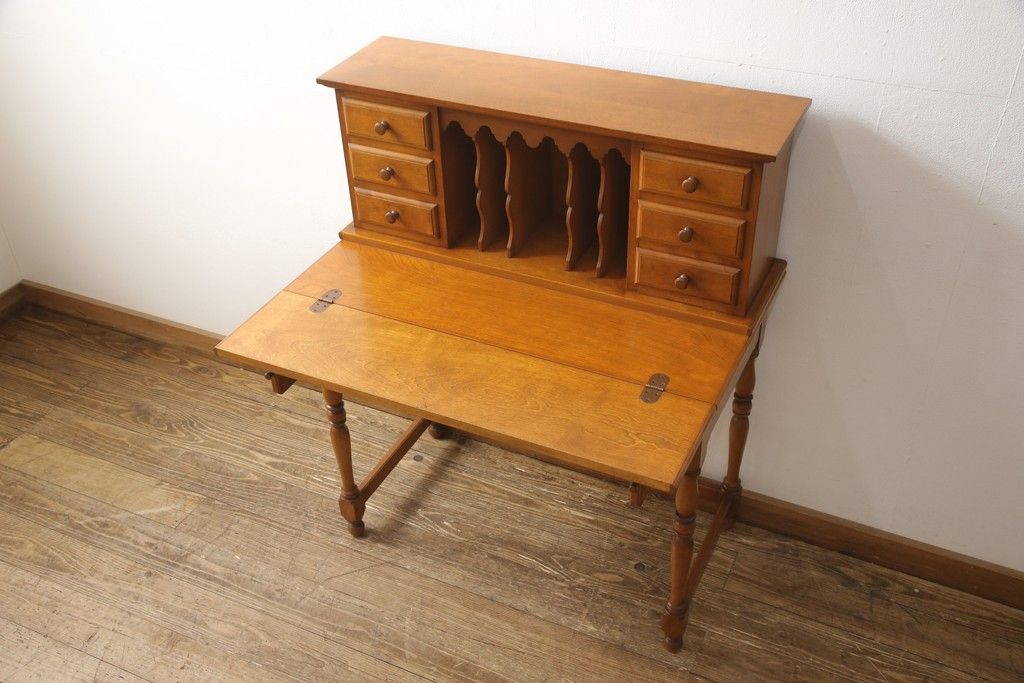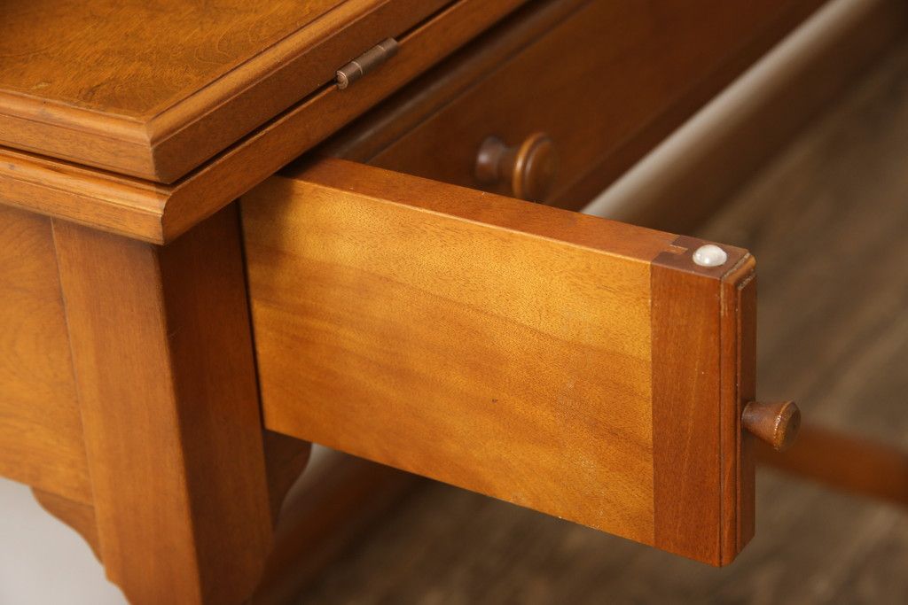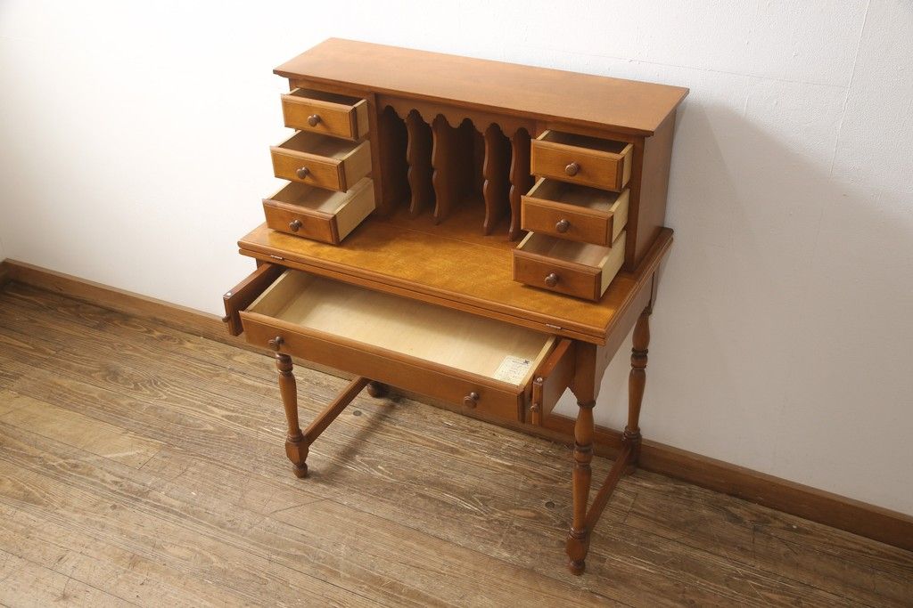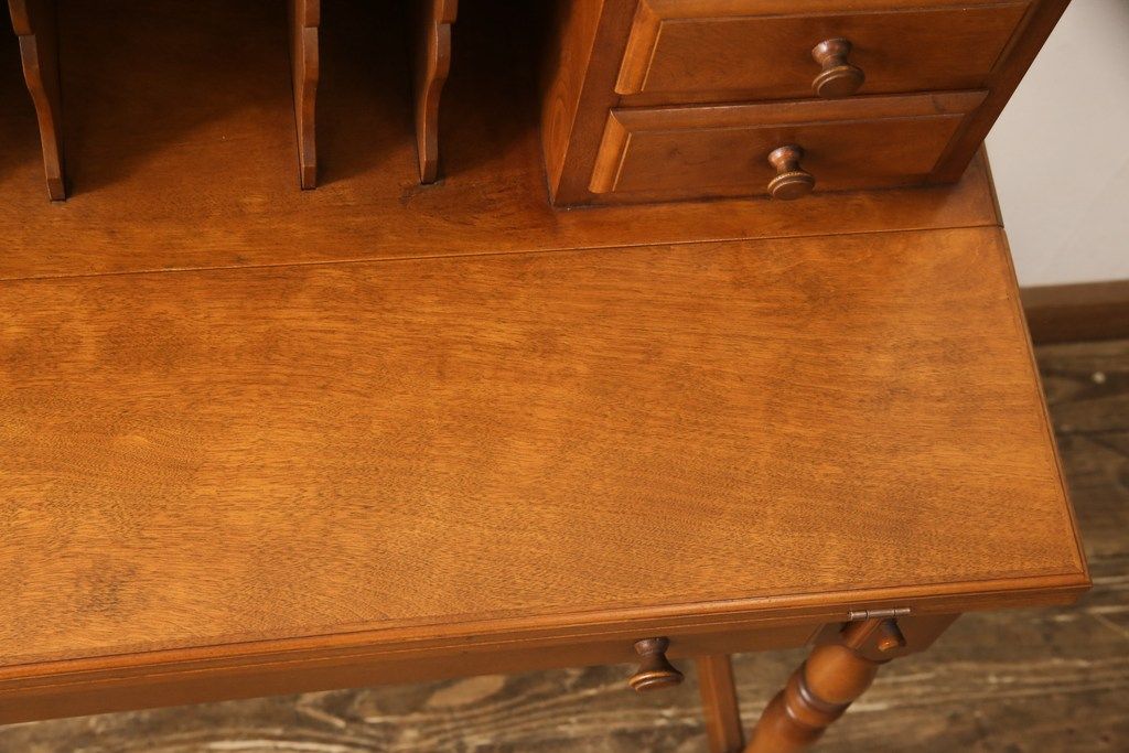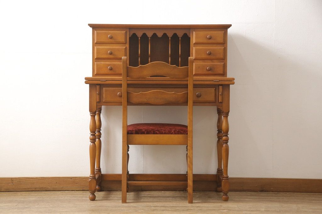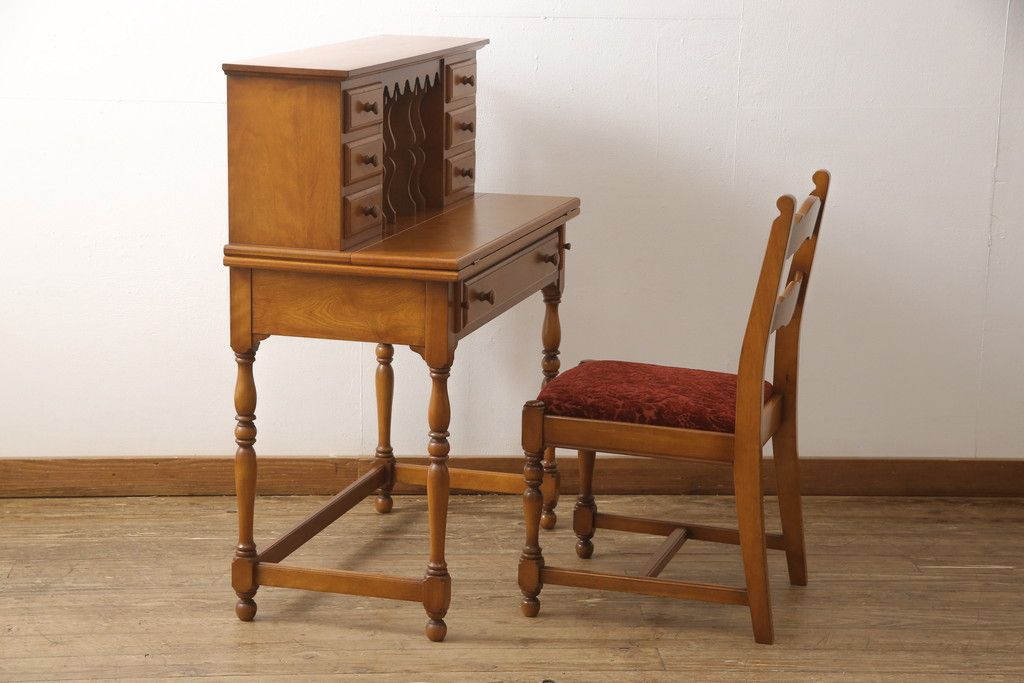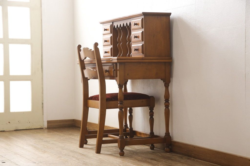 デスク> ワークデスク > ライティングデスク&チェアセットをリペア&カスタム!チェア座面はご希望の生地にて張り替え。本体は現状をベースに着色。(ワークデスク、机、椅子、在宅用、在宅ワーク用)