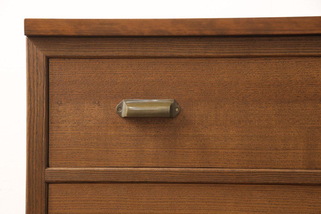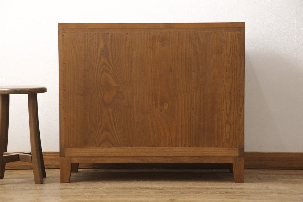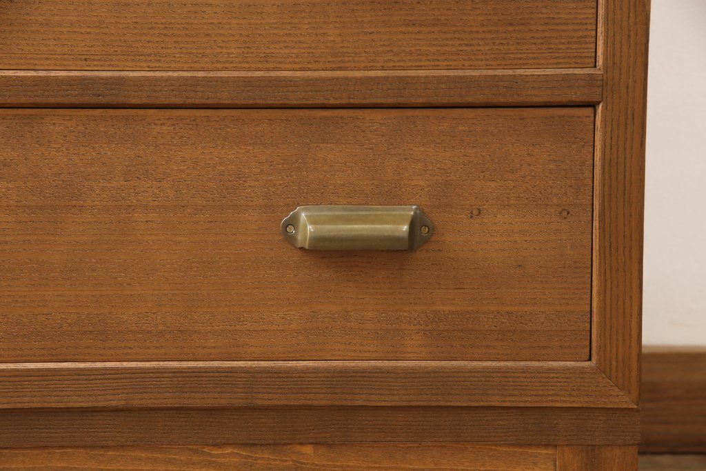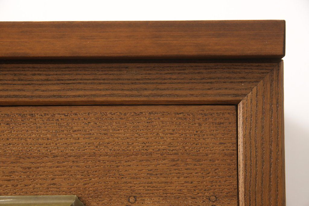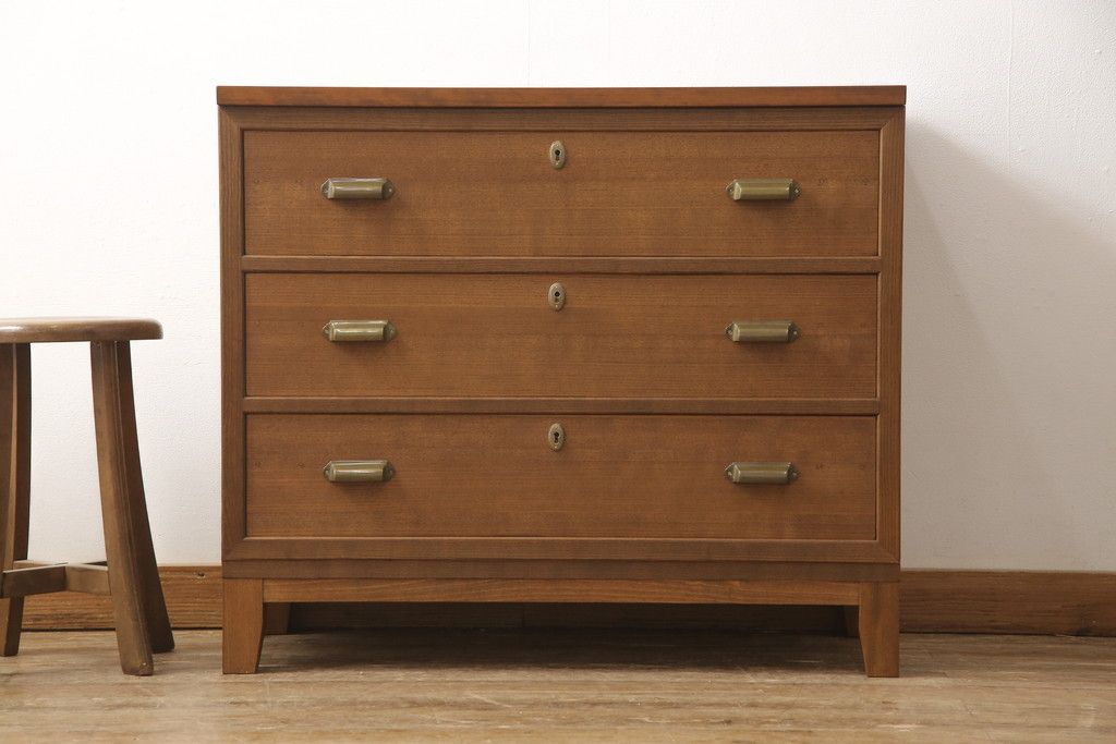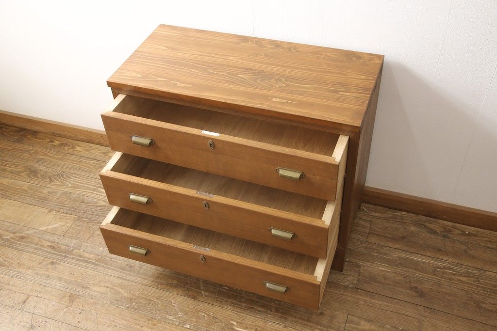 桐箪笥の下段を用いてチェストにリメイク!高品質リペアを施し、ご希望に合わせてリサイズ。天板と脚を取り付け、取っ手と鍵金具を交換。本体は当店商品を参考に着色。