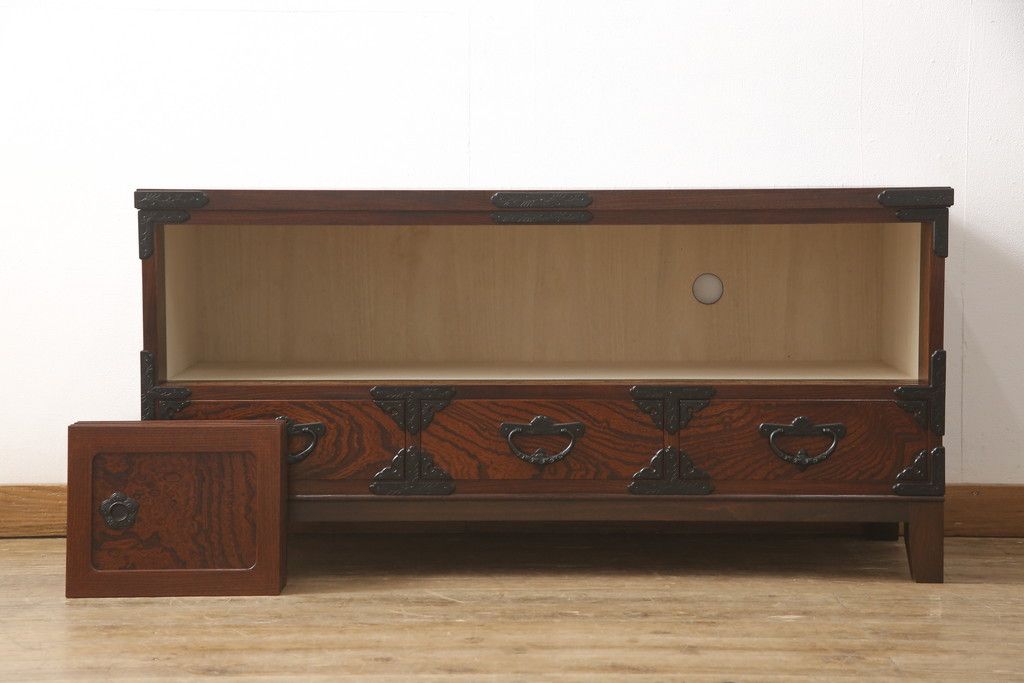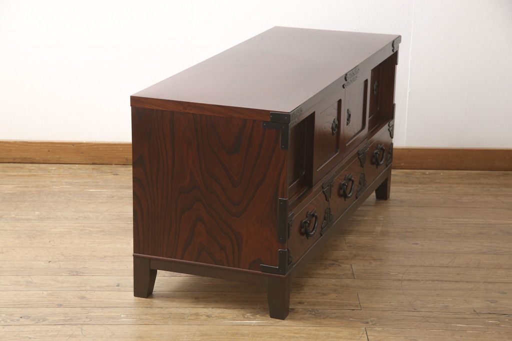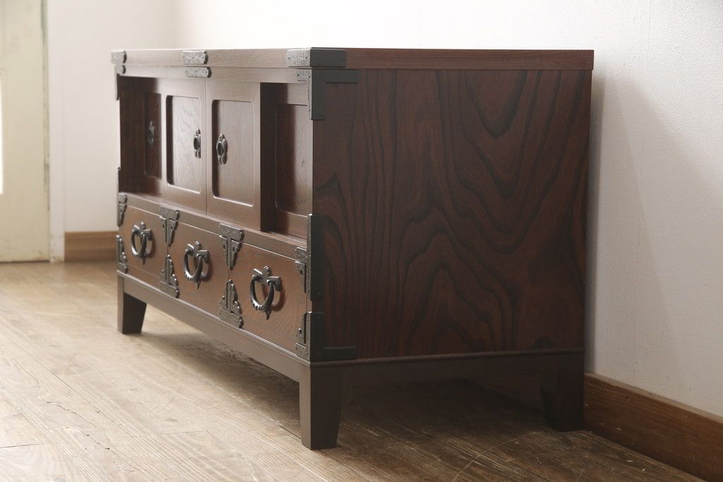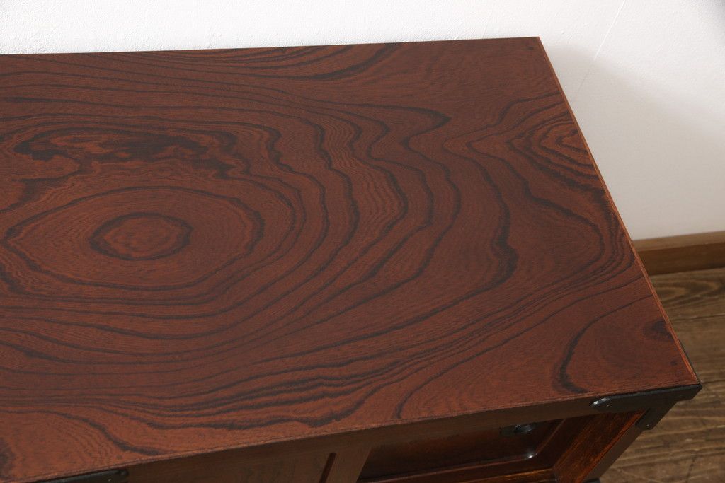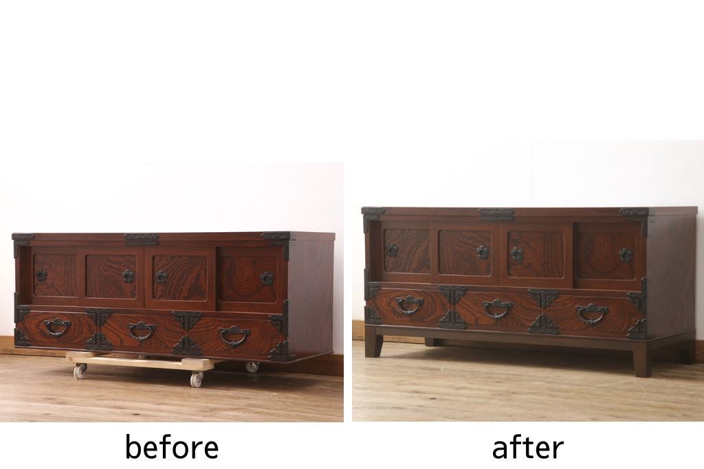 民芸家具 > ローボードをリペア&カスタム!脚を取り付け、配線穴開け加工。本体はそのままで、新材部分は雰囲気が合うように着色。(テレビボード、テレビ台、リビングボード、収納棚)