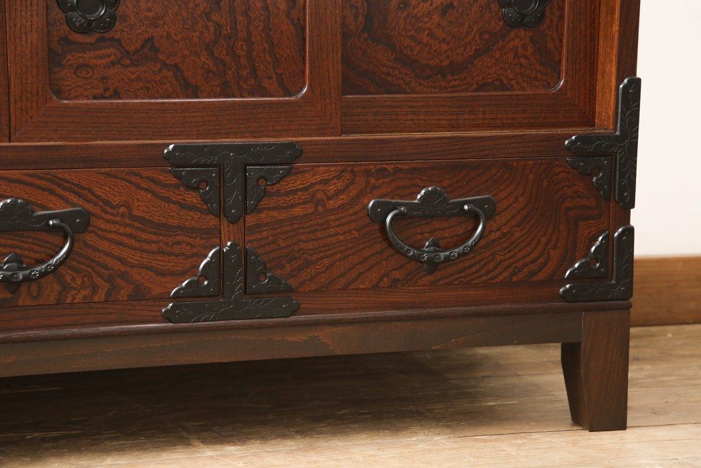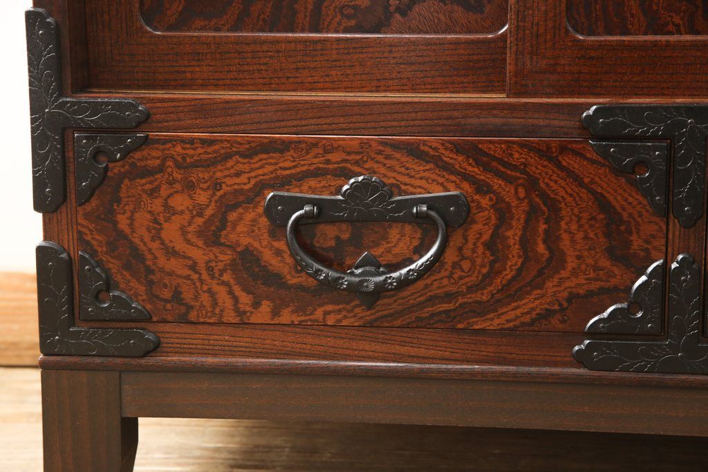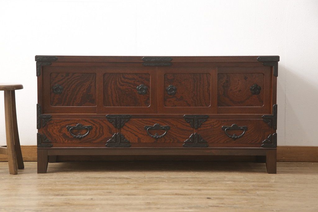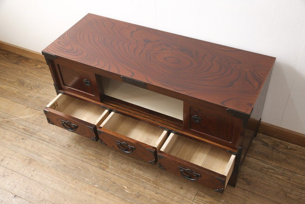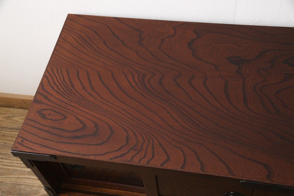 民芸家具 > ローボードをリペア&カスタム!脚を取り付け、配線穴開け加工。本体はそのままで、新材部分は雰囲気が合うように着色。(テレビボード、テレビ台、リビングボード、収納棚)