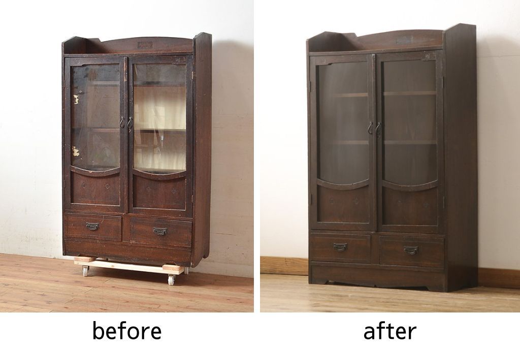 戸棚の見た目を変えずに綺麗にリペア!元の雰囲気を残して仕上げ。(収納棚、本箱、ブックケース)