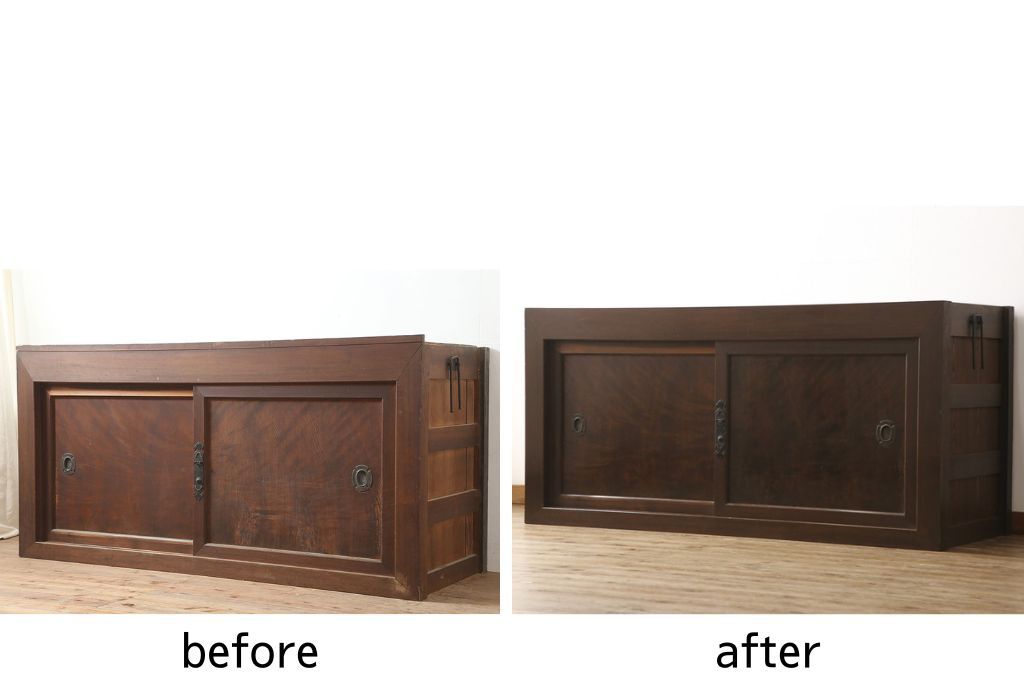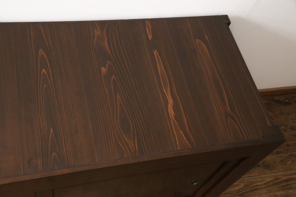 和箪笥> 水屋箪笥 > 水屋箪笥をリペア&カスタム!棚板2枚製作し、天板落下防止の支えを取り外し。天板を新しく張り直し、内部補強。本体は現状をベース着色。(サイドボード、収納棚、戸棚、ローボード)