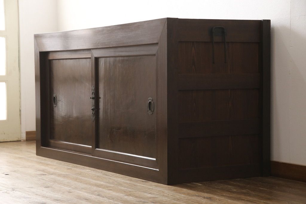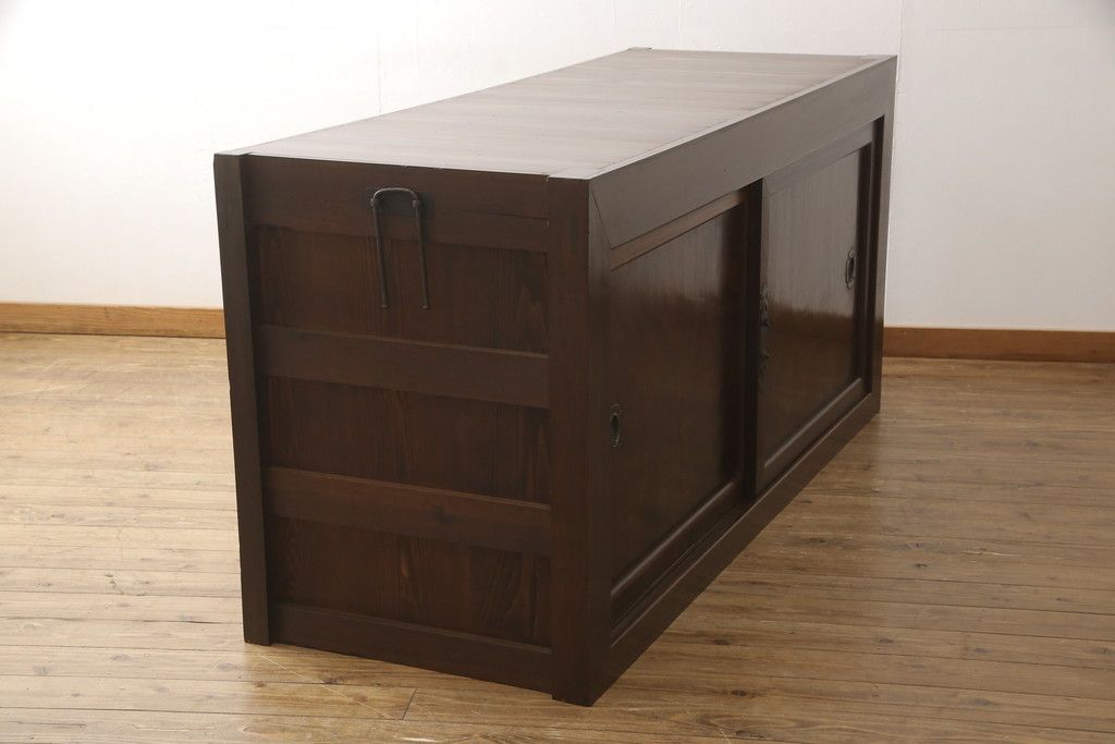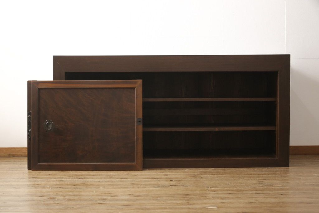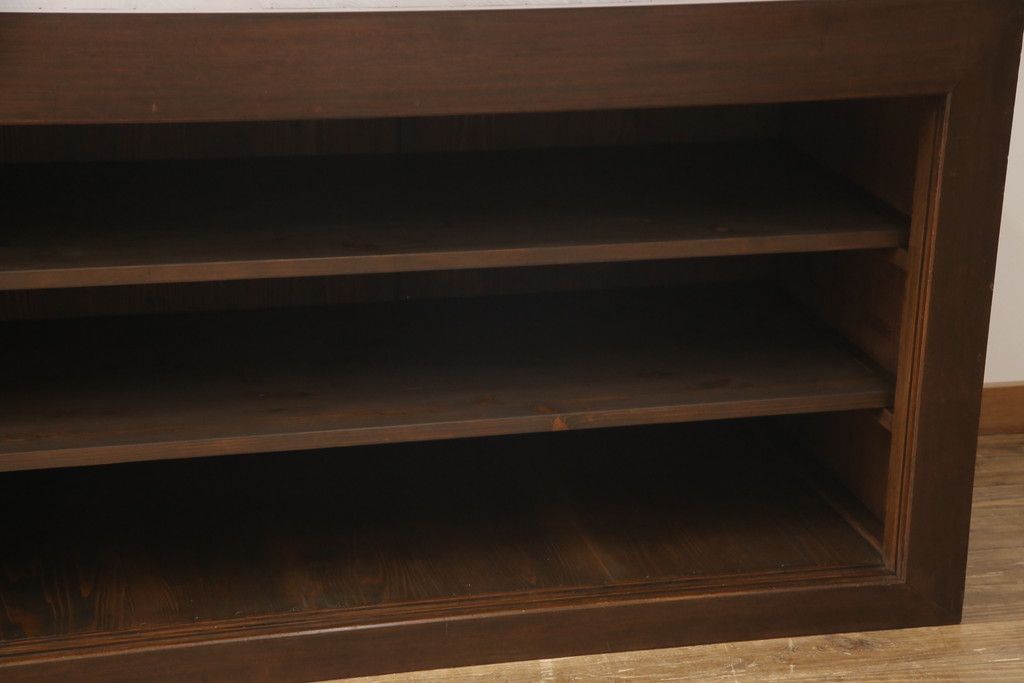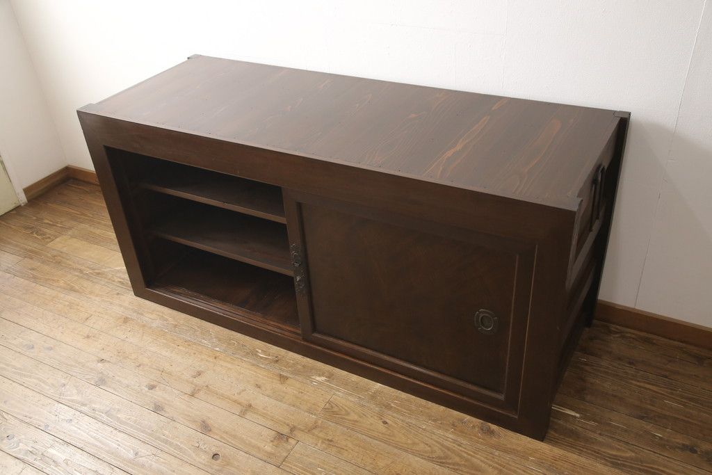キャビネット・戸棚> テレビ台・ローボード > 水屋箪笥をリペア&カスタム!棚板2枚製作し、天板落下防止の支えを取り外し。天板を新しく張り直し、内部補強。本体は現状をベース着色。(サイドボード、収納棚、戸棚、ローボード)