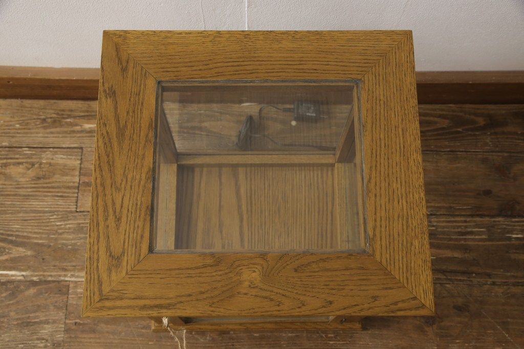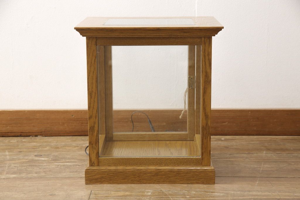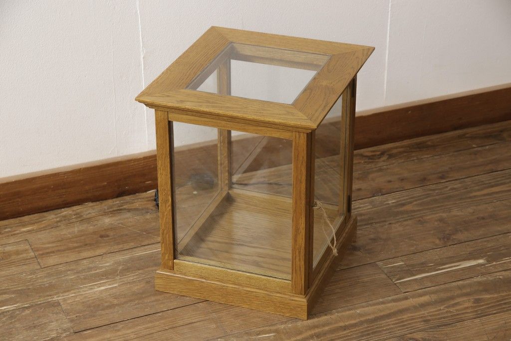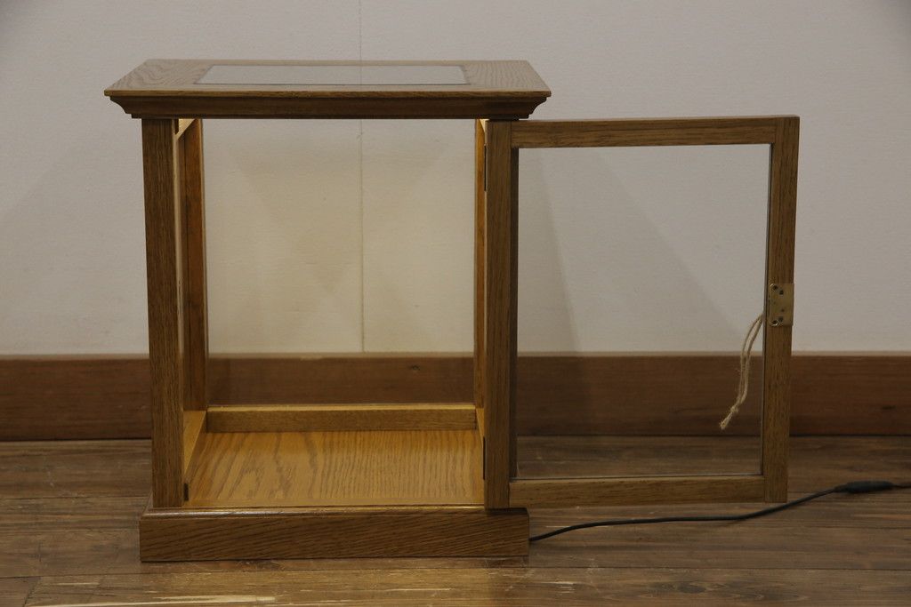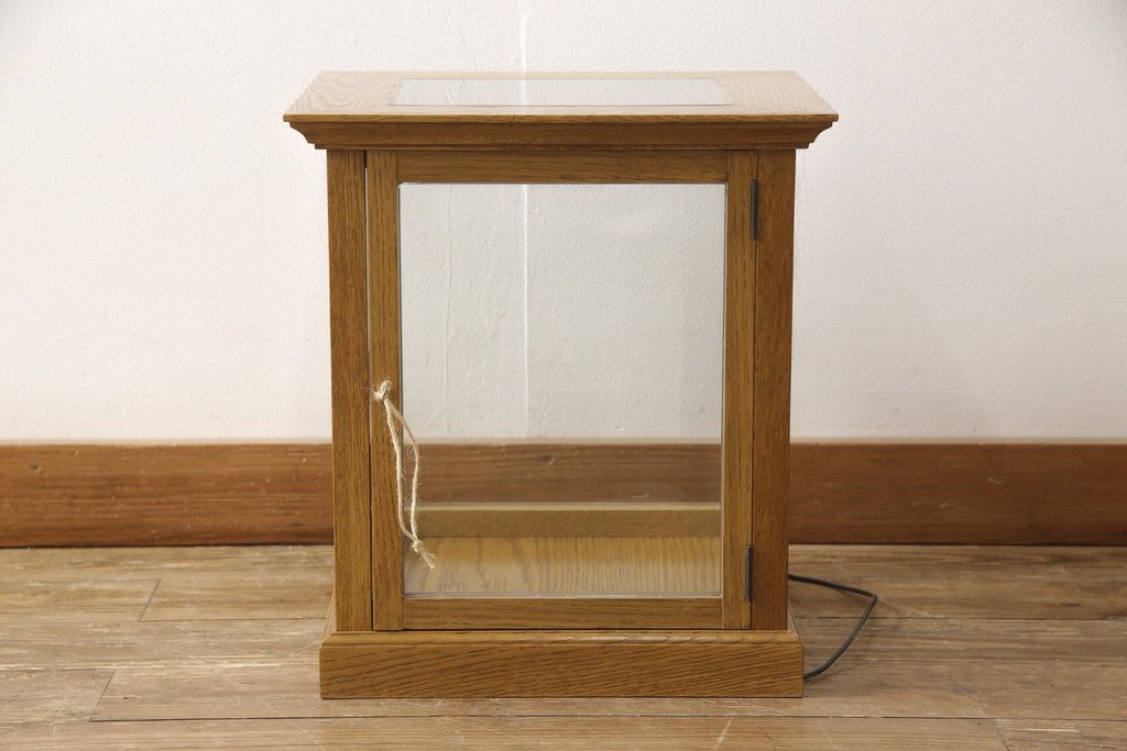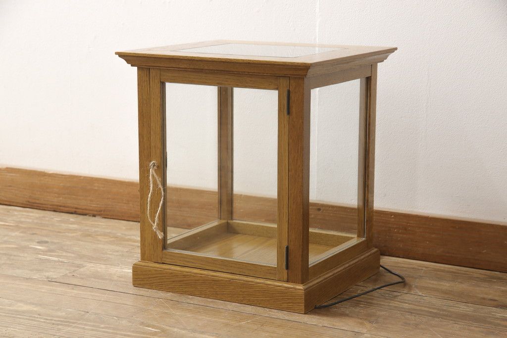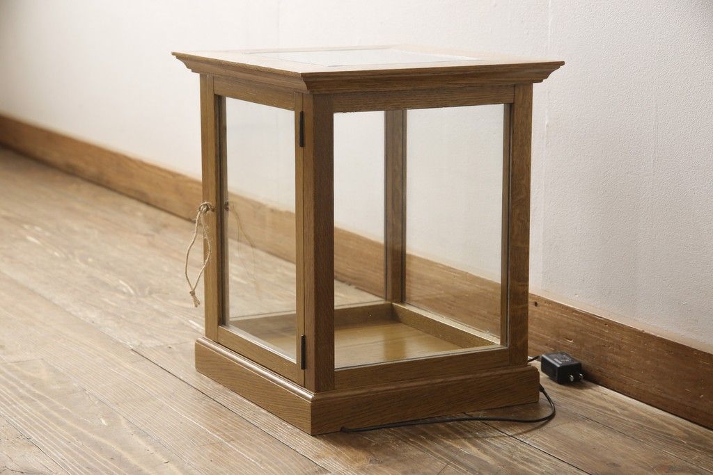 ガラスケース・ショーケース > ショーケースを新規製作!天板・側面は強化ガラス使用し、右開き戸仕様で、鍵を取付け。天板裏にLED照明を取付け。色味は当店商品を参考に着色(ガラスケース、陳列棚、飾り棚、ディスプレイ)