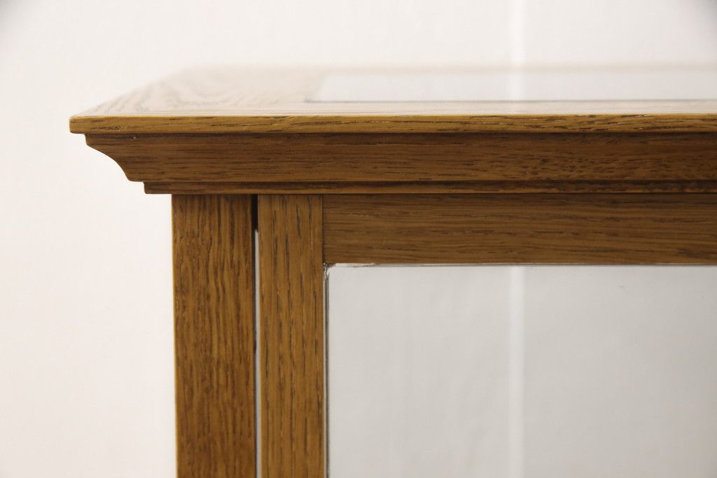 フルオーダー家具実績 > ショーケースを新規製作!天板・側面は強化ガラス使用し、右開き戸仕様で、鍵を取付け。天板裏にLED照明を取付け。色味は当店商品を参考に着色(ガラスケース、陳列棚、飾り棚、ディスプレイ)
