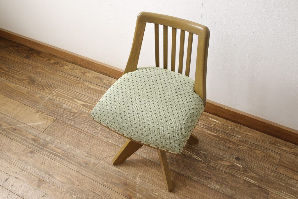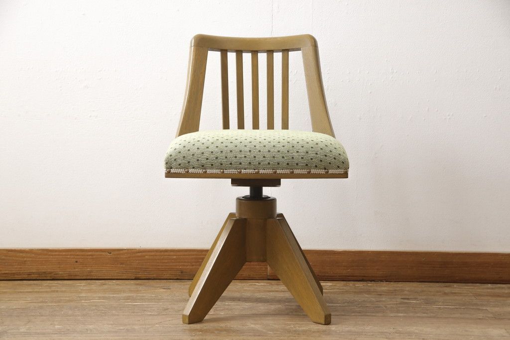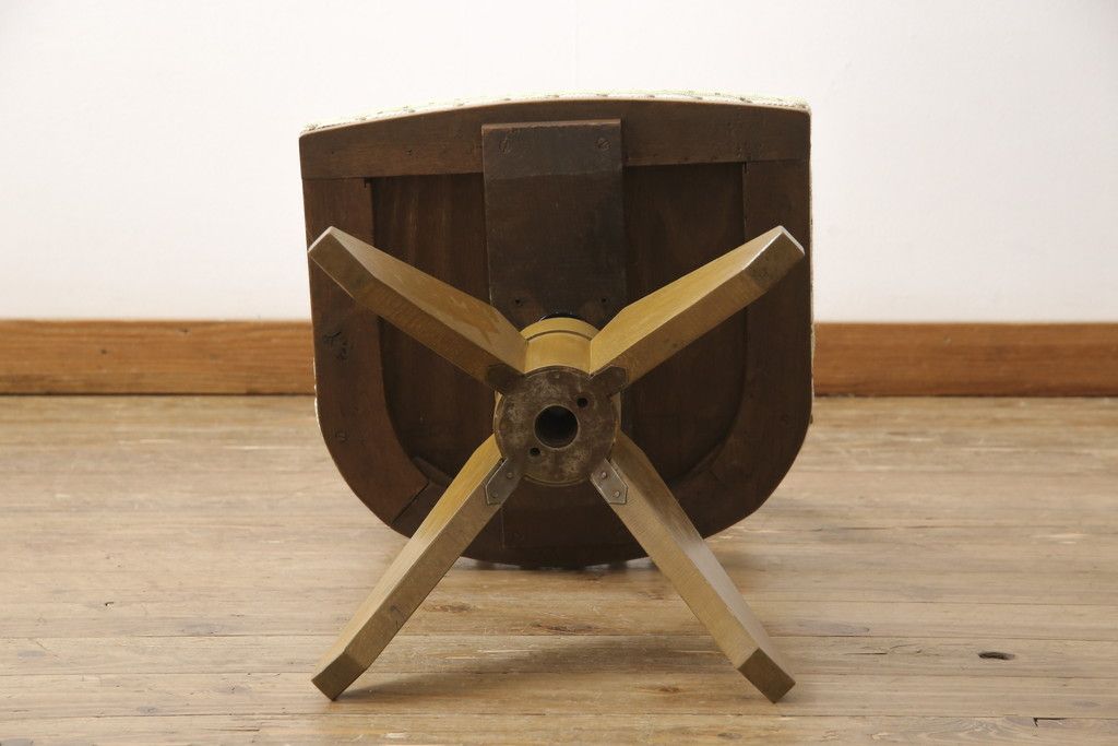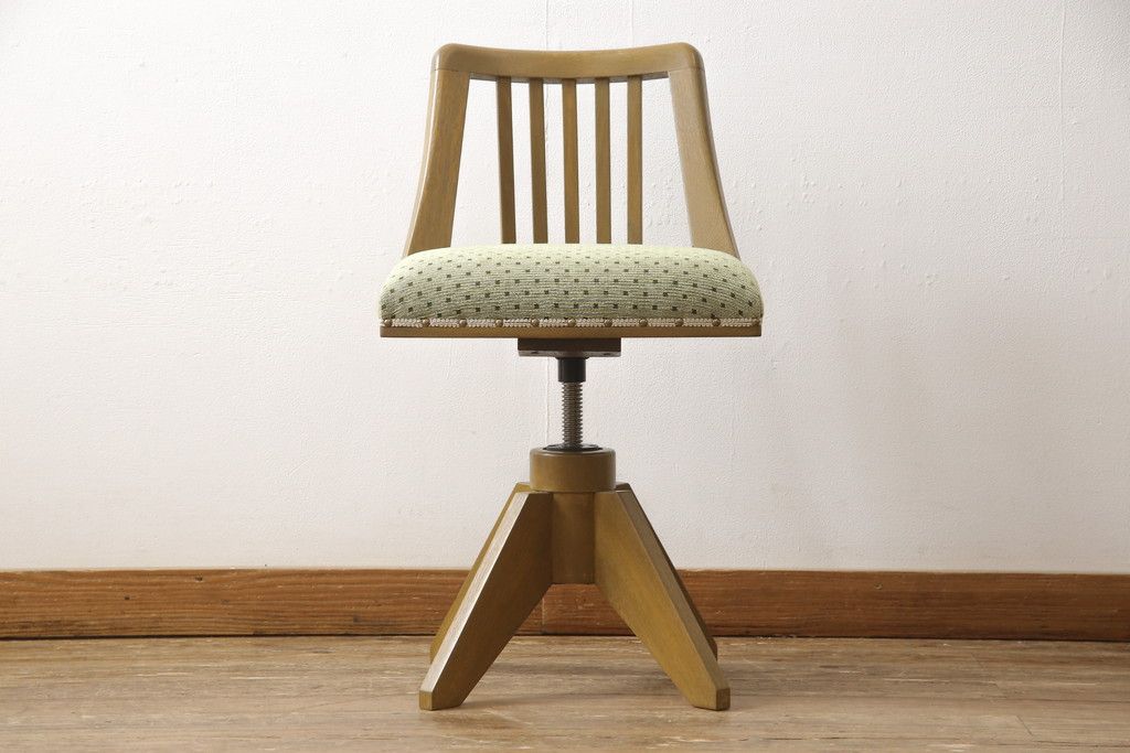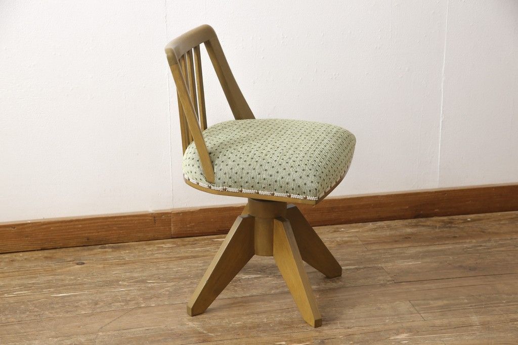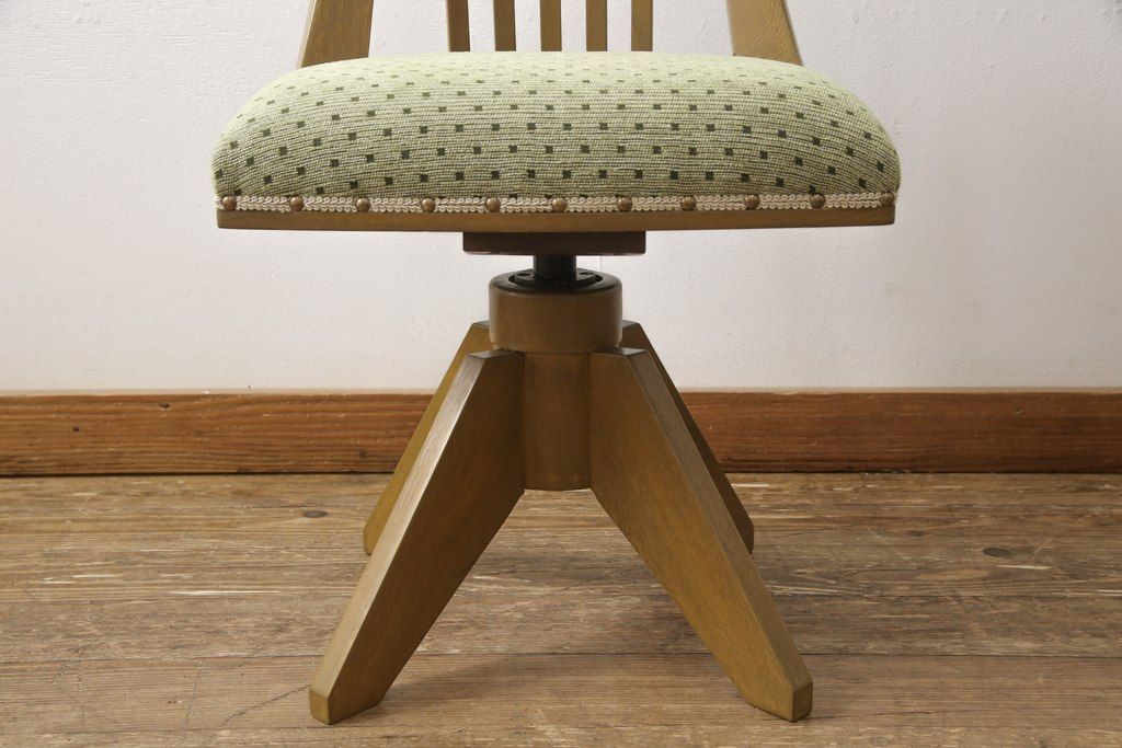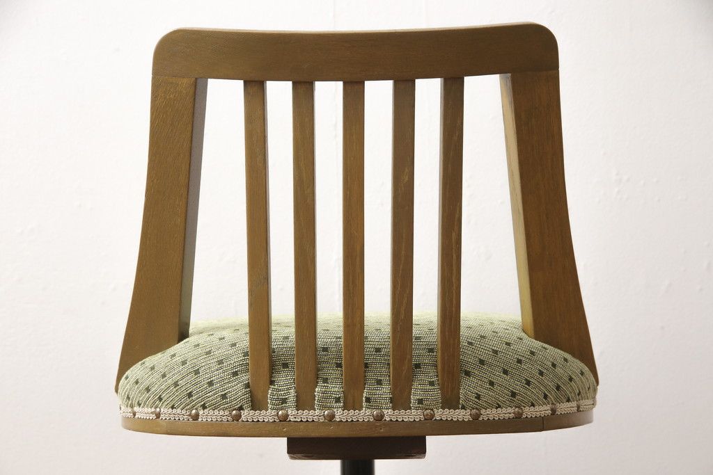 椅子・ベンチ> 回転椅子 > ドクターチェアをリペア&カスタム!お好みの生地に張り替え、雰囲気に合うように当店で選別した鋲とブレードを取付け。本体は現状をベースに1トーン程落ち着いた色味に着色。(回転椅子)