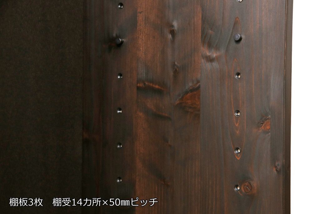 ◆棚ダボ・ピッチ:上段(水辺部分)の下部の有効寸法H350mmを確保した位置に設定し、その他は50mmピッチにてダボ穴を設ける