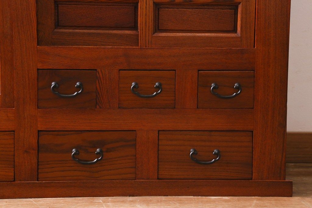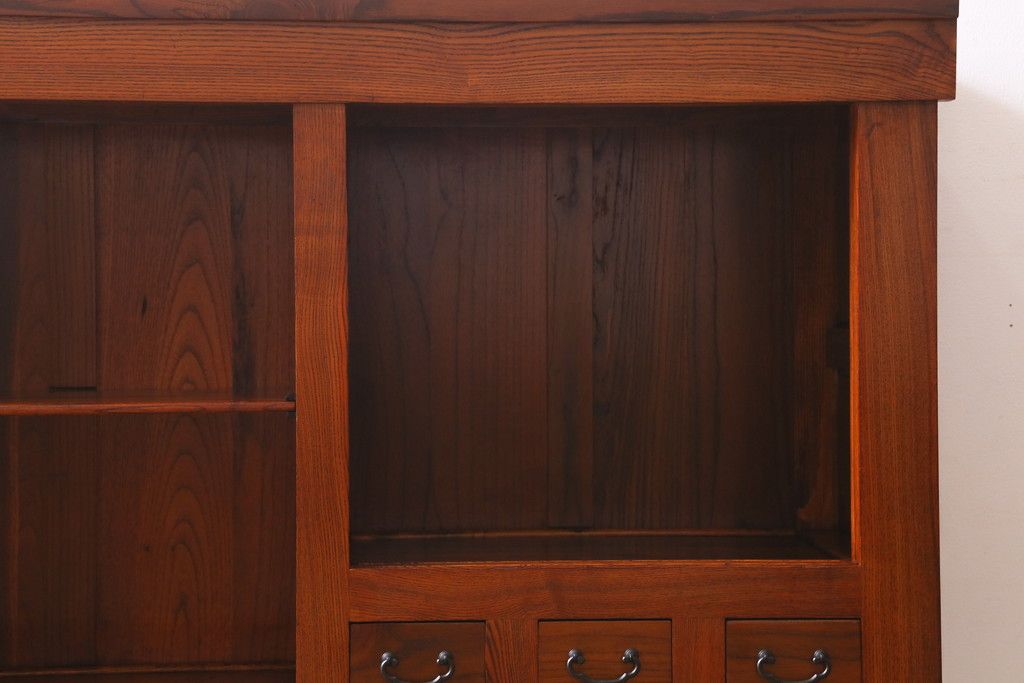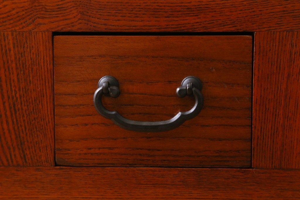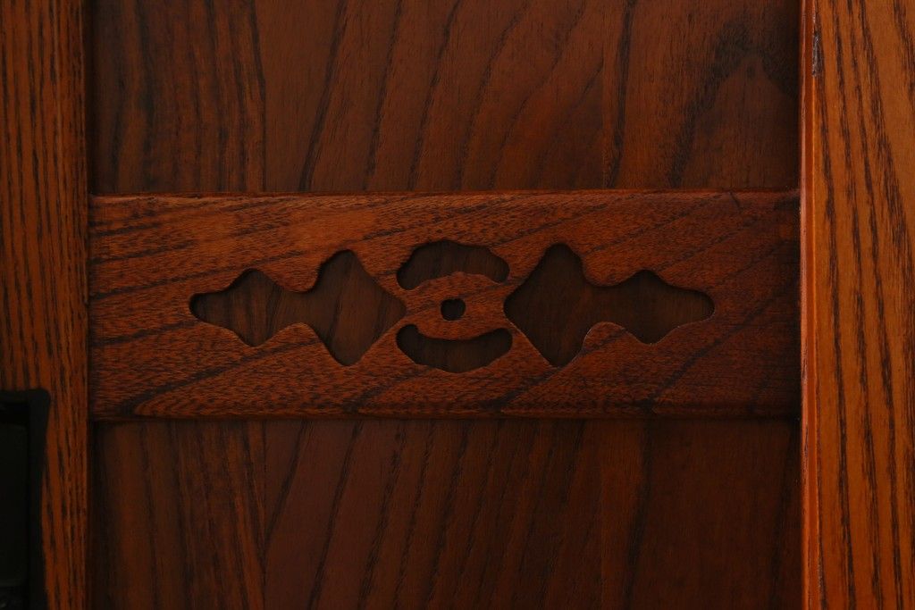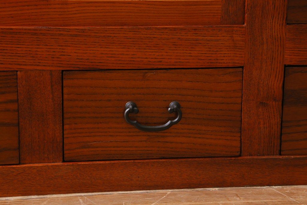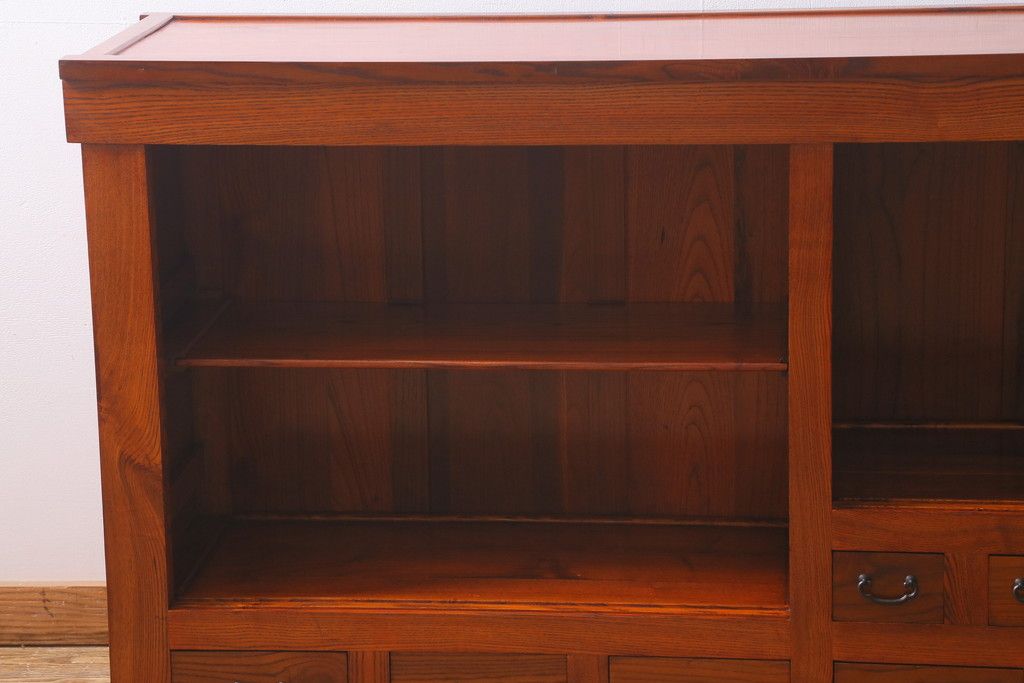 民芸家具 > 水屋箪笥サイドボードをリペア&カスタム!天板の溝に合わせガラスをはめ込み、本体とガラスの間の溝はコーキング加工。(収納棚、戸棚、テレビ台、キャビネット、食器棚)